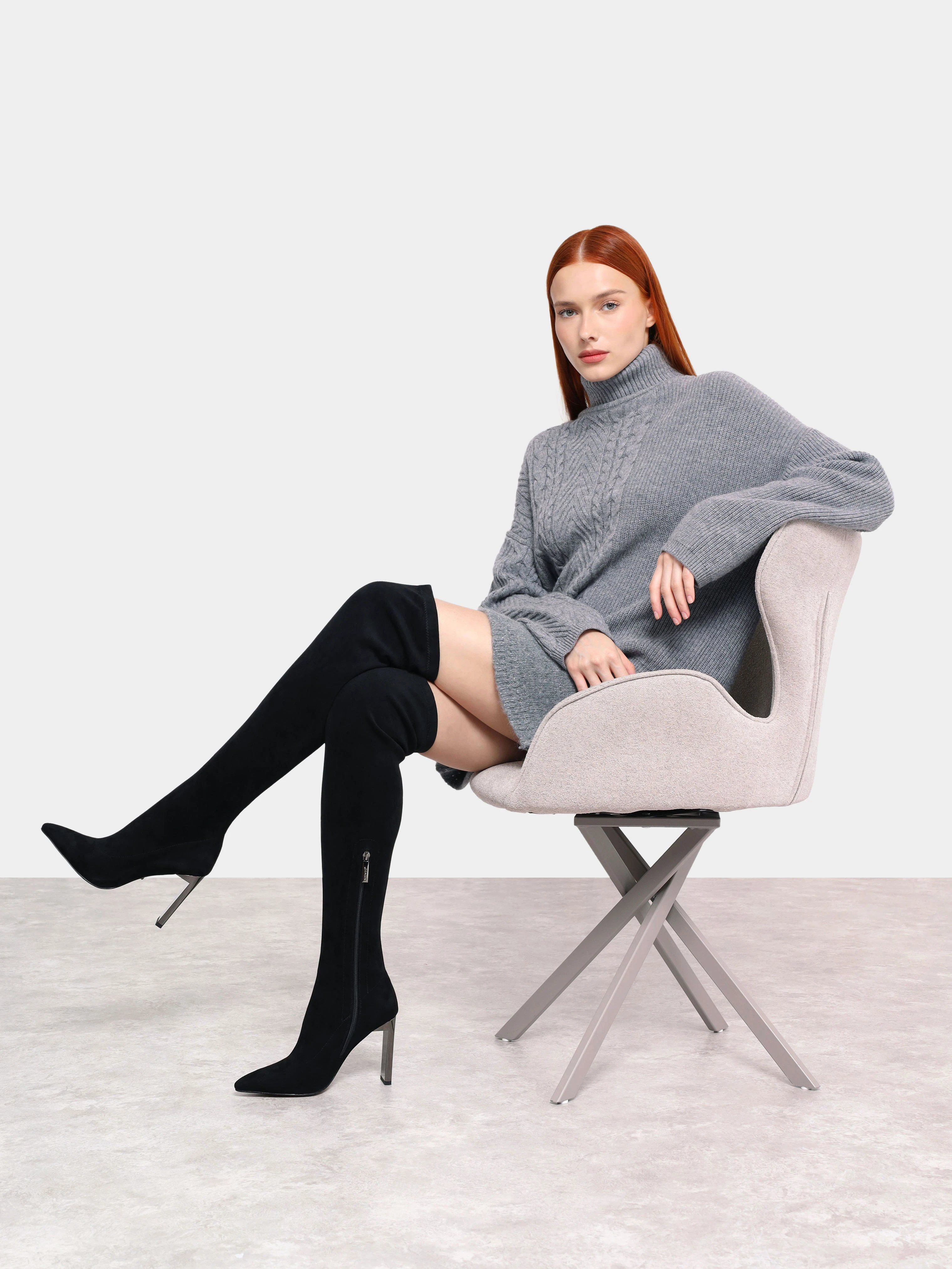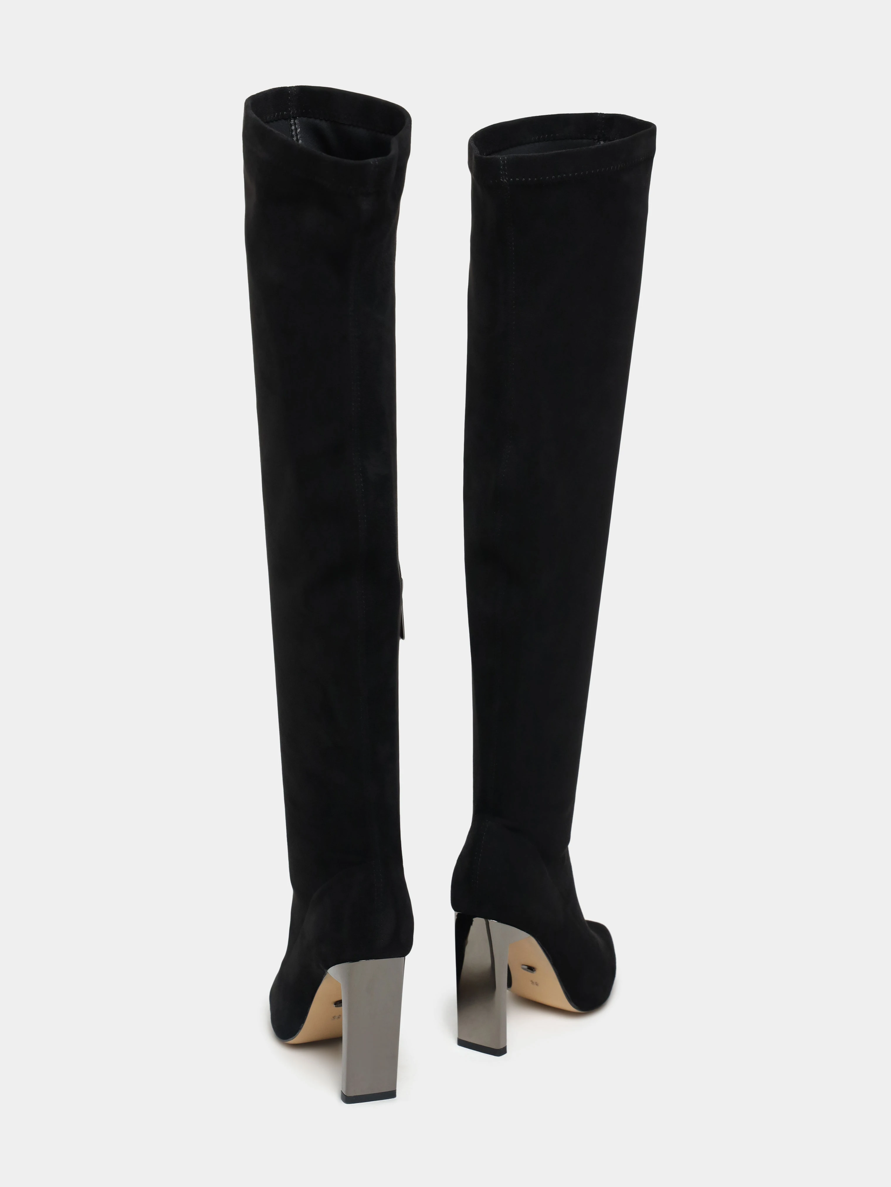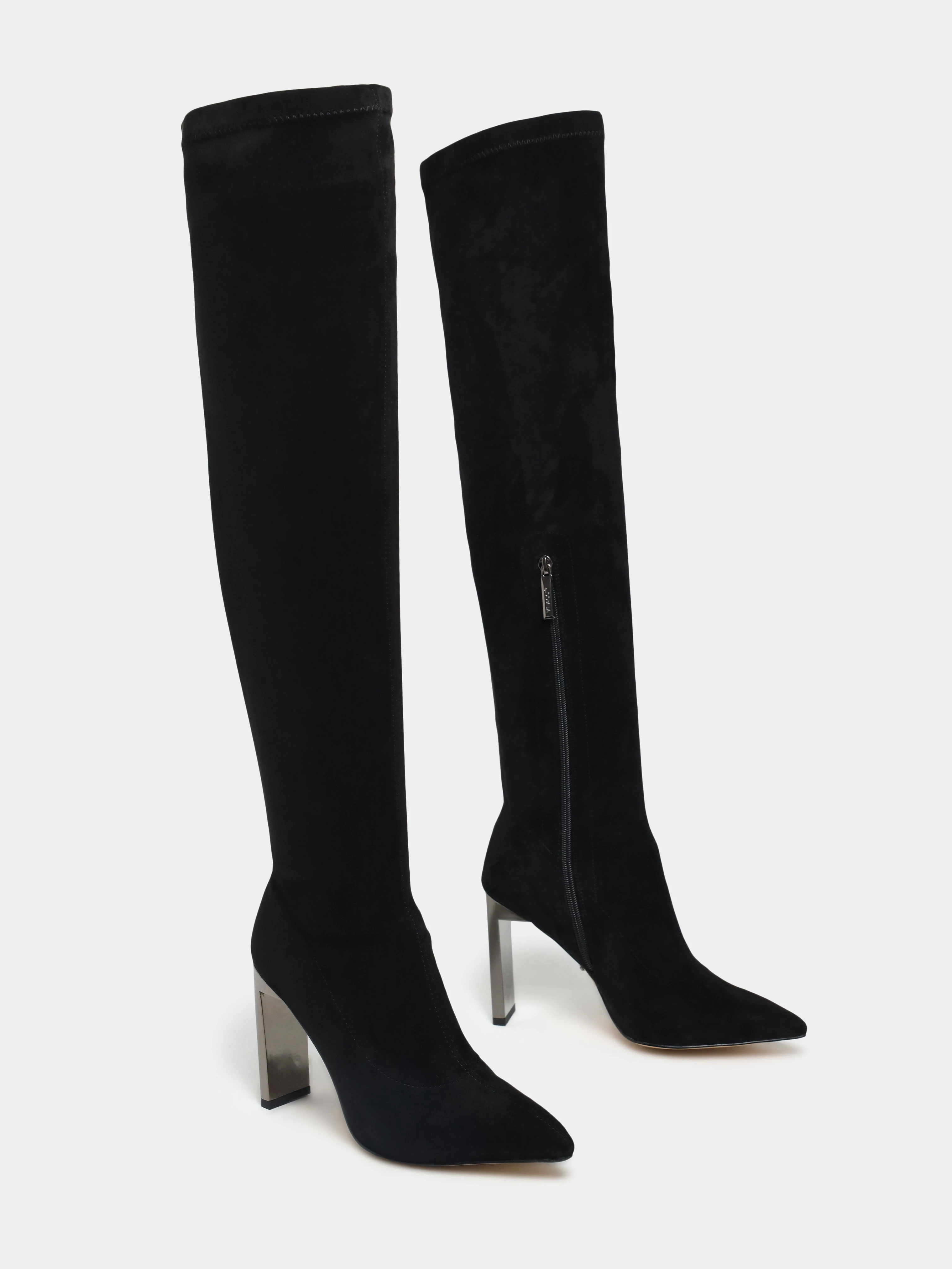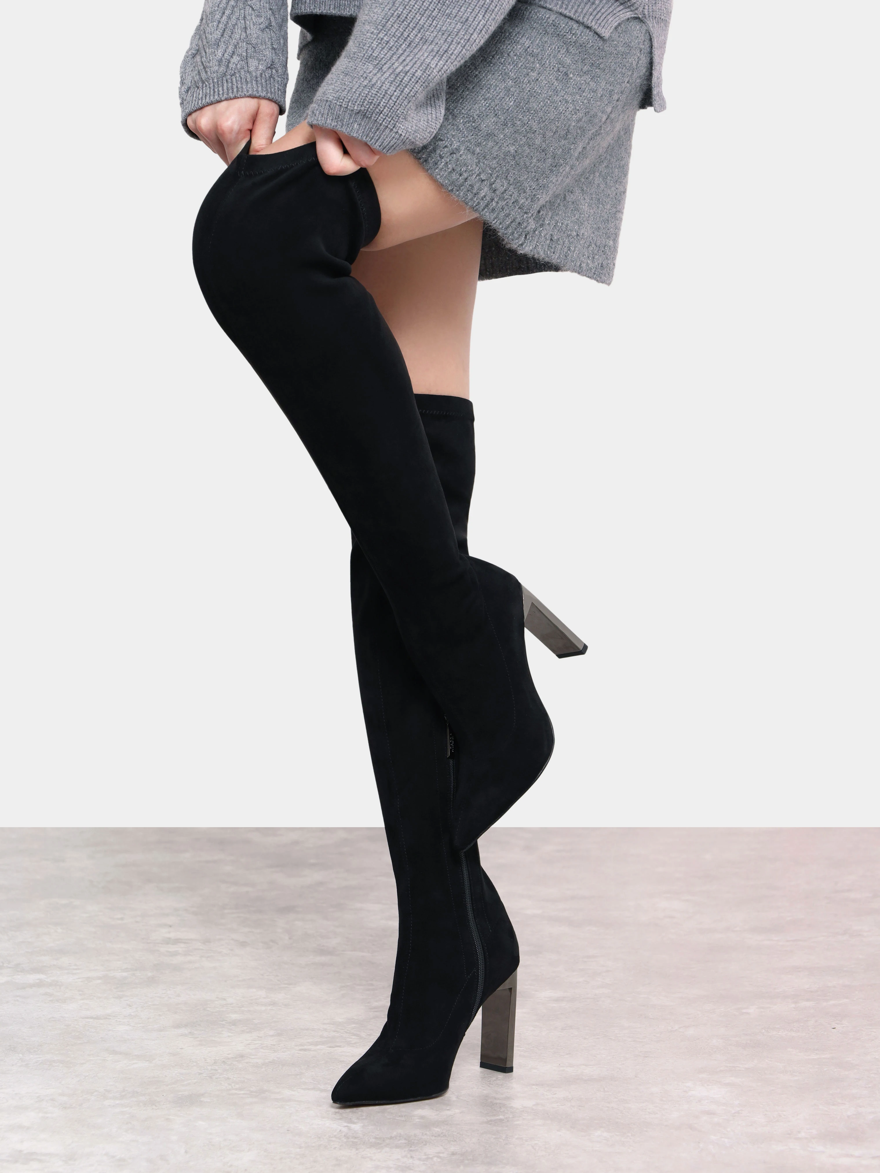 Ботфорты женские всесезонные, цвет черный, искусственный велюр