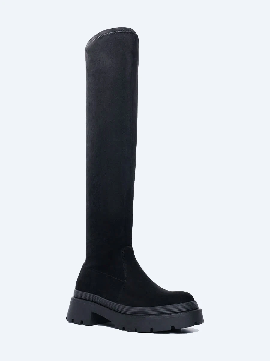 Ботфорты женские демисезонные, цвет черный, искусственный велюр