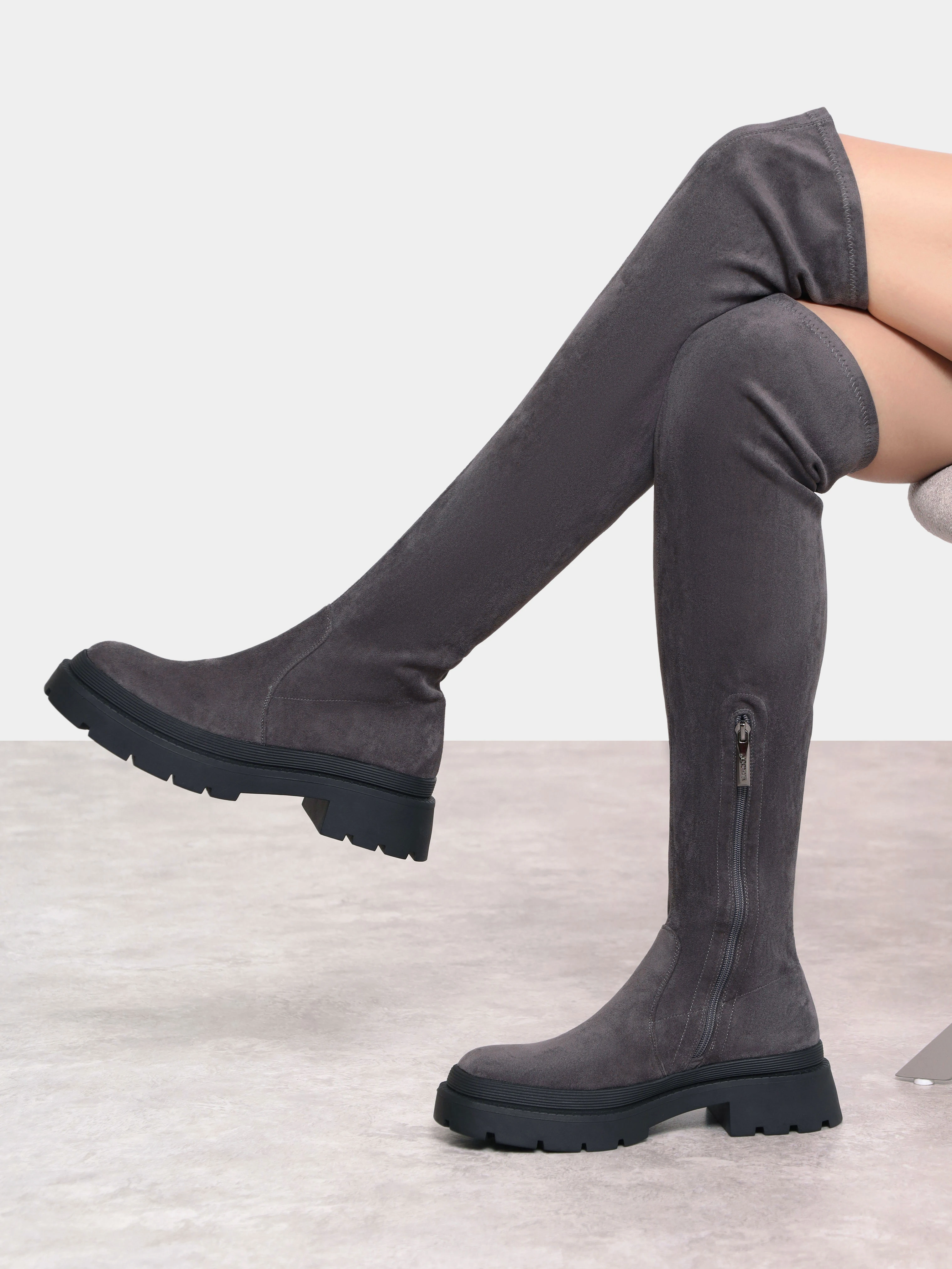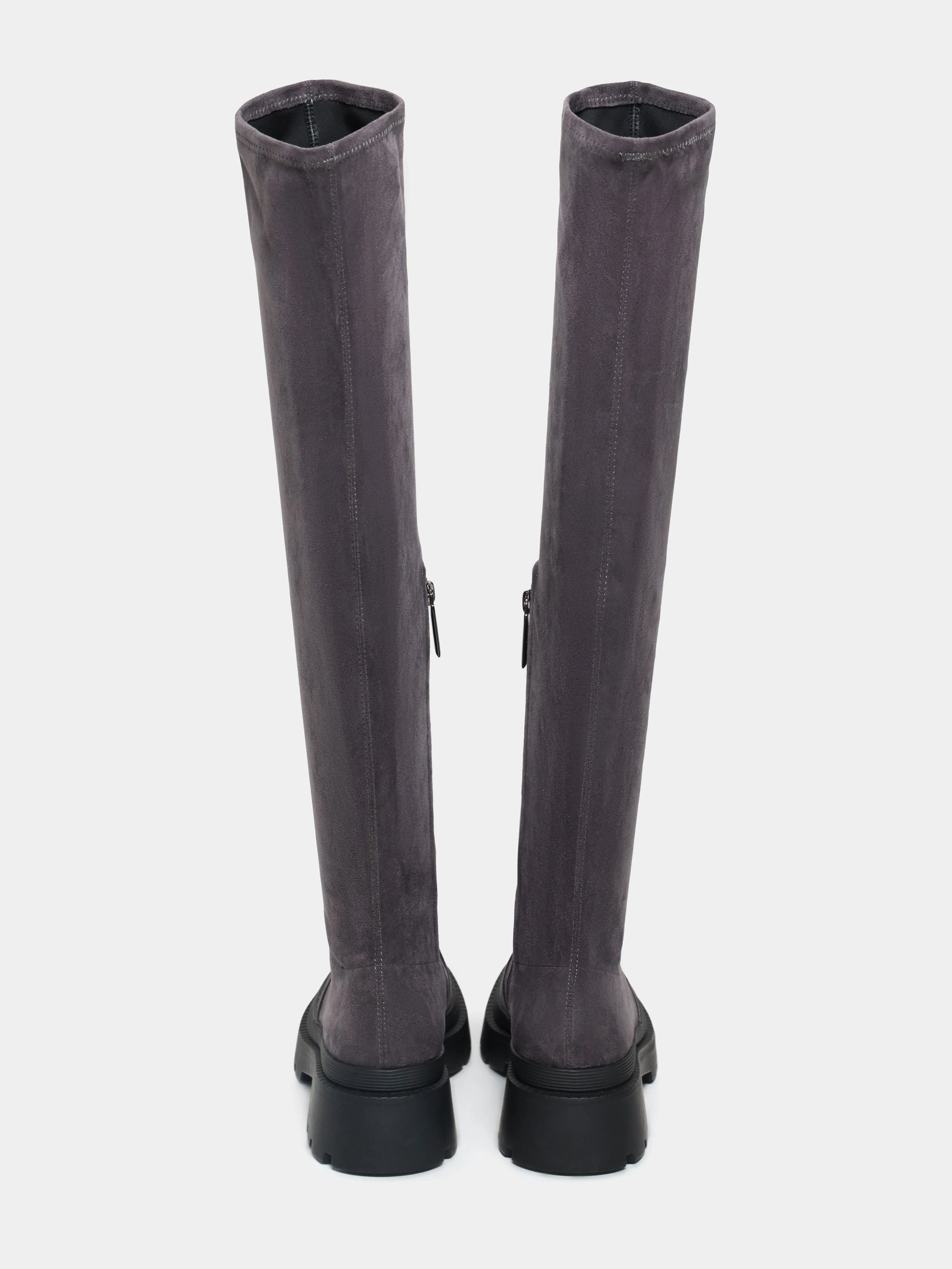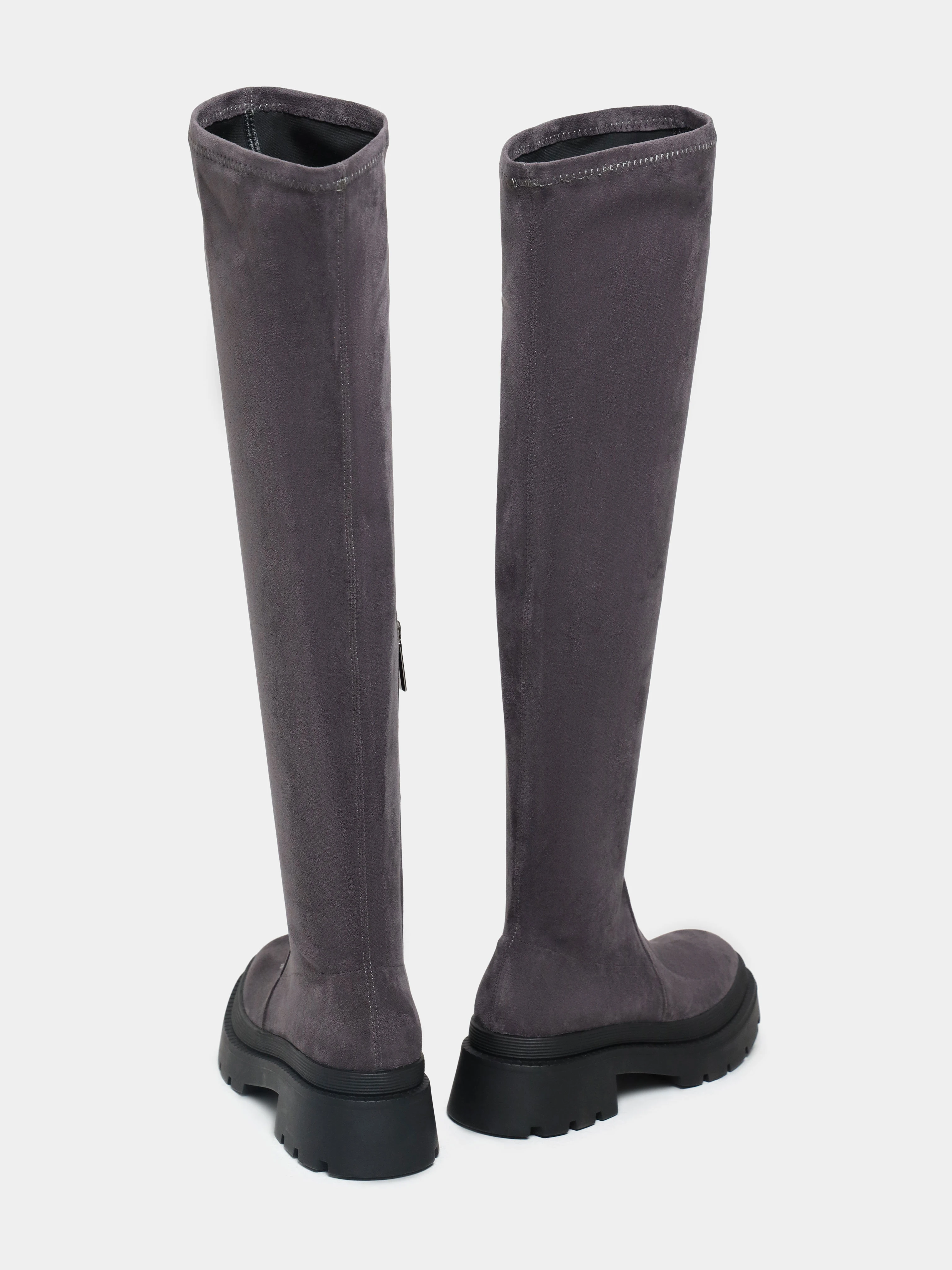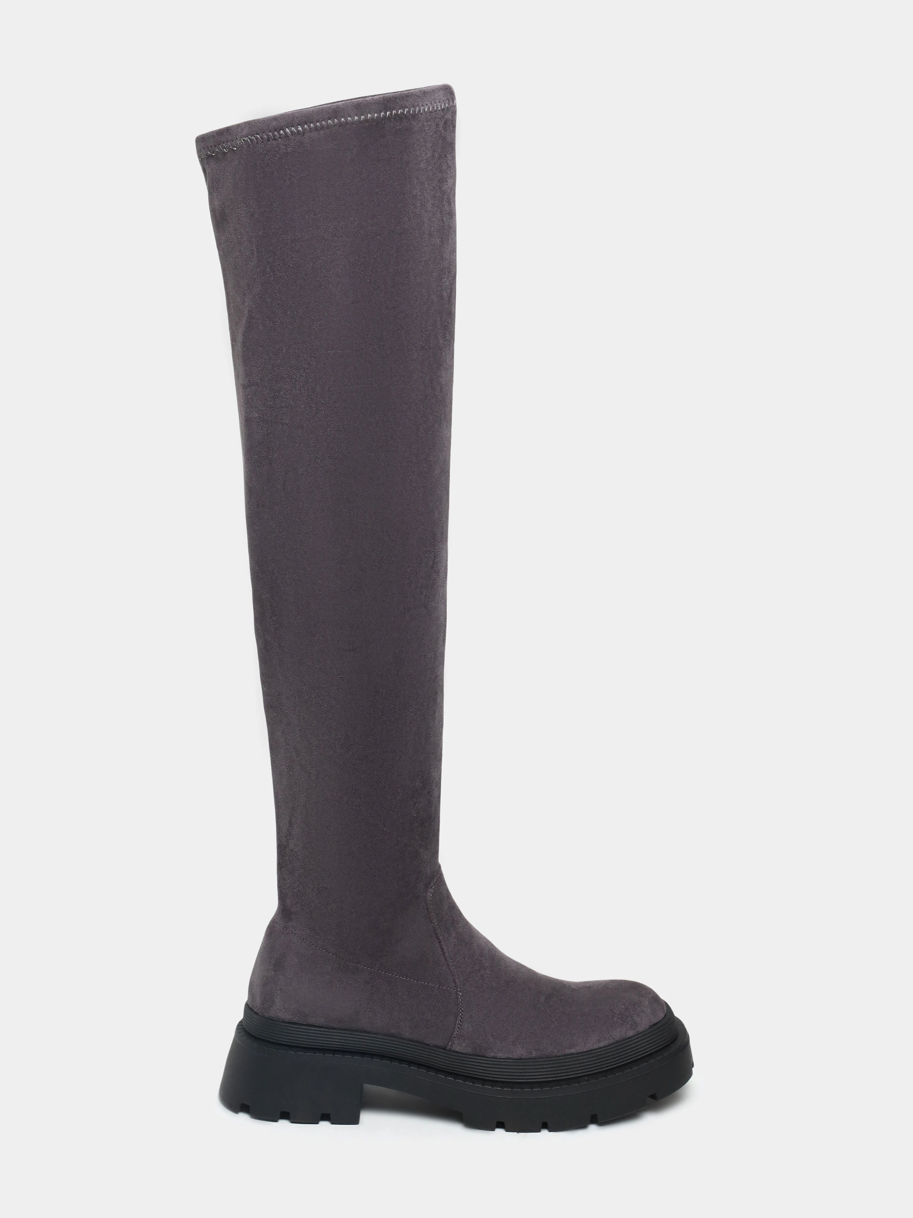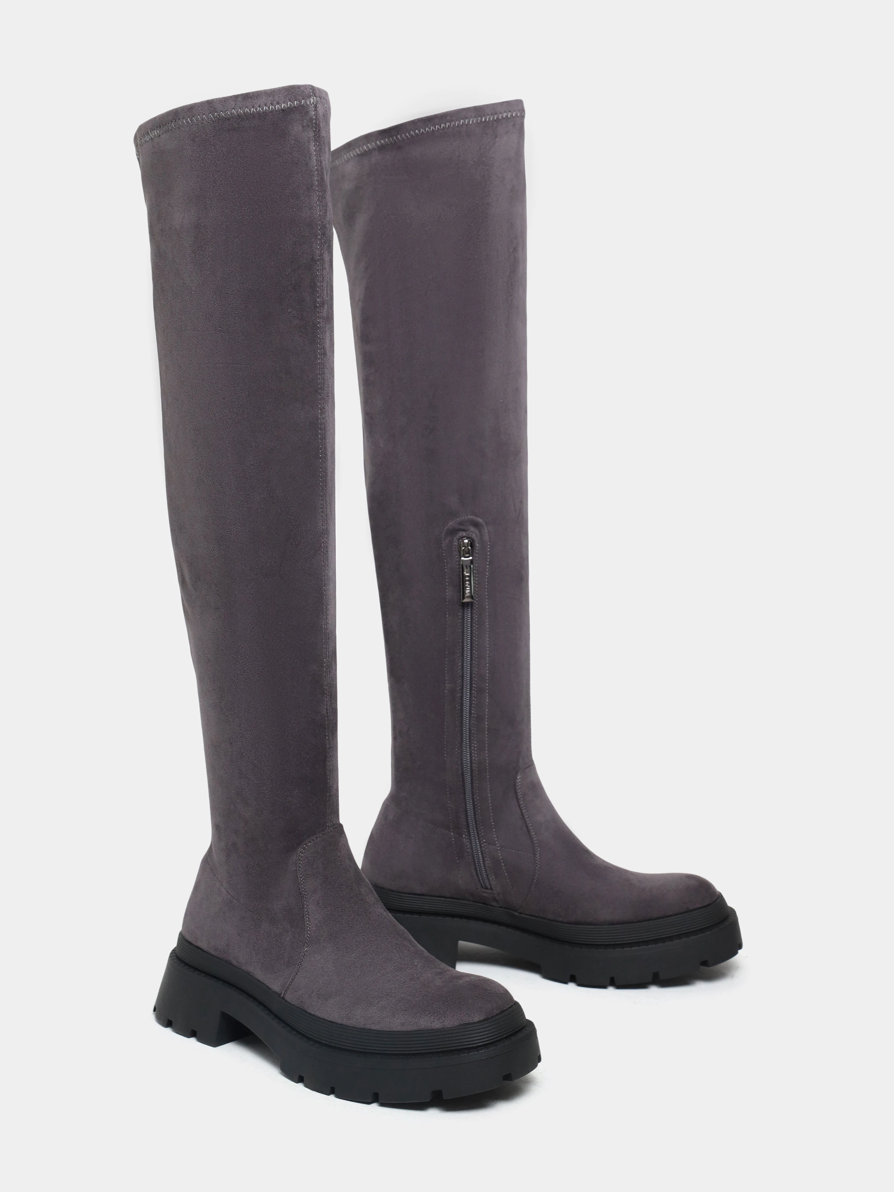 Ботфорты женские демисезонные, цвет серый, искусственный велюр