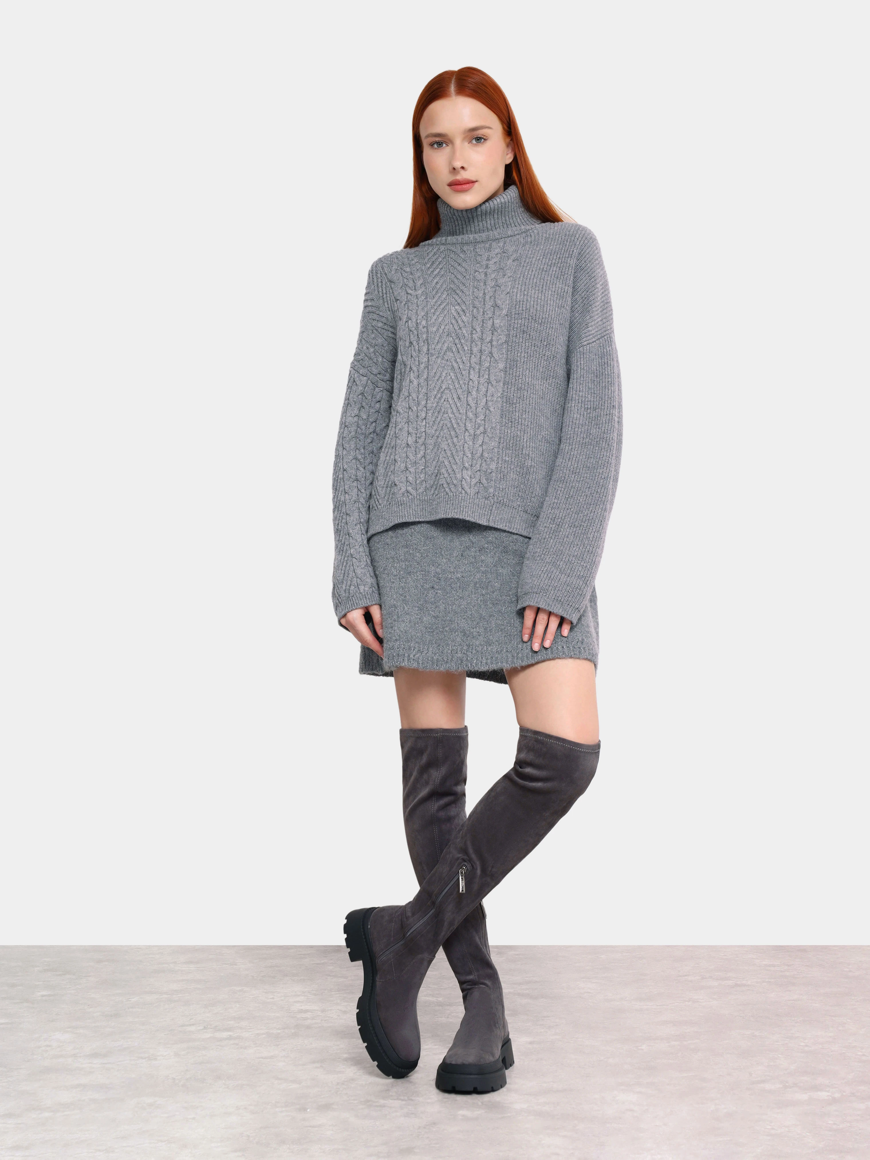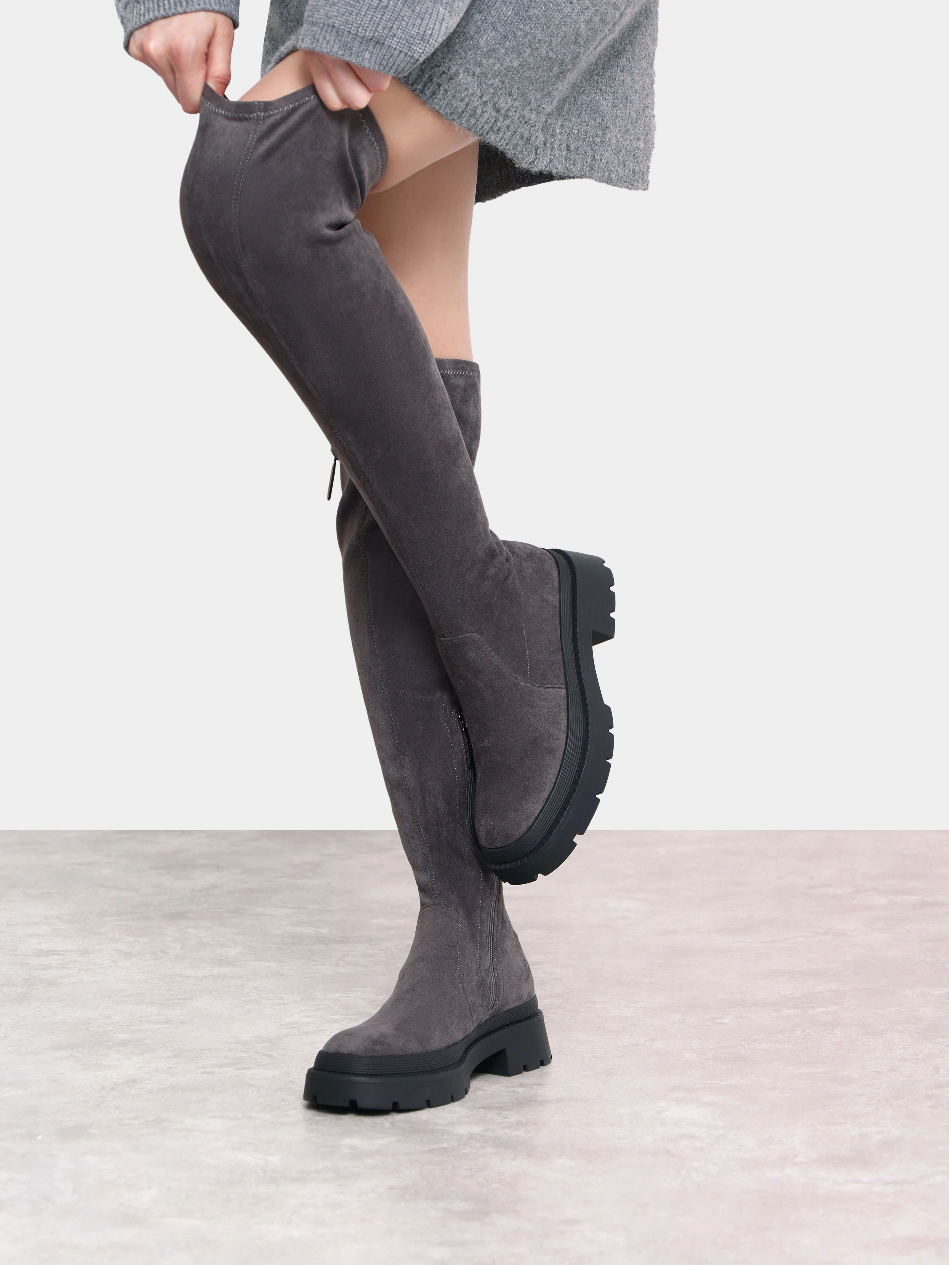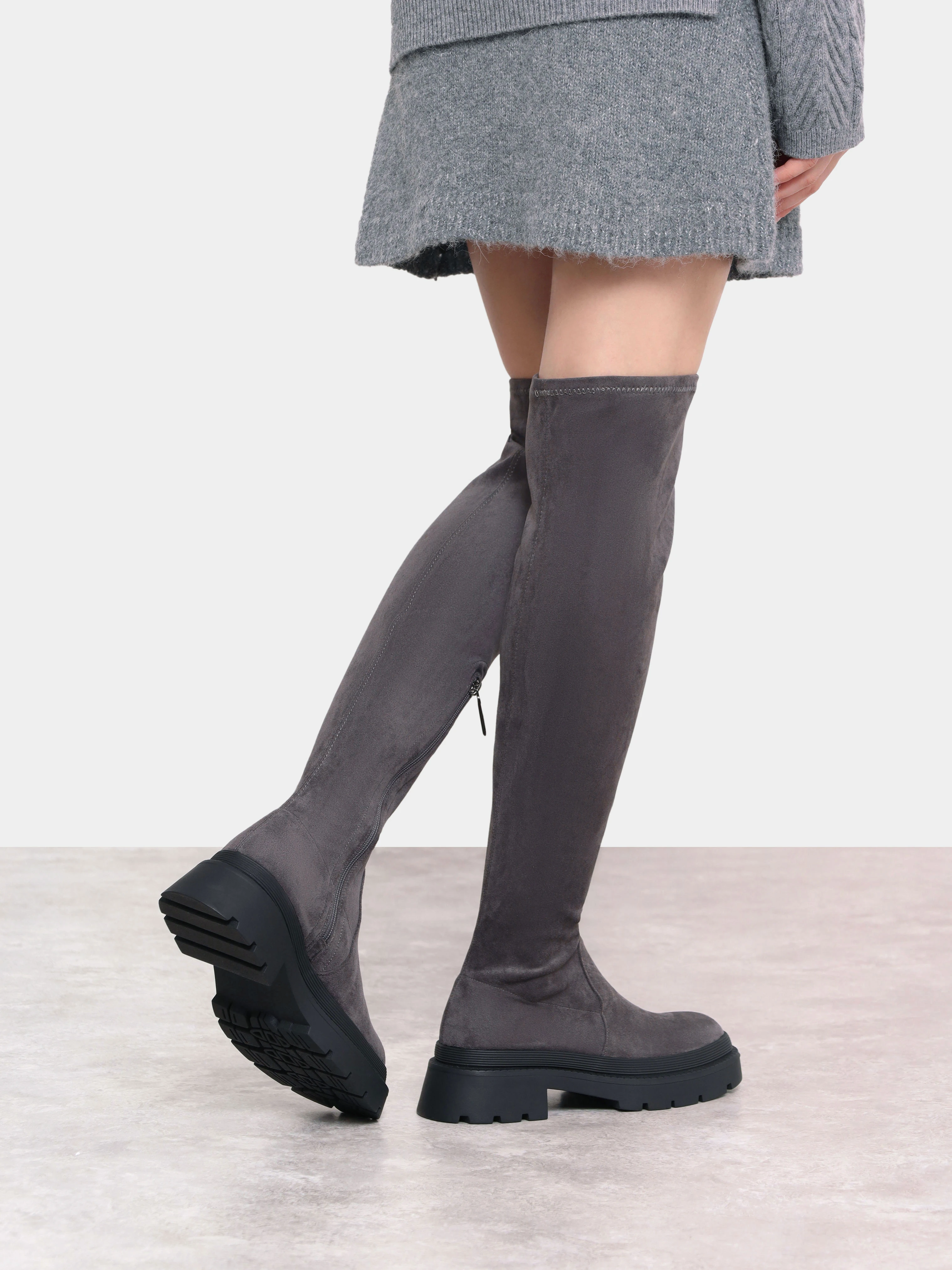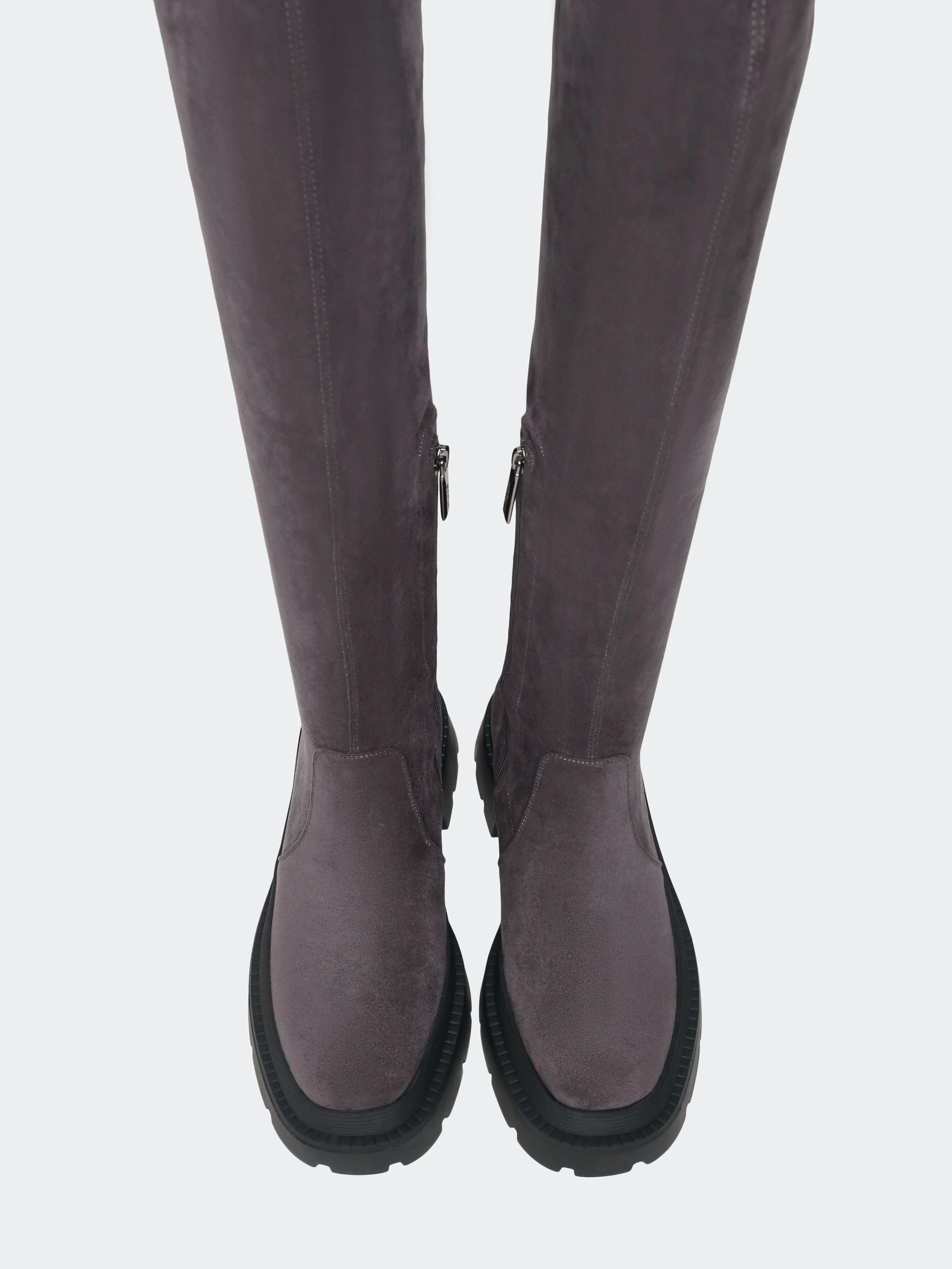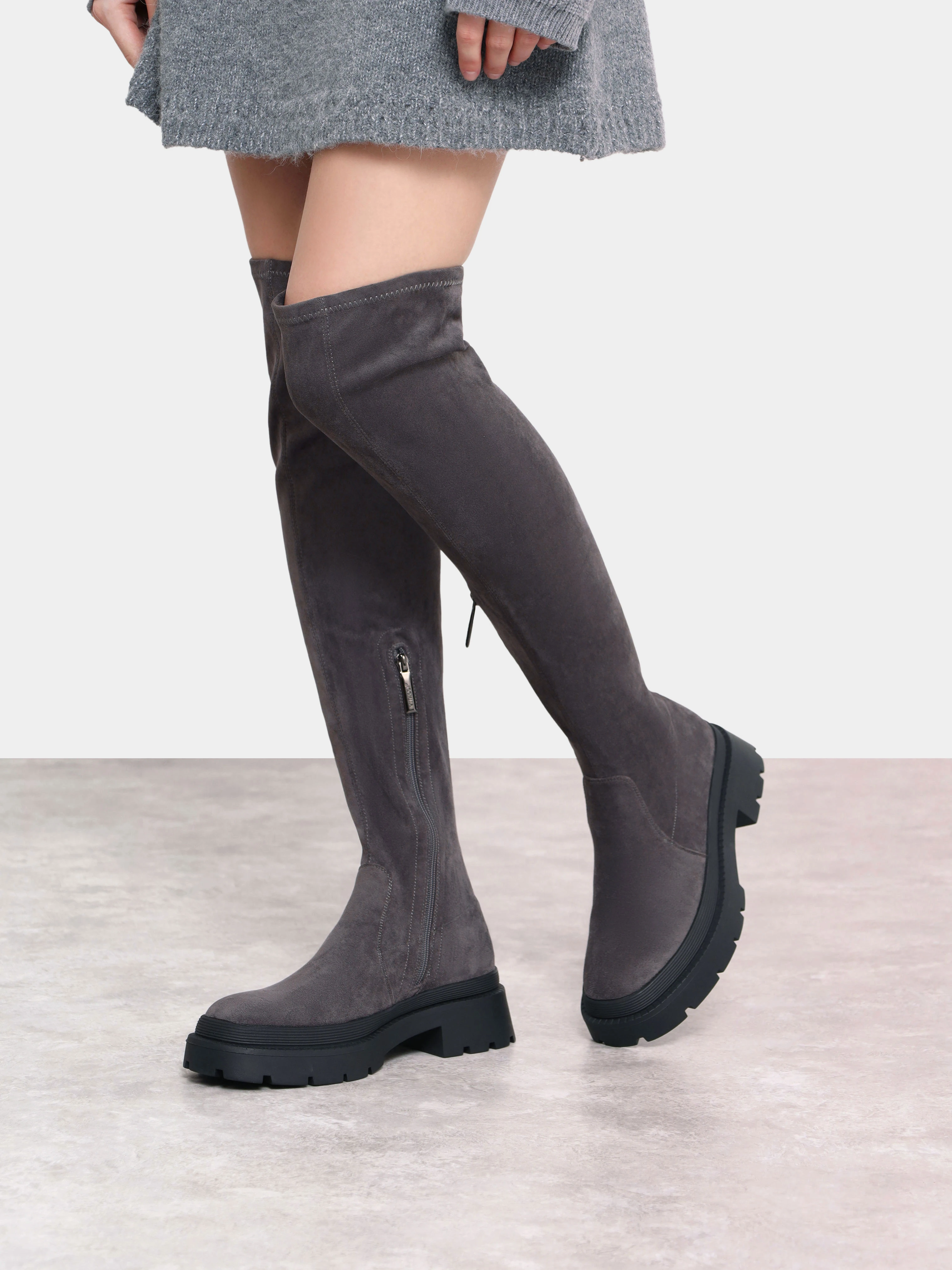 Ботфорты женские демисезонные, цвет серый, искусственный велюр