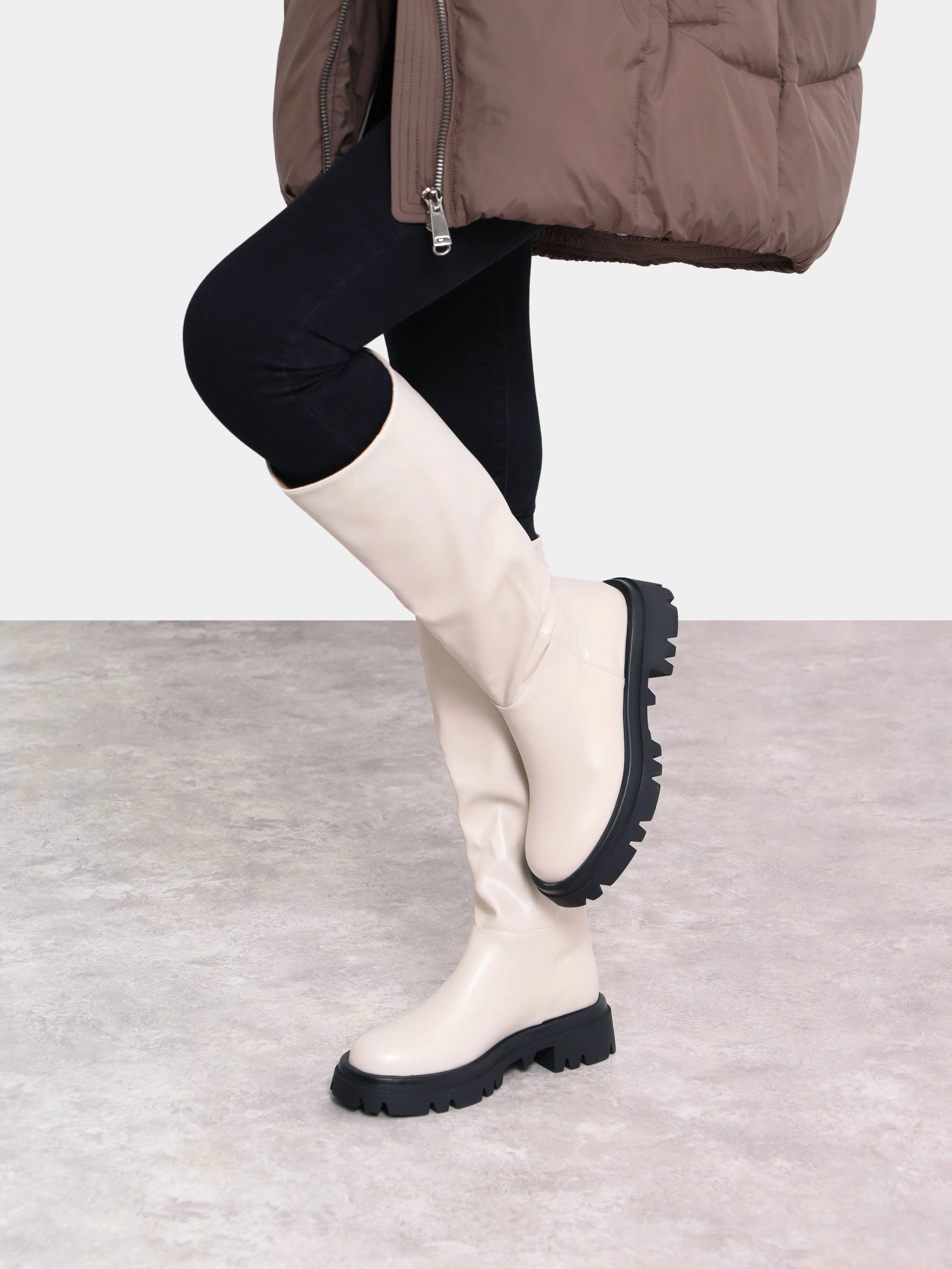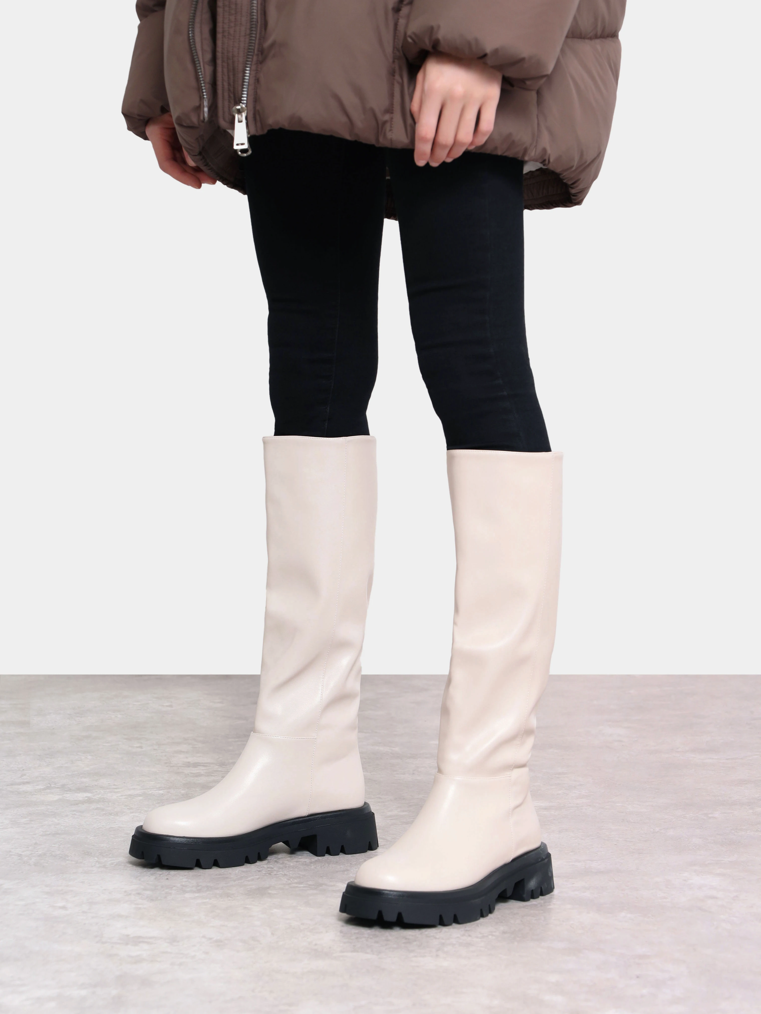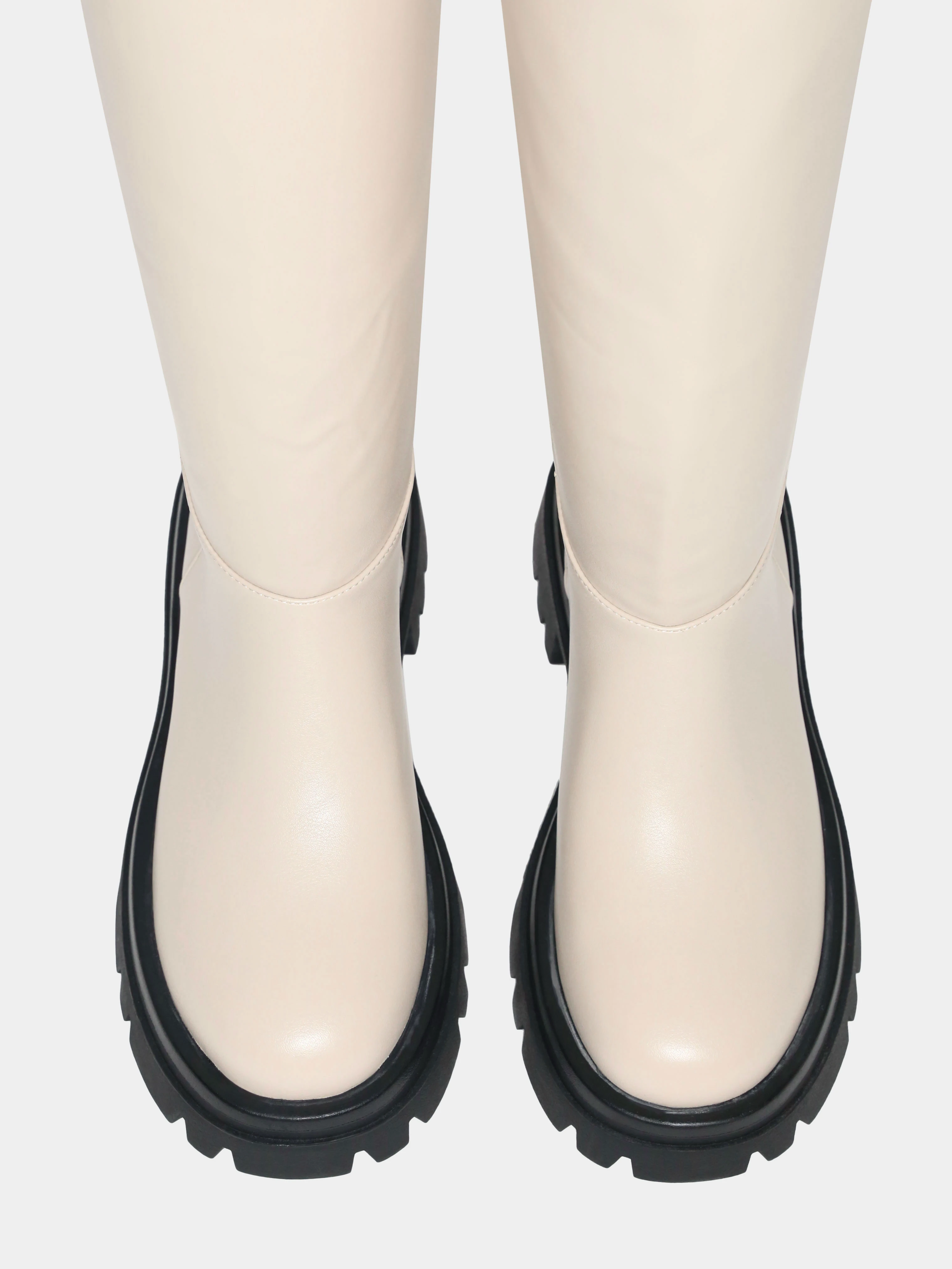 Сапоги женские демисезонные, цвет молочный, искусственная кожа