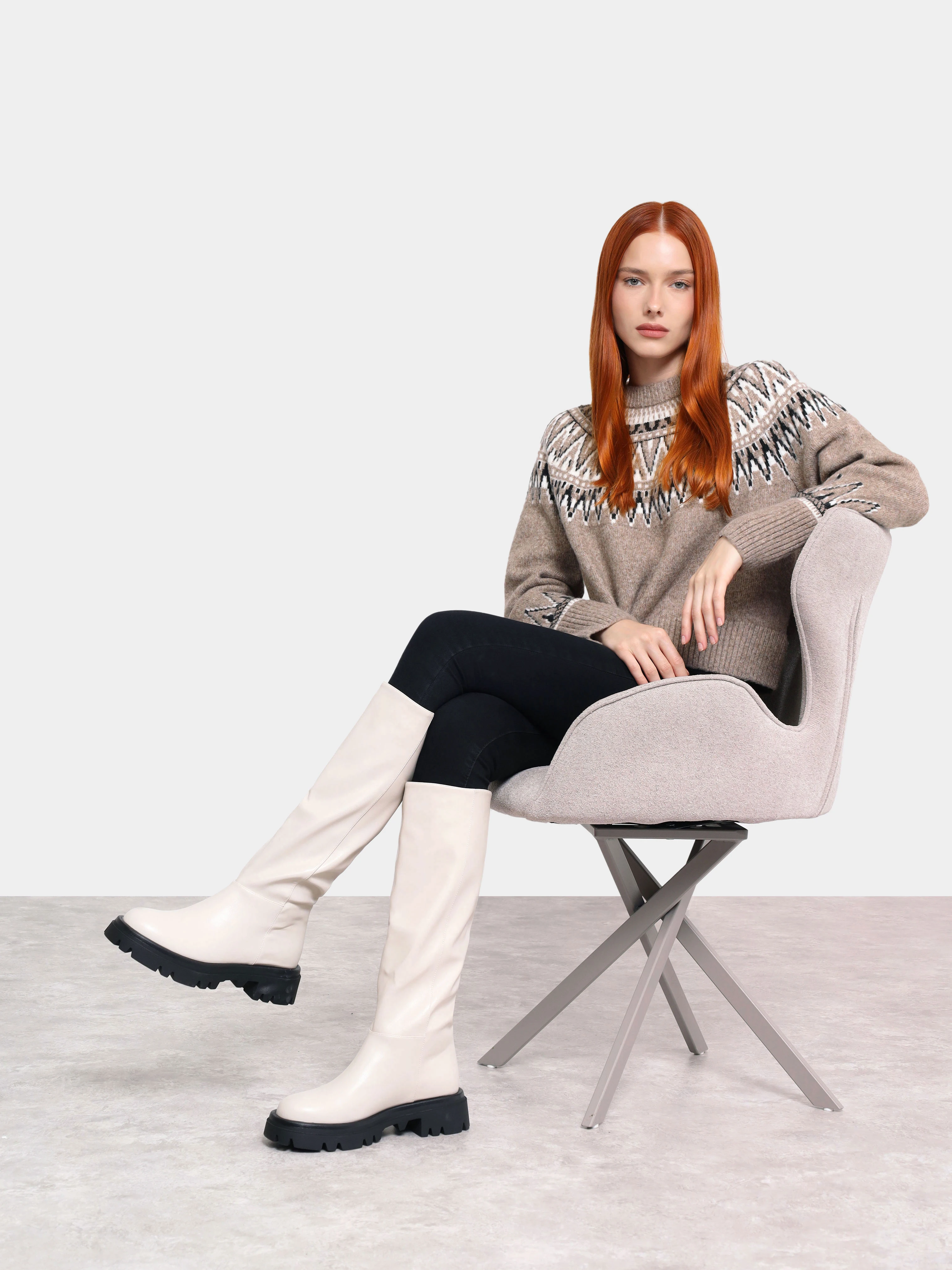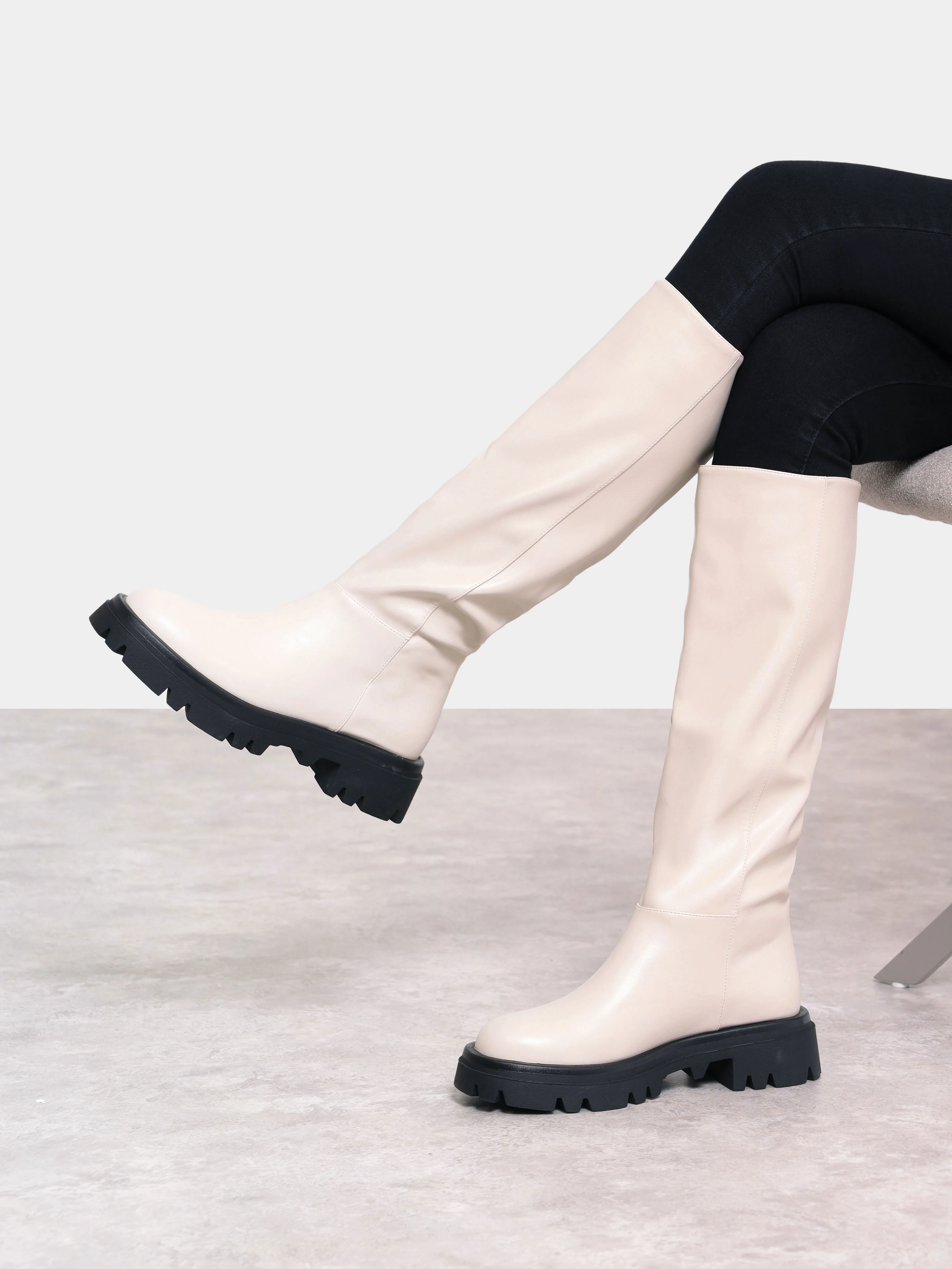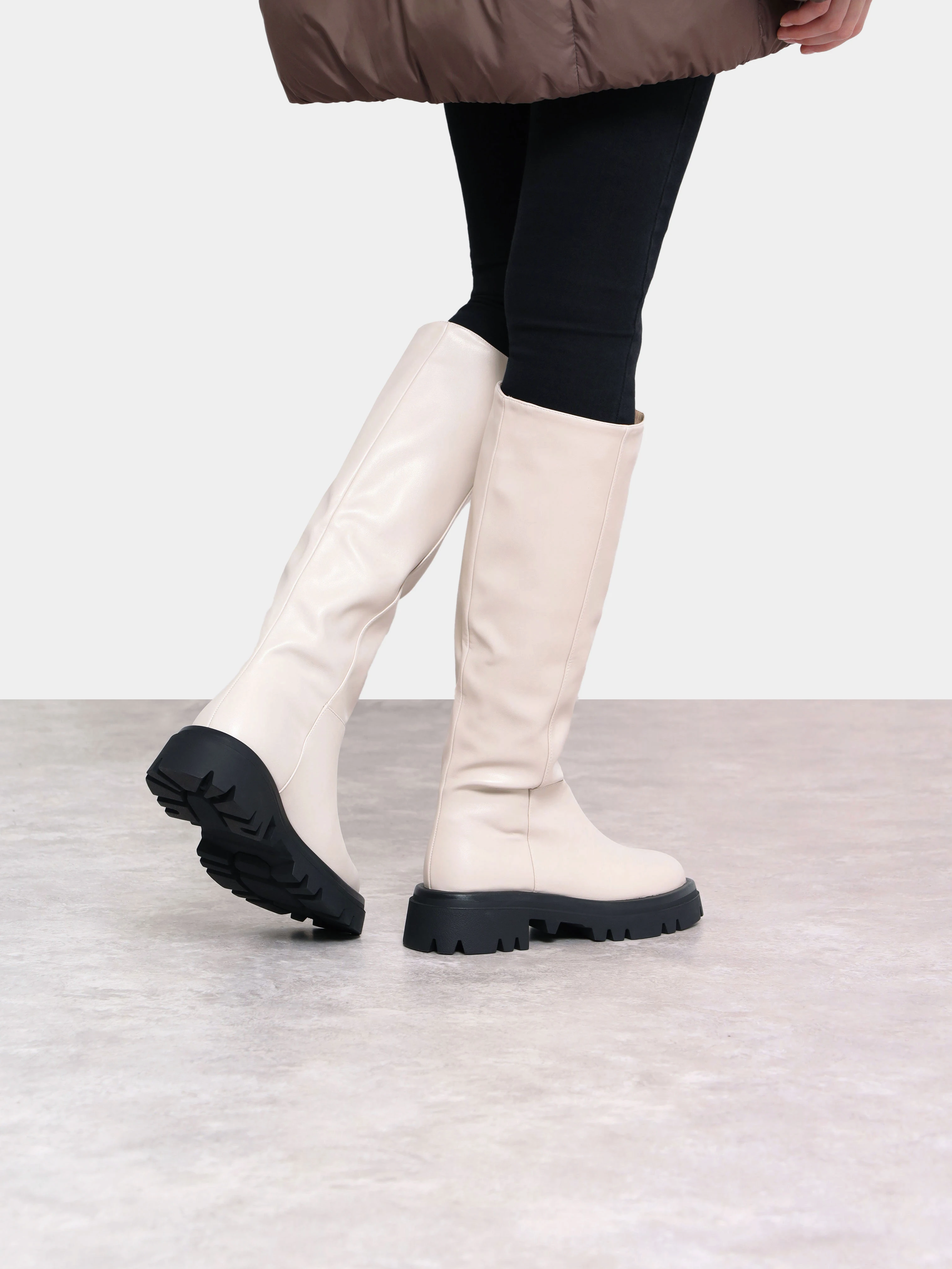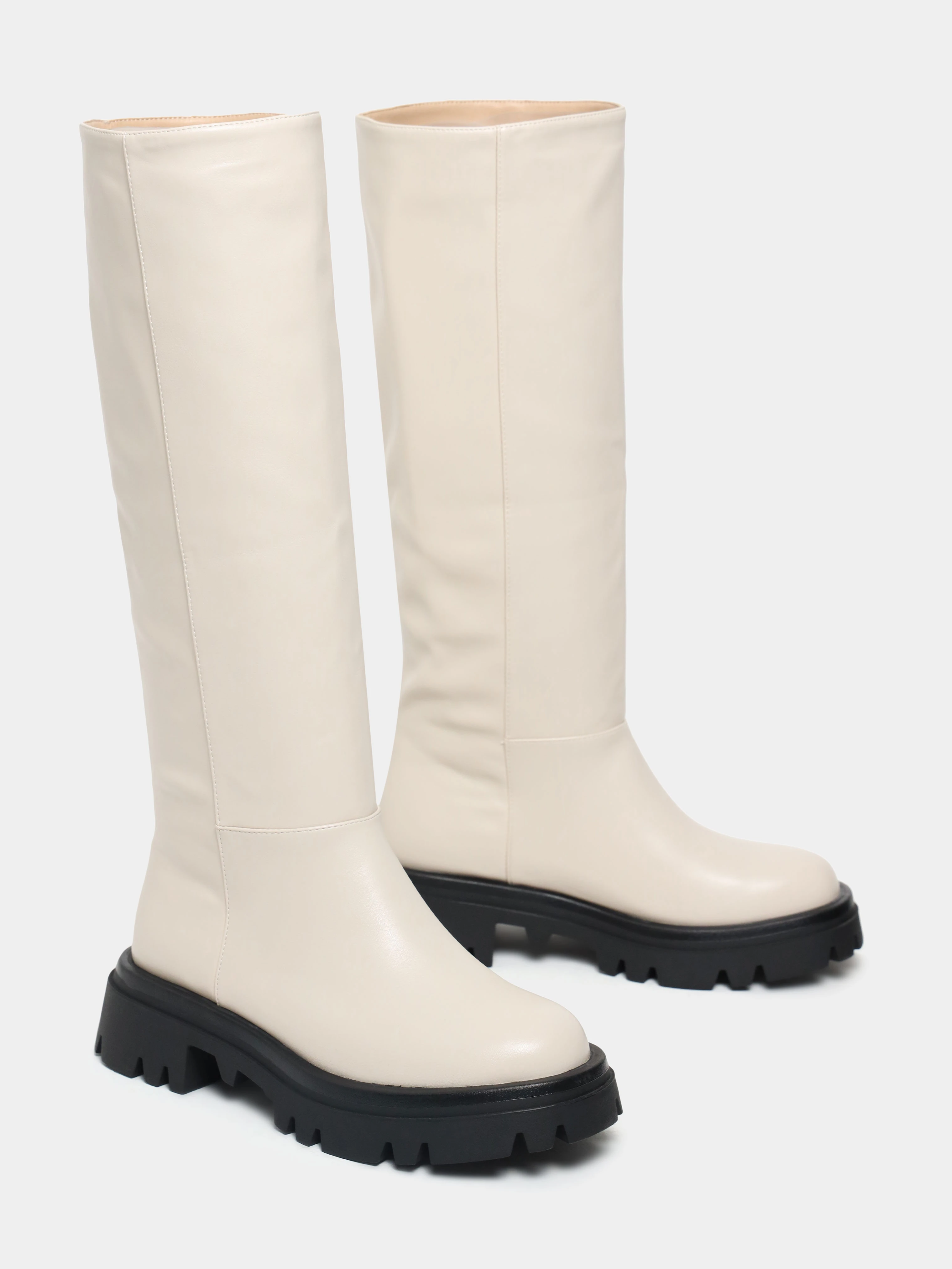 Сапоги женские демисезонные, цвет молочный, искусственная кожа
