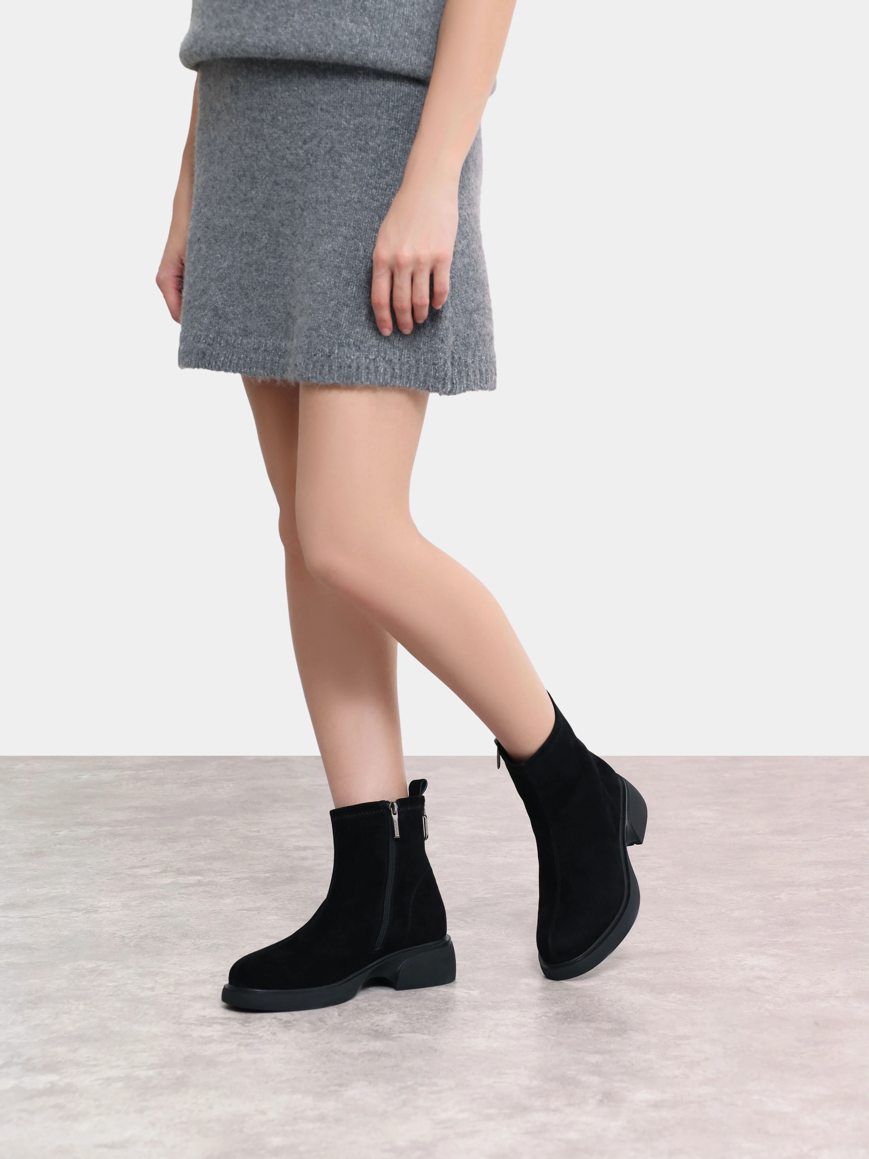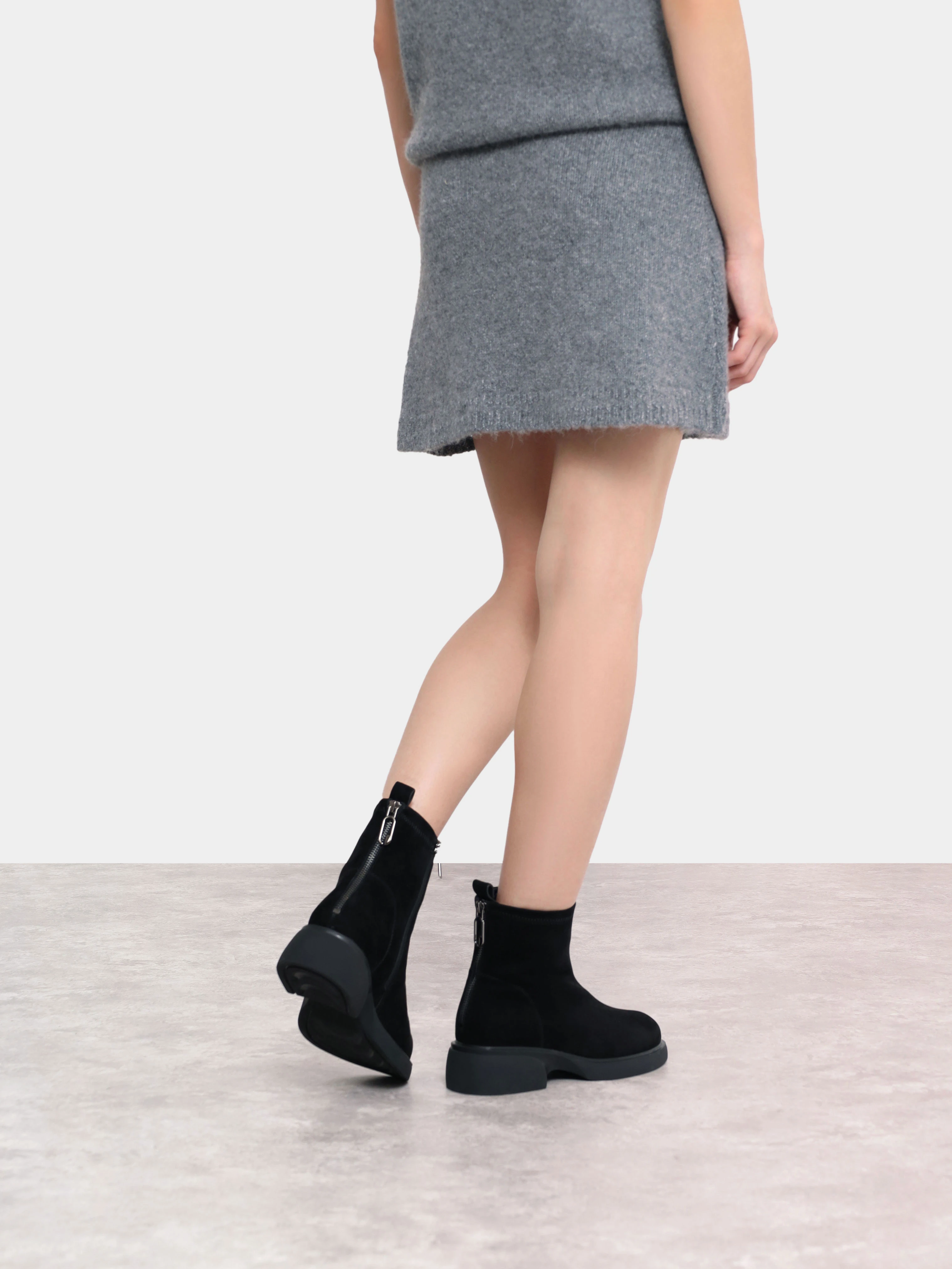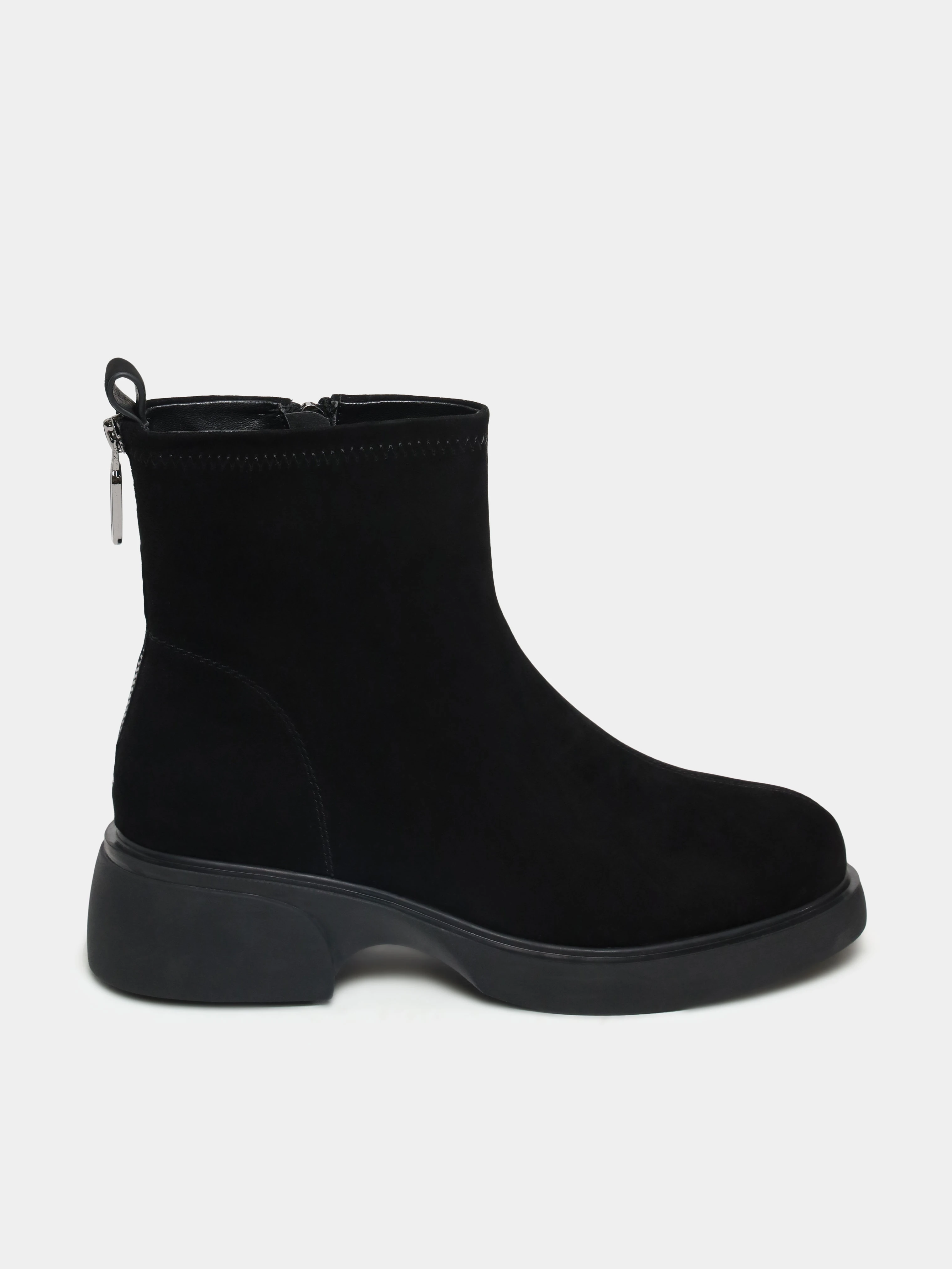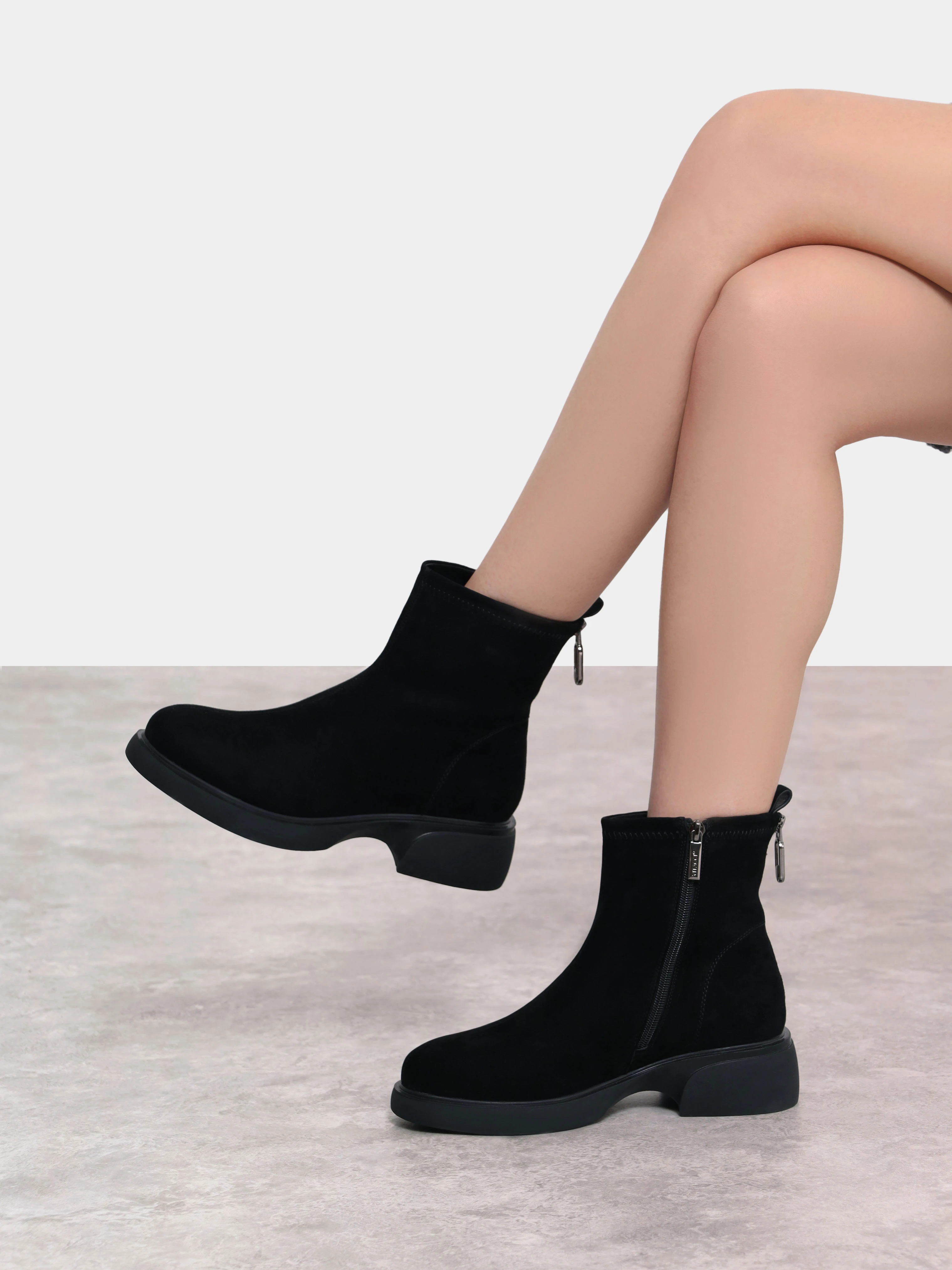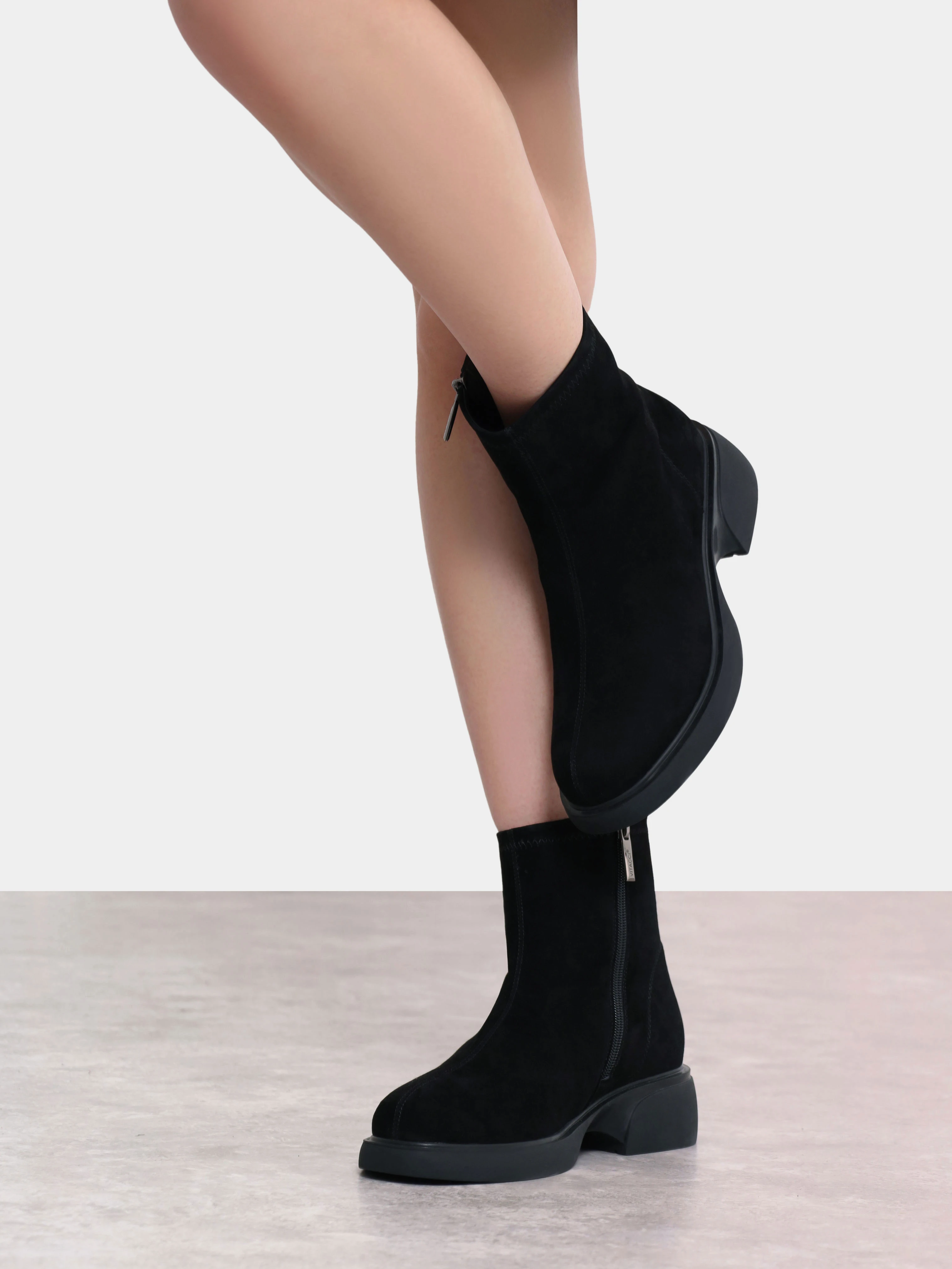 Полусапоги женские зимние, цвет черный, натуральный велюр