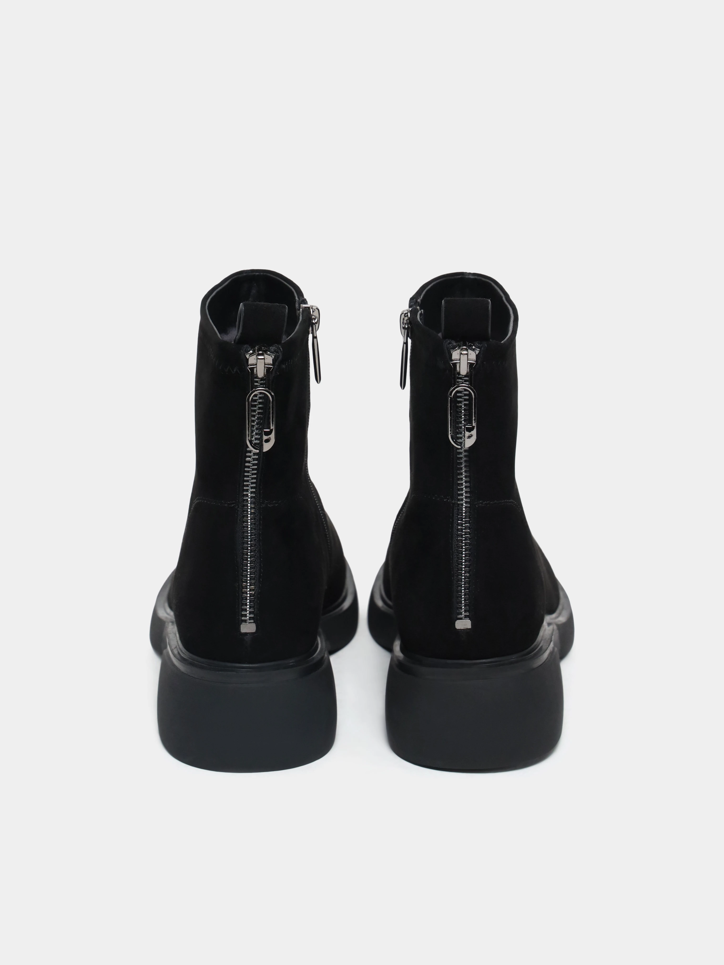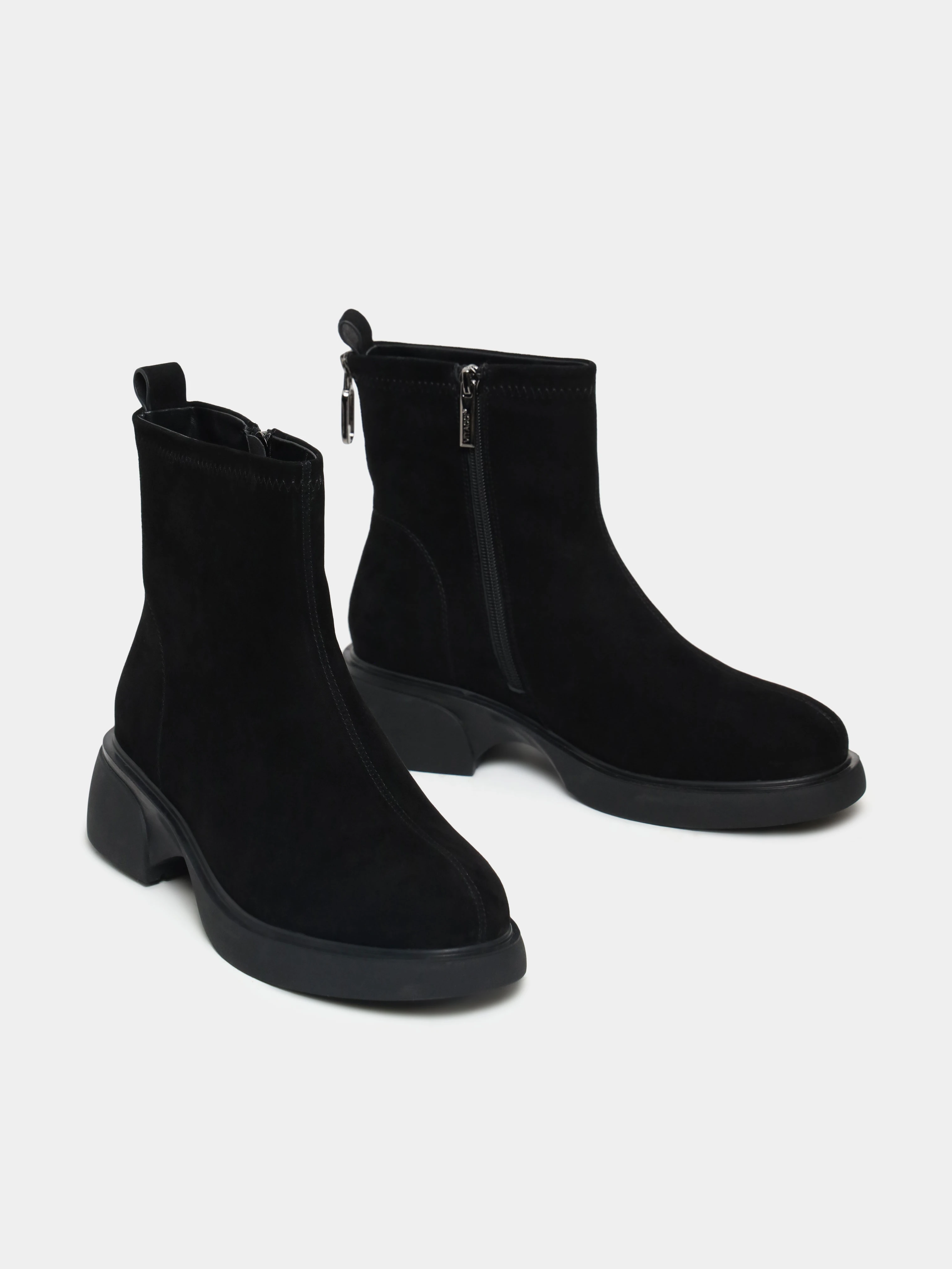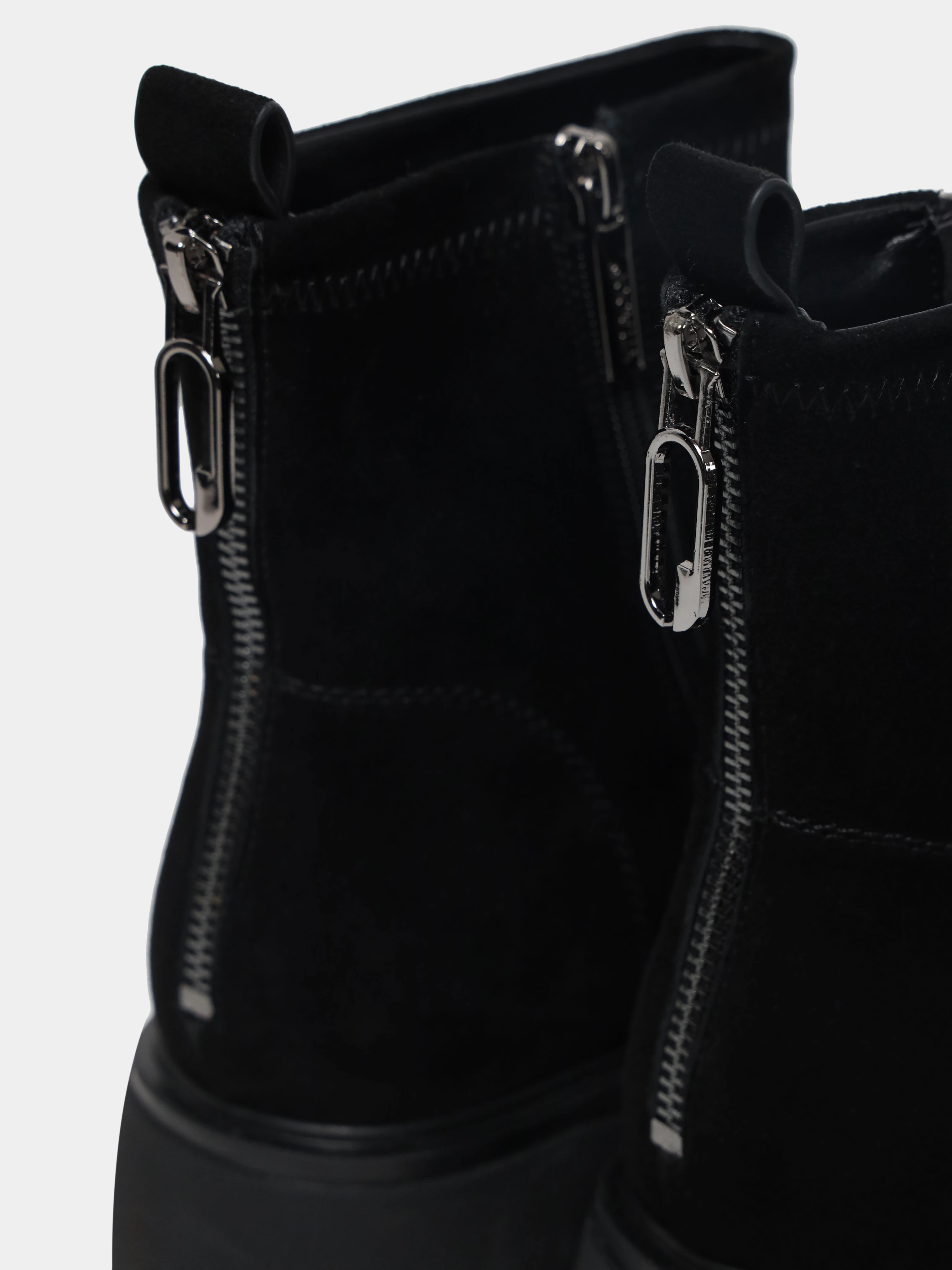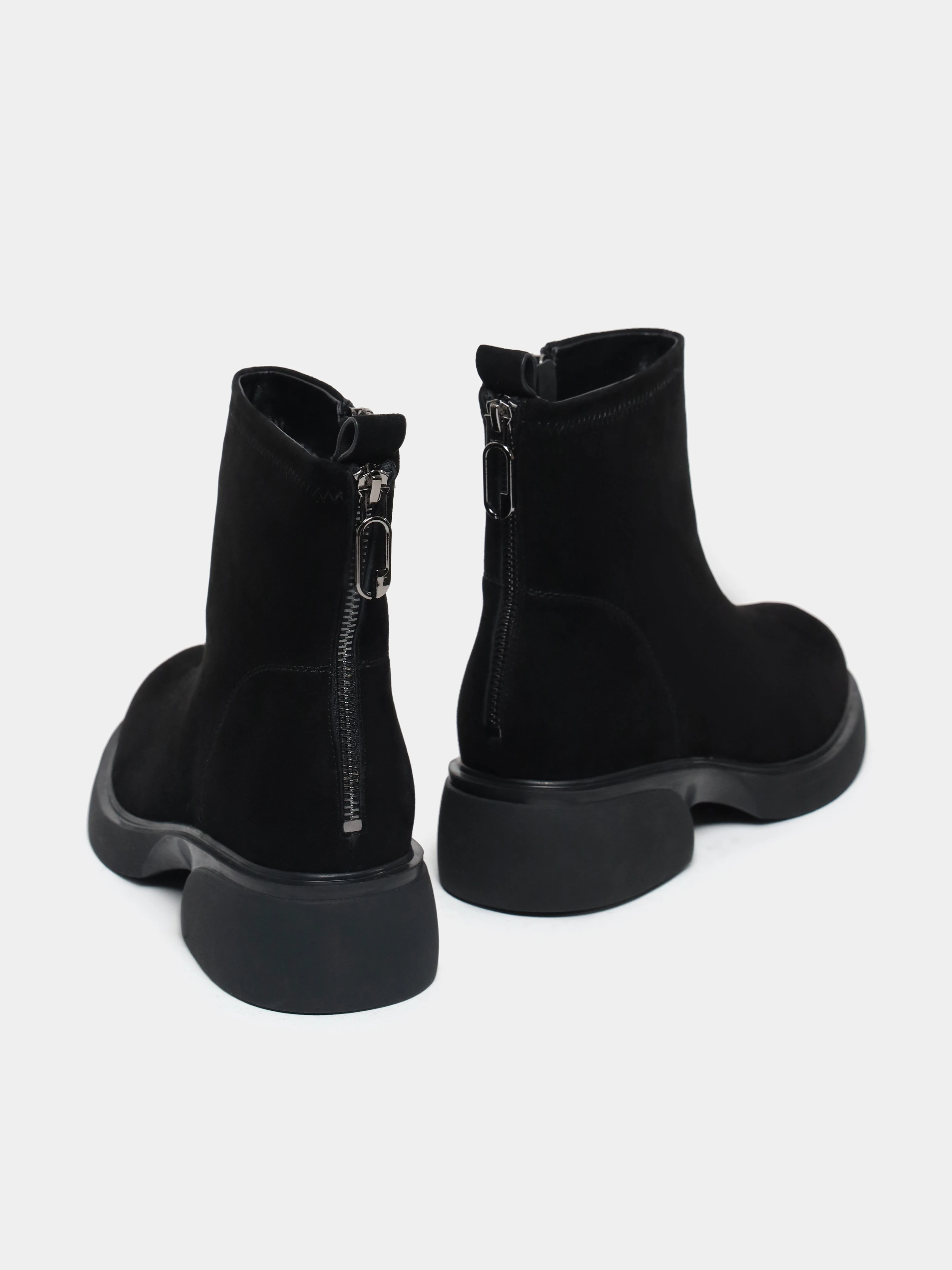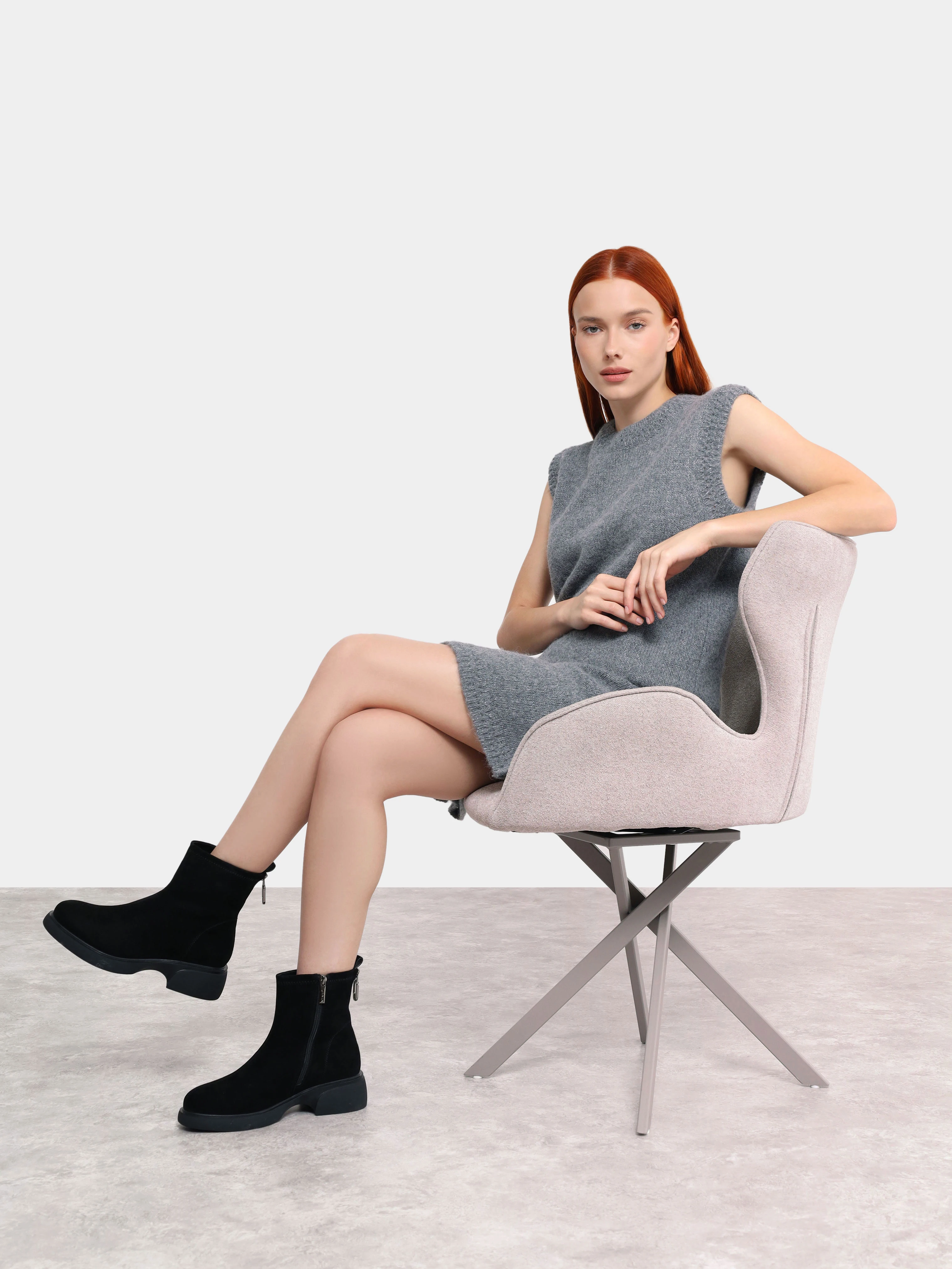 Полусапоги женские зимние, цвет черный, натуральный велюр