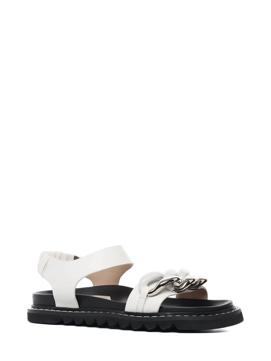Необыкновенно удобные босоножки из натуральной кожи. Модель декорирована цепью. Босоножки на низком ходу комфортны, в них можно провести весь день, не уставая. Босоножки хорошо сочетаются с большинством моделей платьев и юбок, с брюками и джинсами они так же выглядят очень стильно.