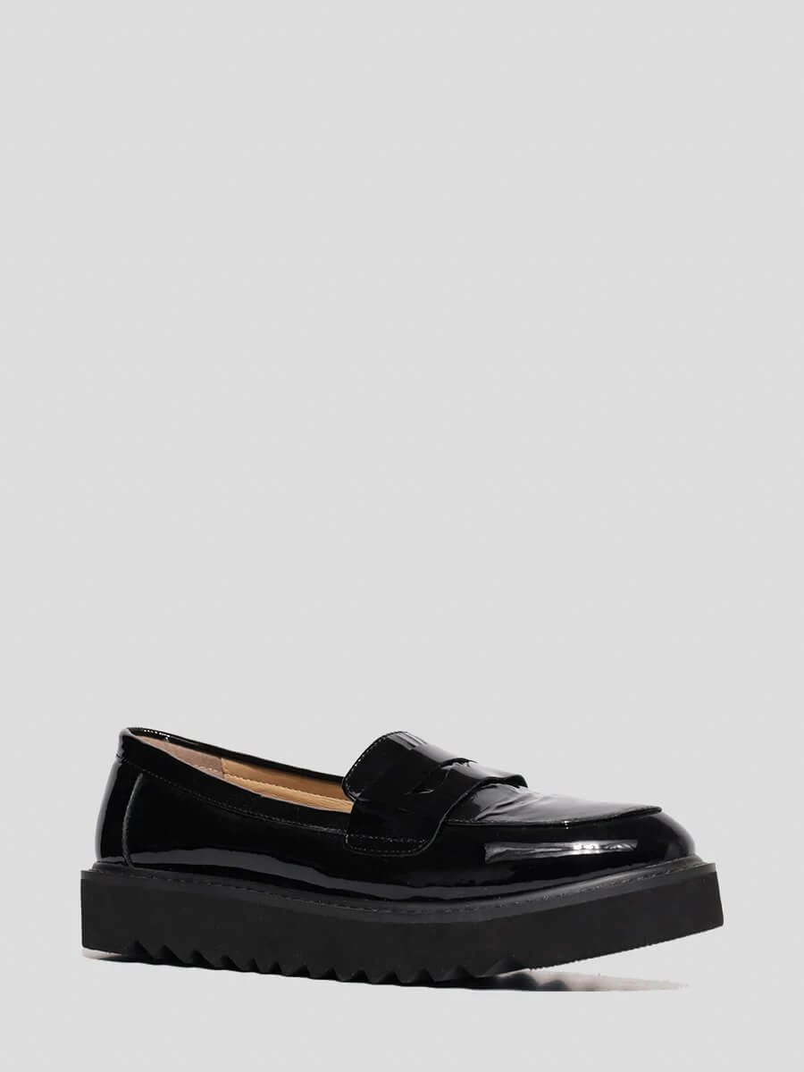 Лоферы женские всесезонные, цвет черный, натуральная лаковая кожа