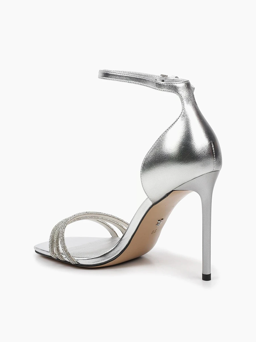 Босоножки из натуральной кожи. Модные, нарядные босоножки со стразами на высоком каблуке с закрытой пяткой. Подойдут для выпускного, праздника, торжества.