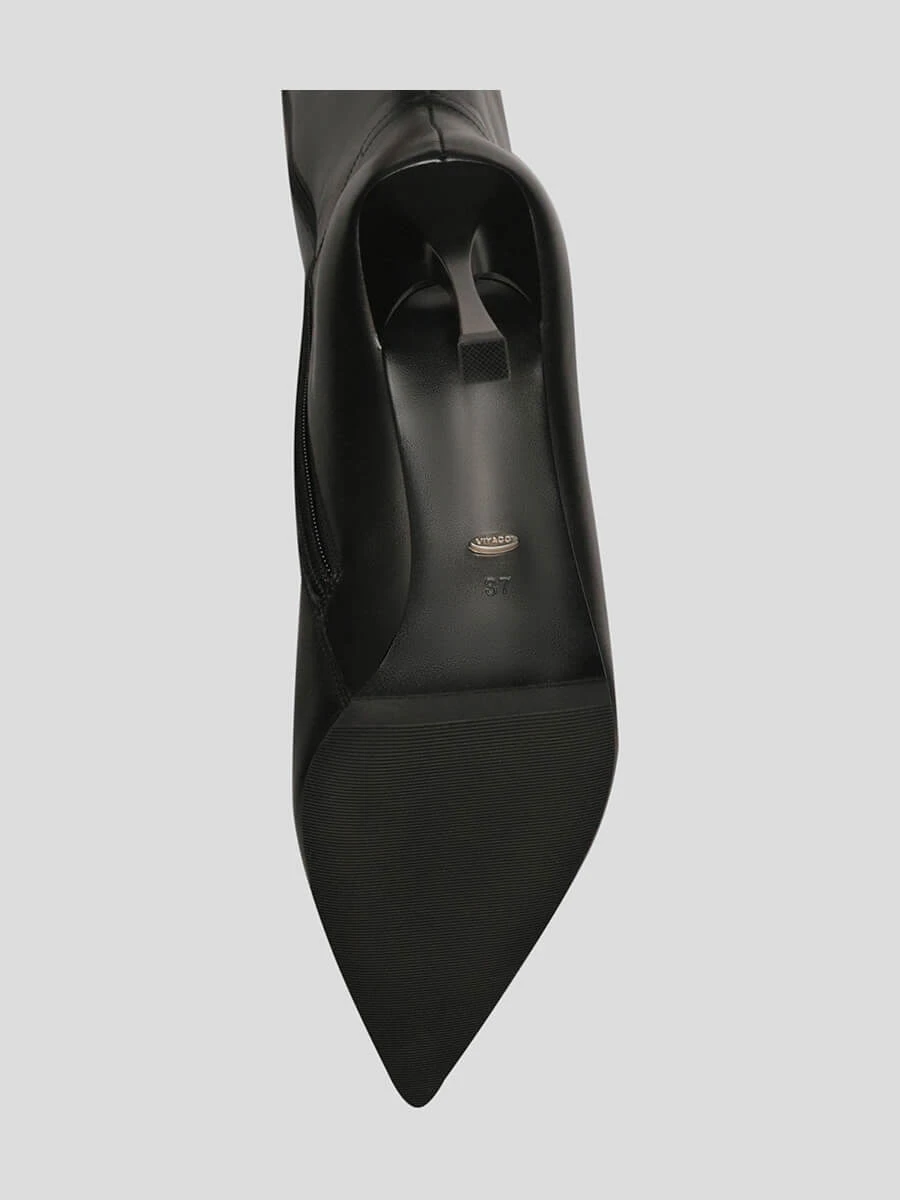 Сапоги женские от бренда VITACCI. Модель выполнена из натуральной кожи. Лаконичный дизайн, низкий широкий каблук, мягкая подкладка из байки - отличный вариант на осень и весну.