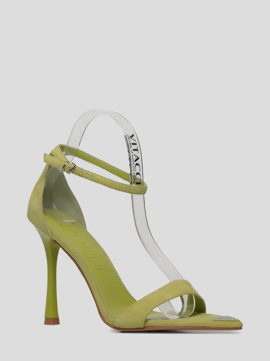 Босоножки из натурального велюра от бренда VITACCI. Модная яркая модель на высоком каблуке с закрытой пяткой и ремешком. Подойдут на выпускной, праздник, торжество.