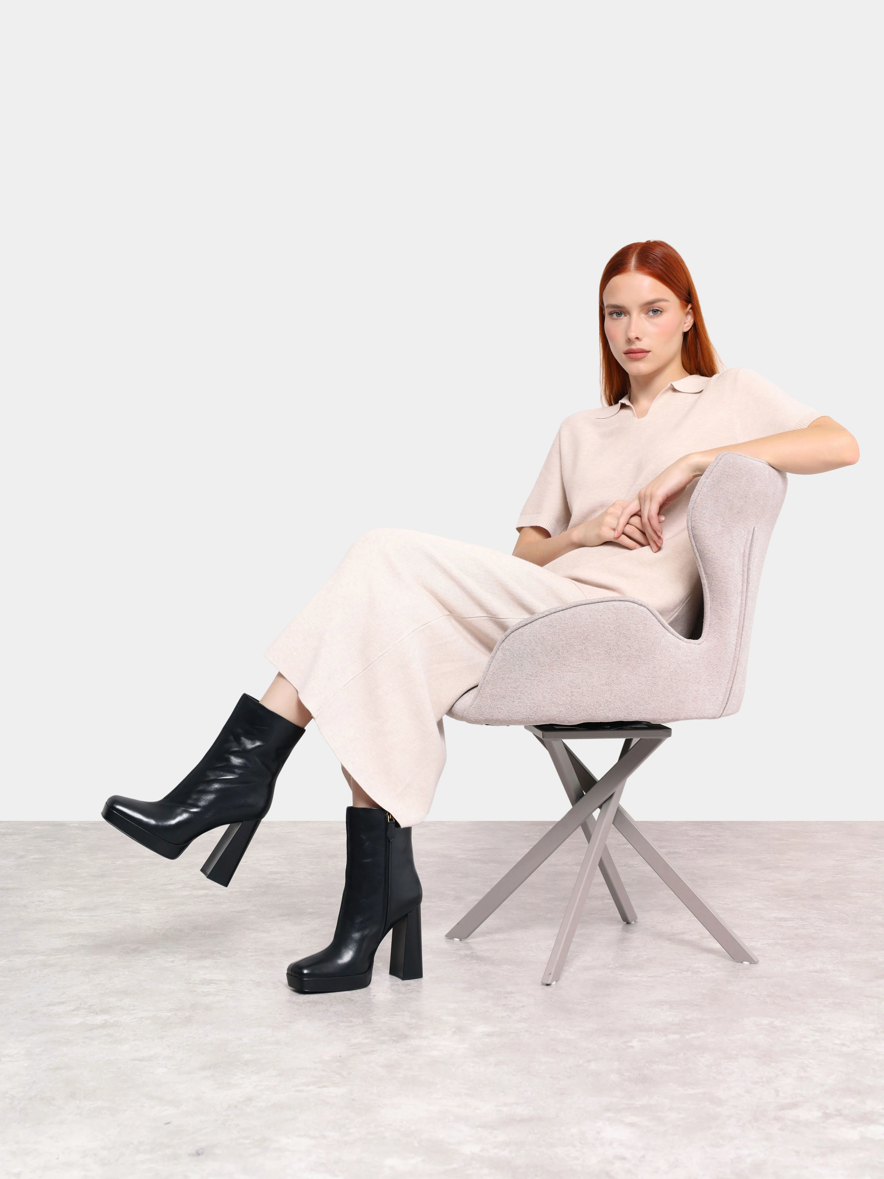 Полусапоги женские демисезонные, цвет черный, натуральная кожа