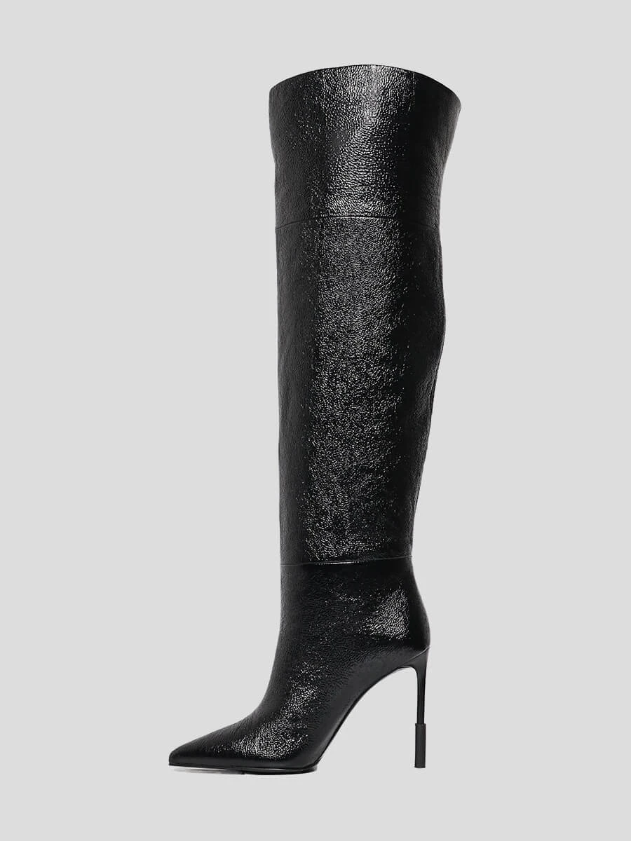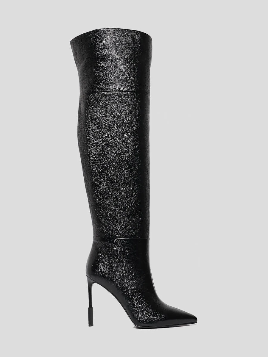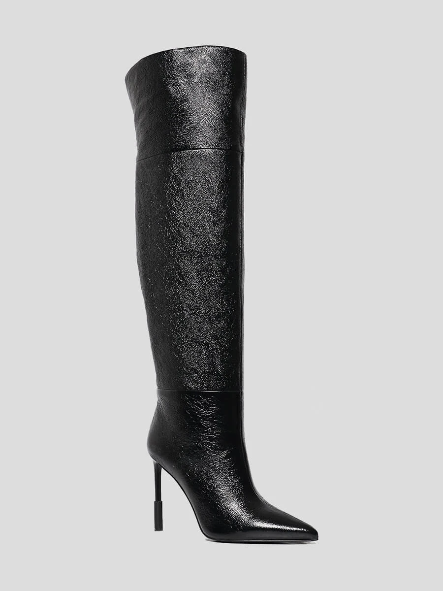 Ботфорты женские демисезонные, цвет черный, натуральный наплак