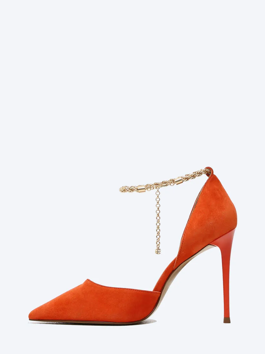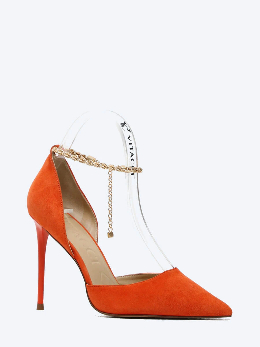 Туфли женские летние, цвет оранжевый, натуральный велюр