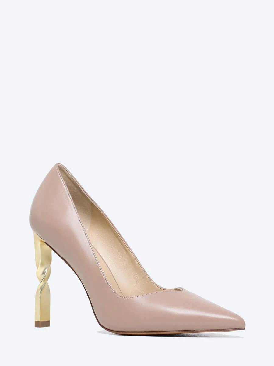 Туфли-лодочки выполнены из натуральной кожи. Особенности модели: острый носок, высокий фигурный каблук.