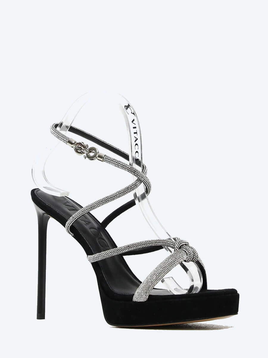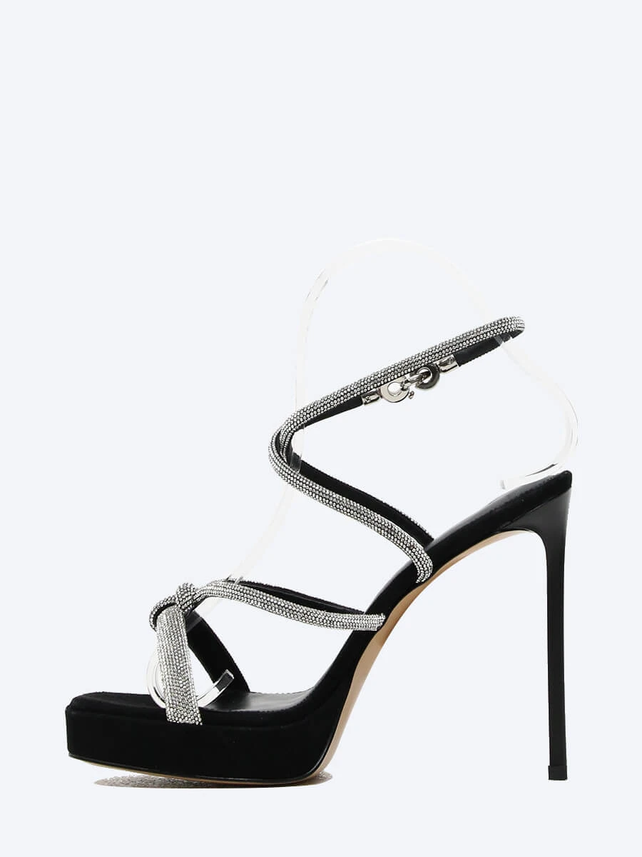 Босоножки на платформе выполнены из натурального велюра, усыпанного стразами. Стелька из натуральной кожи. Модель подойдет для выпускного, праздника, торжества.