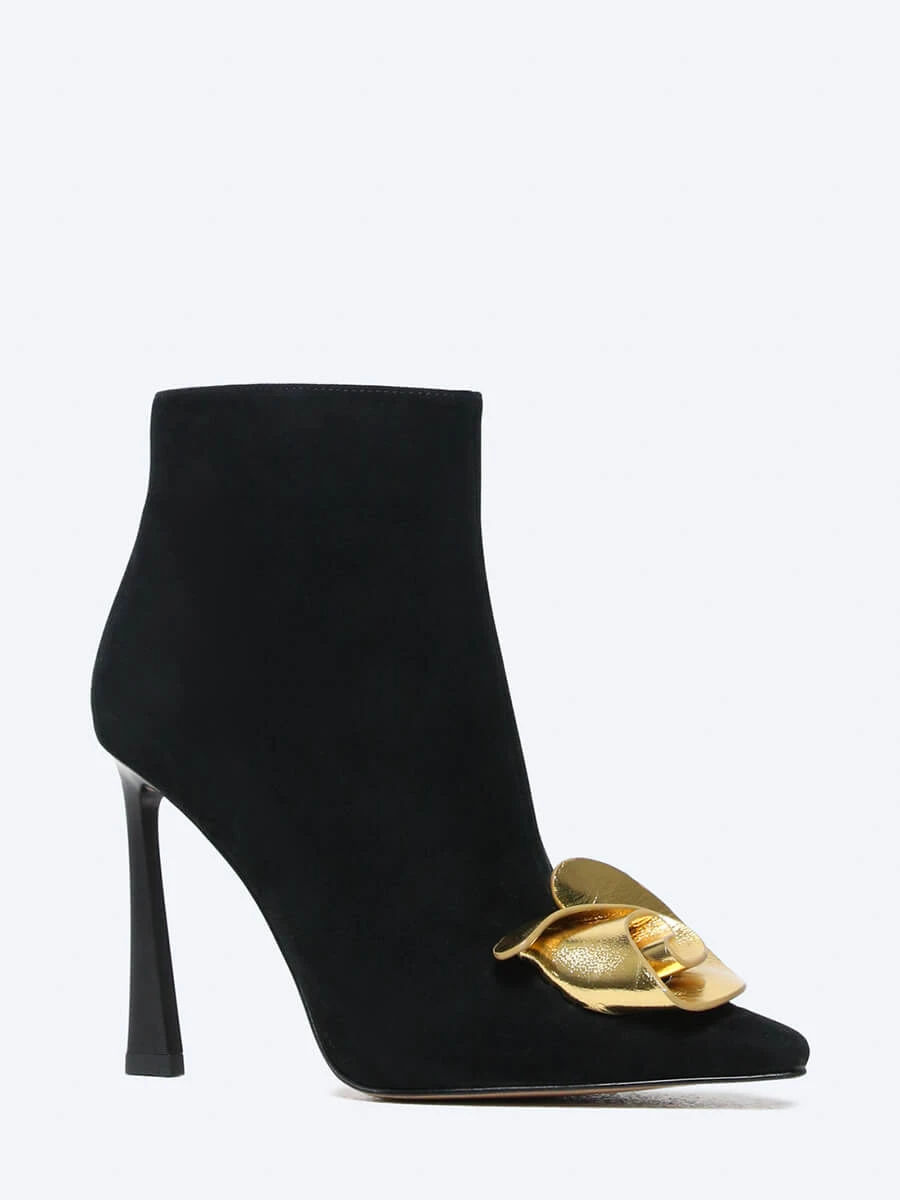Ботильоны женские демисезонные, цвет черный, натуральный велюр