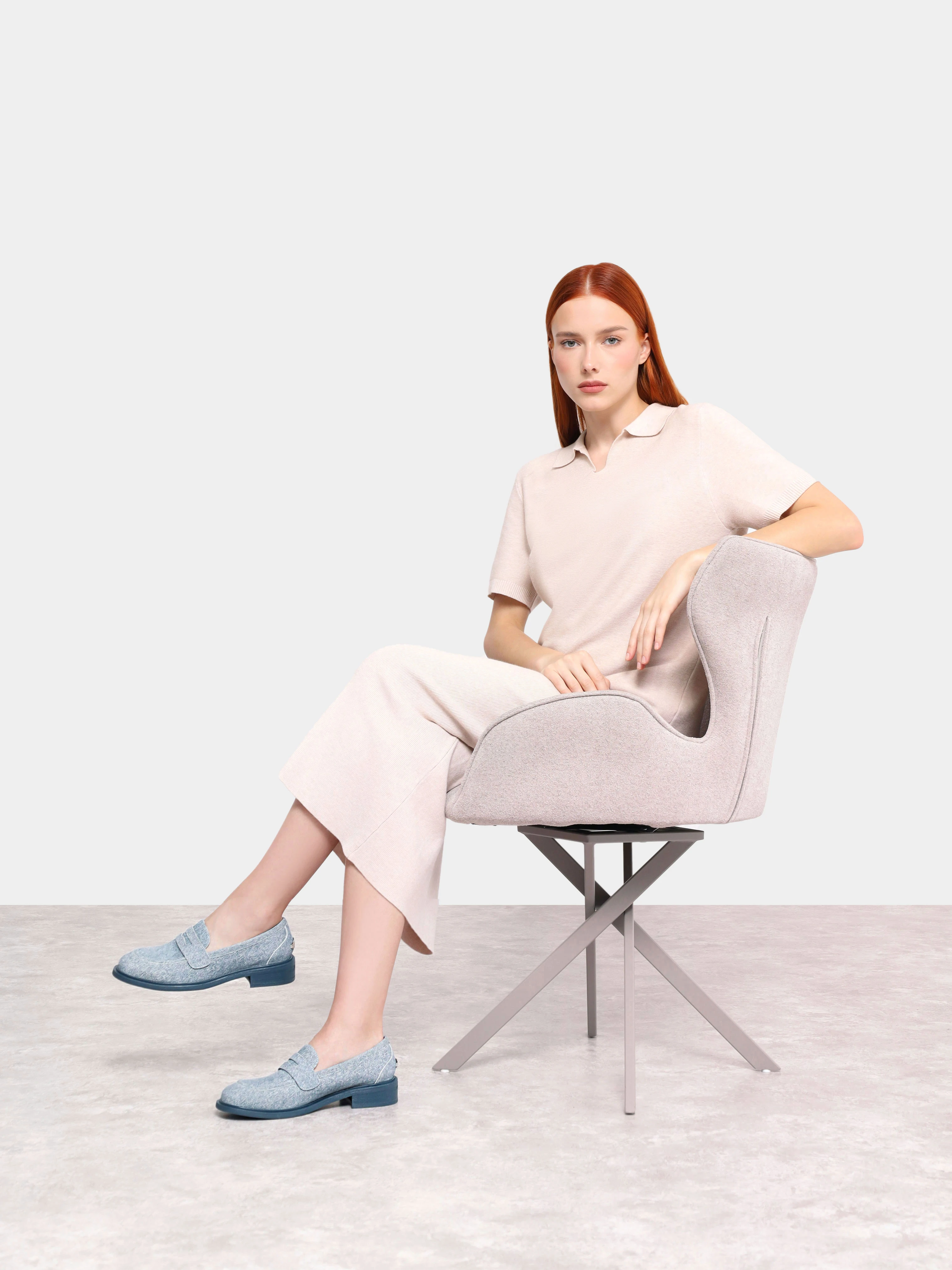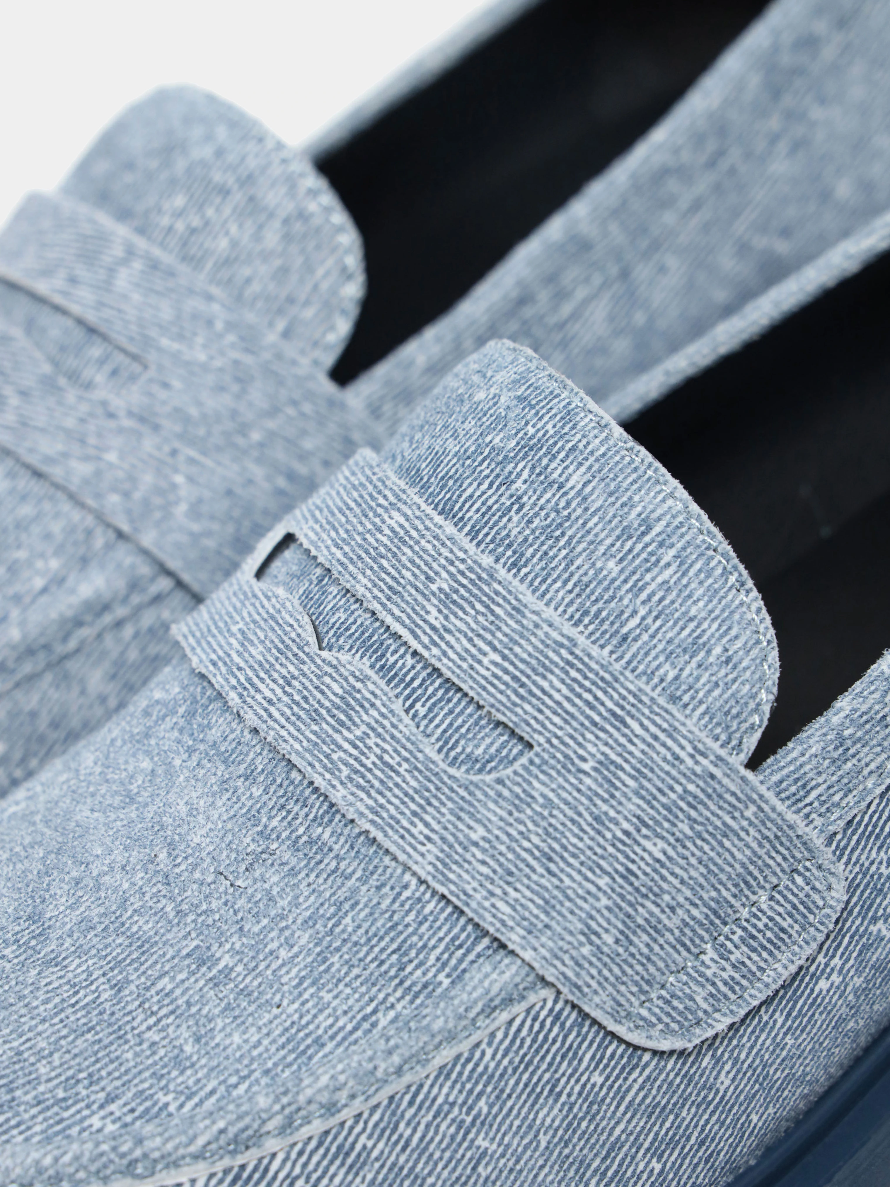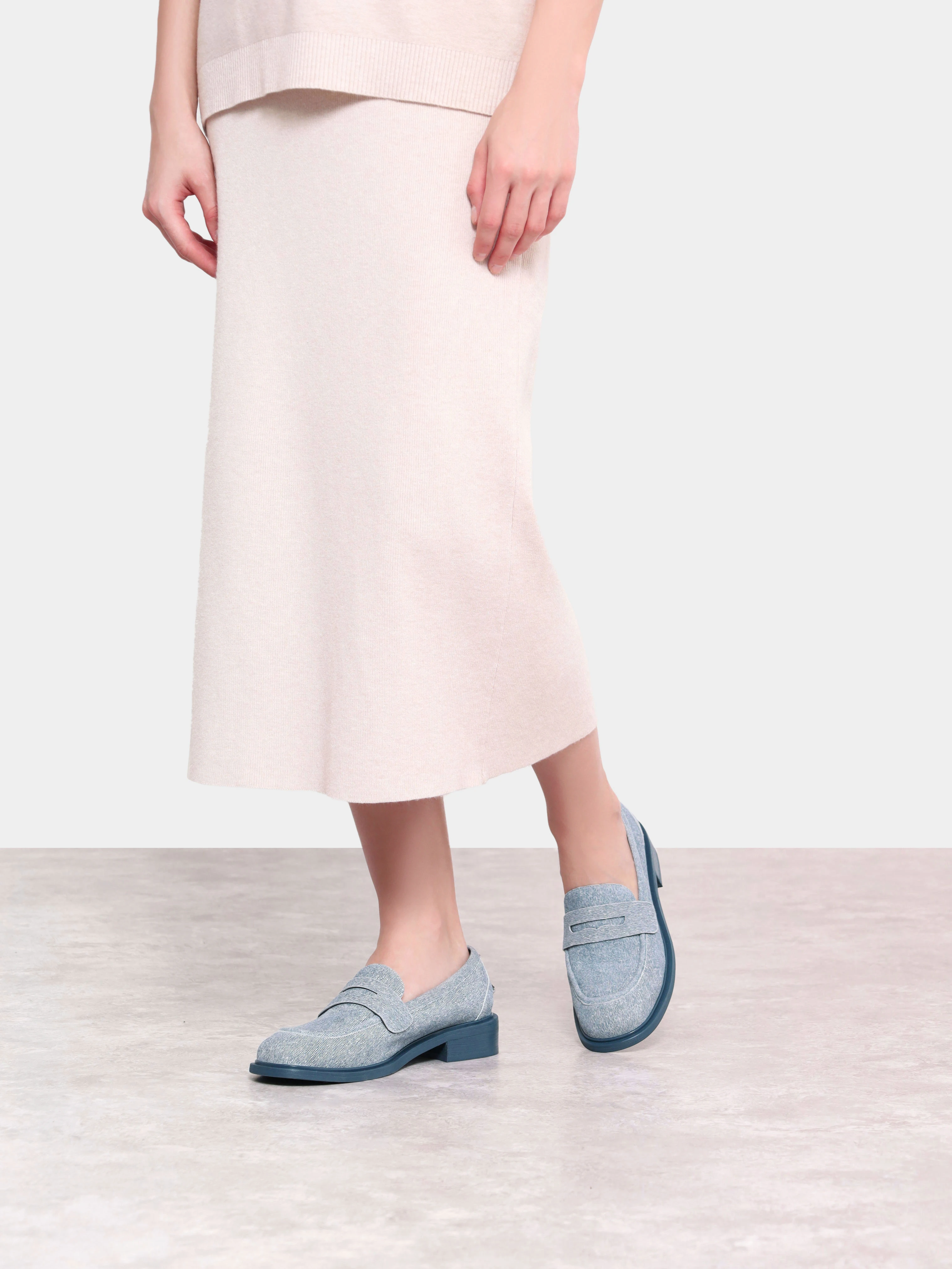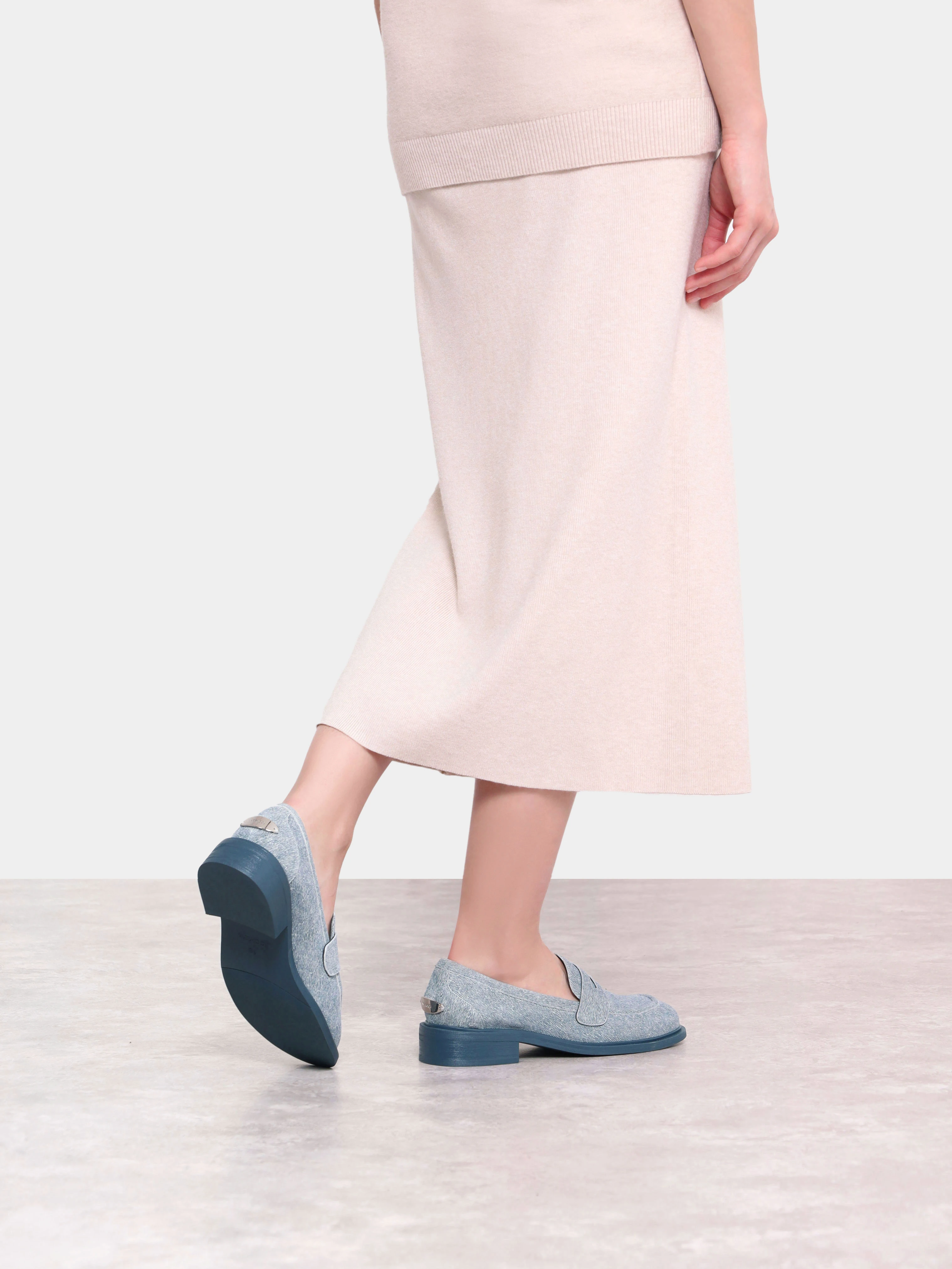 Лоферы женские всесезонные, цвет голубой, натуральный велюр