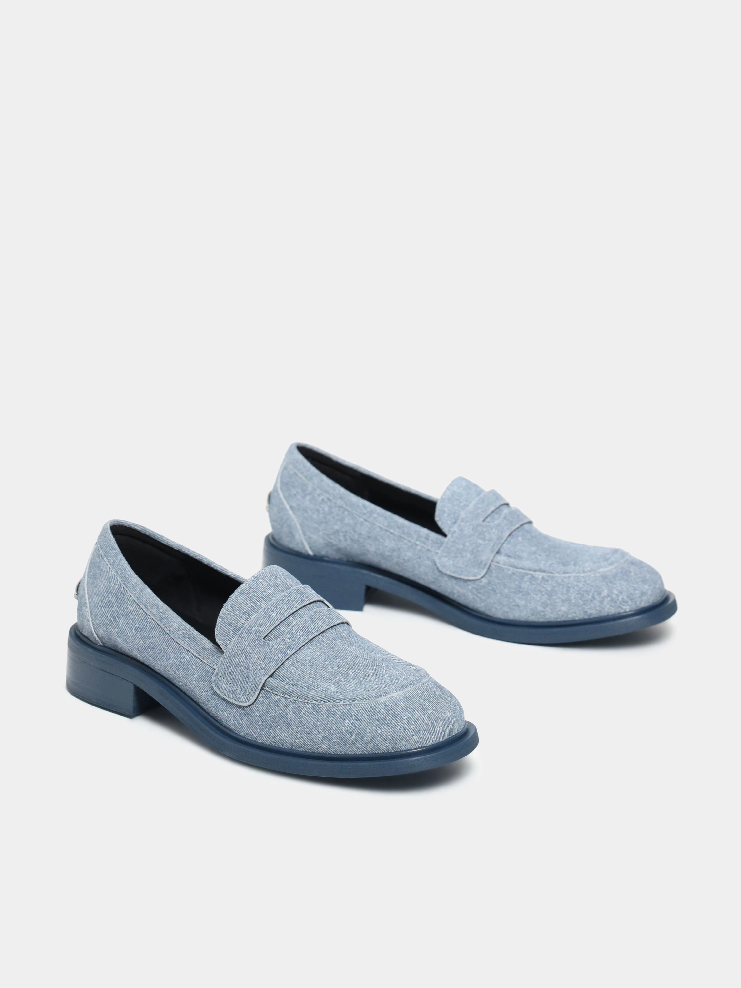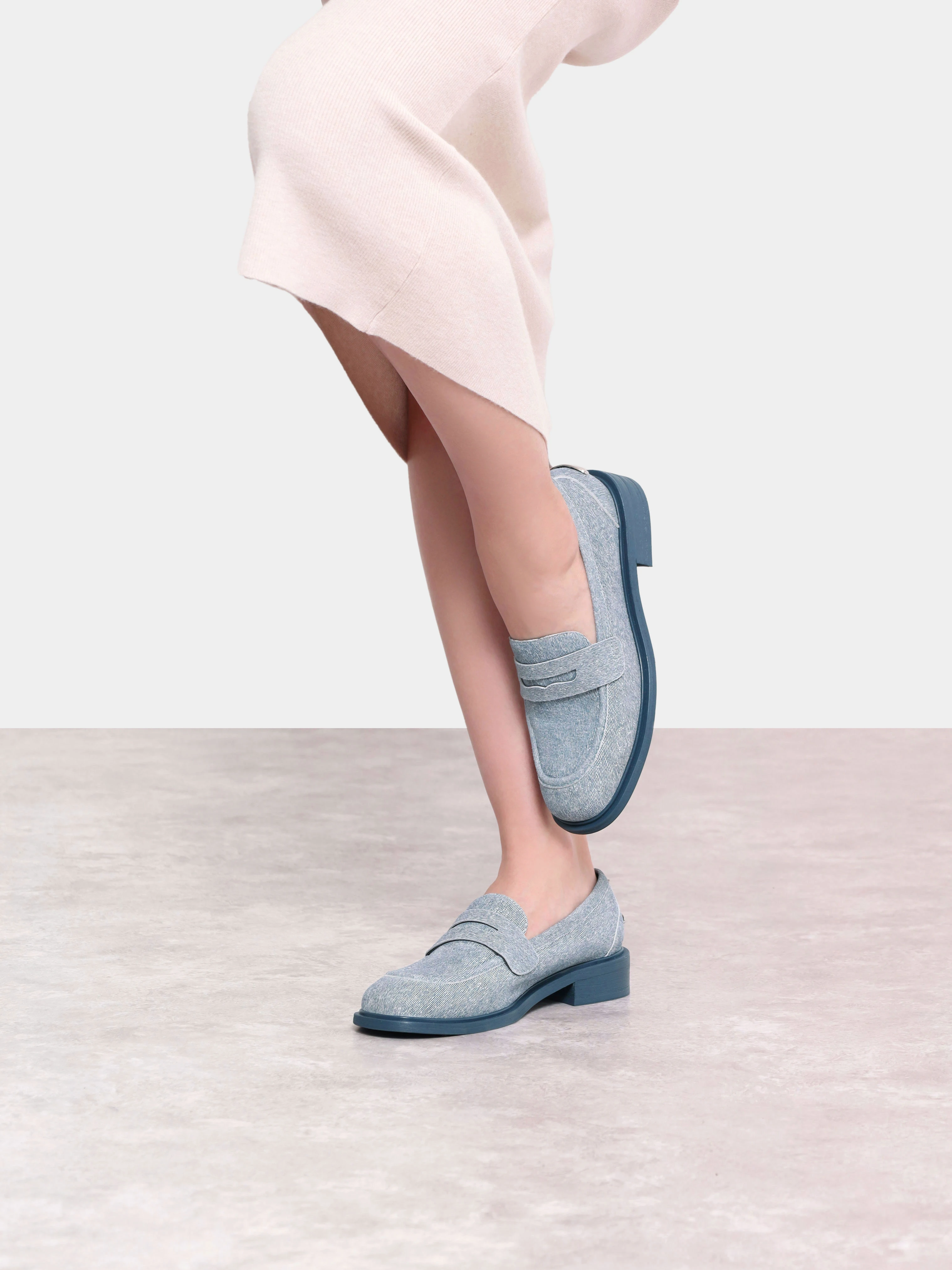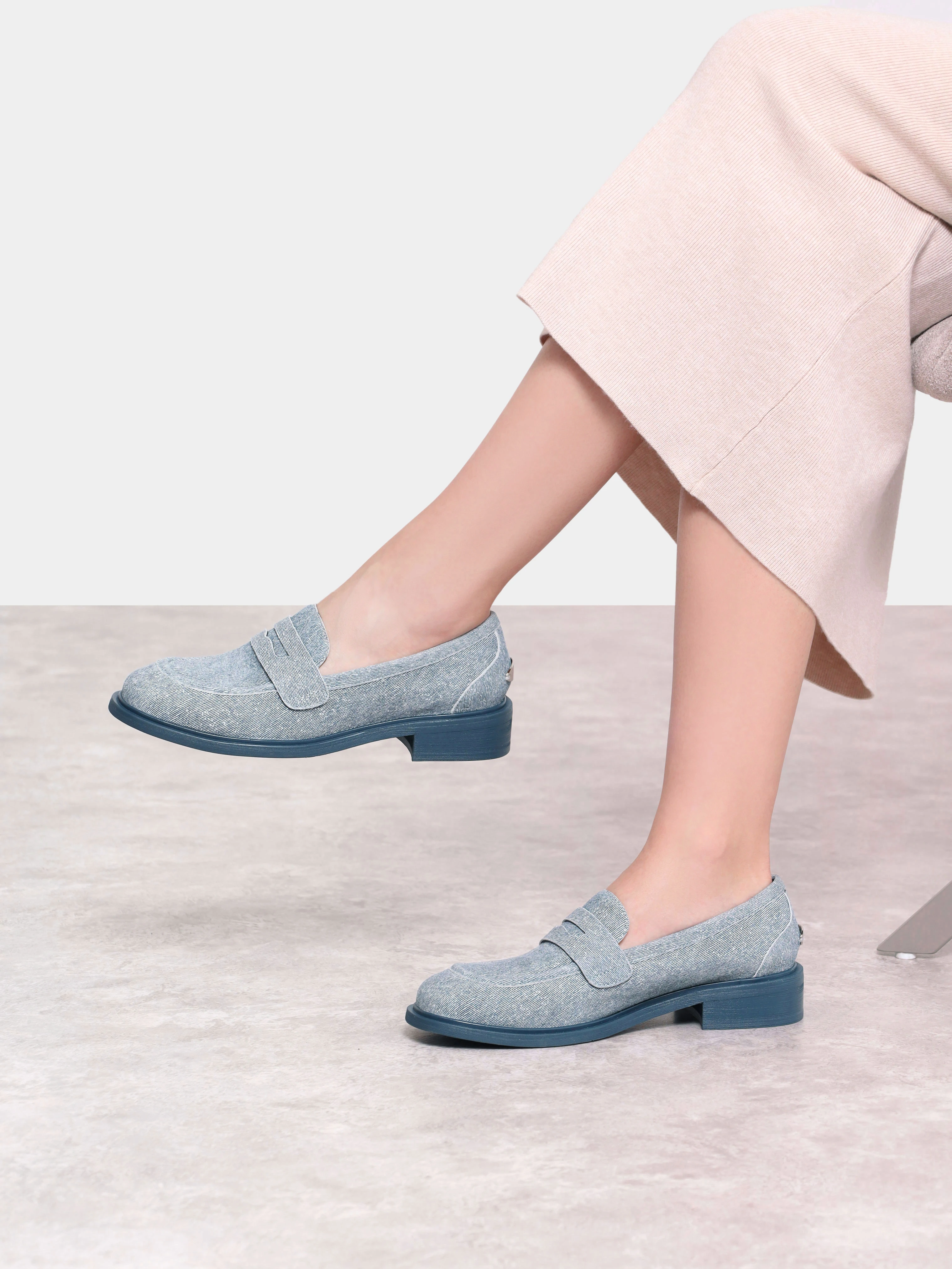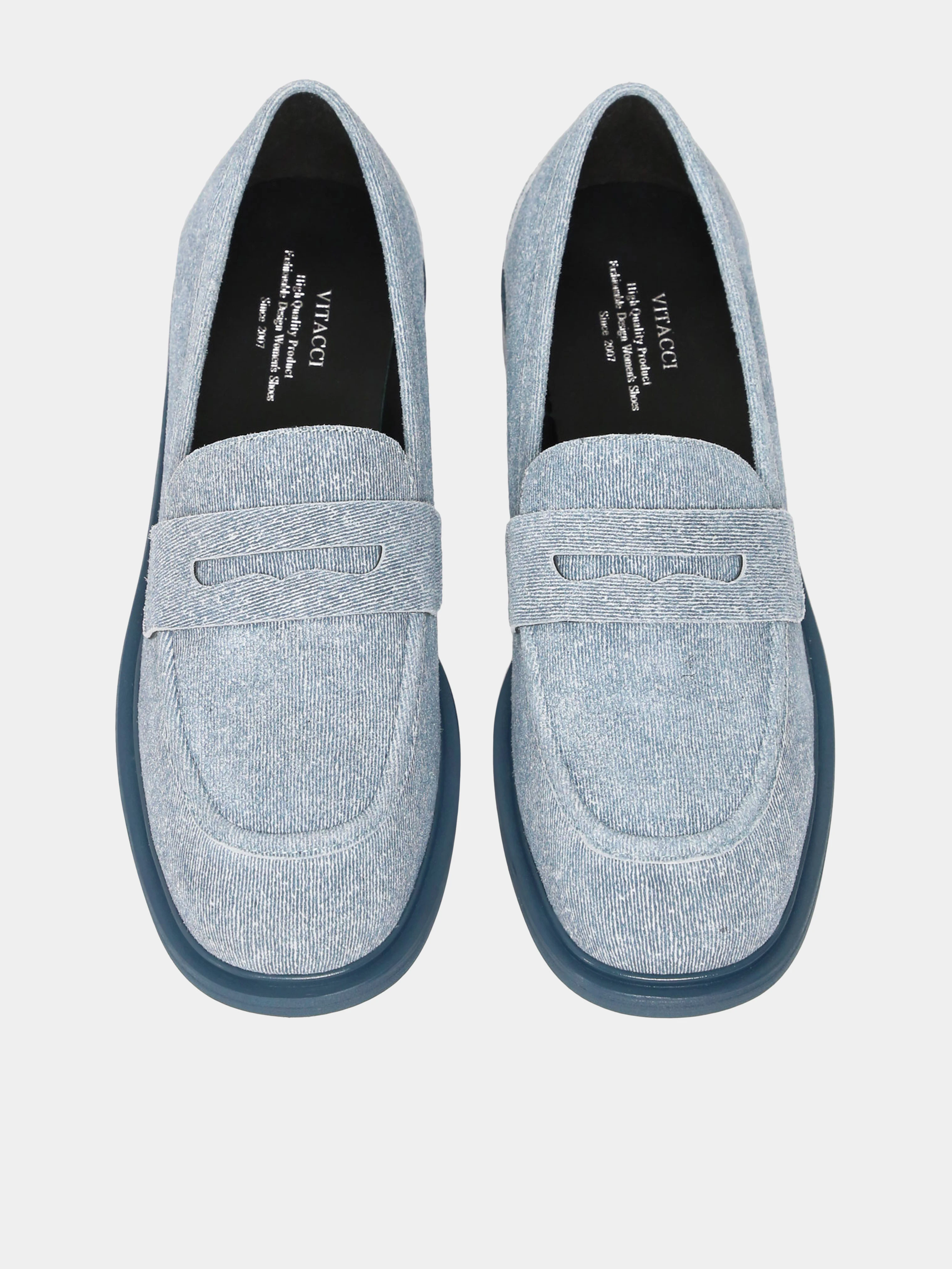 Лоферы женские всесезонные, цвет голубой, натуральный велюр