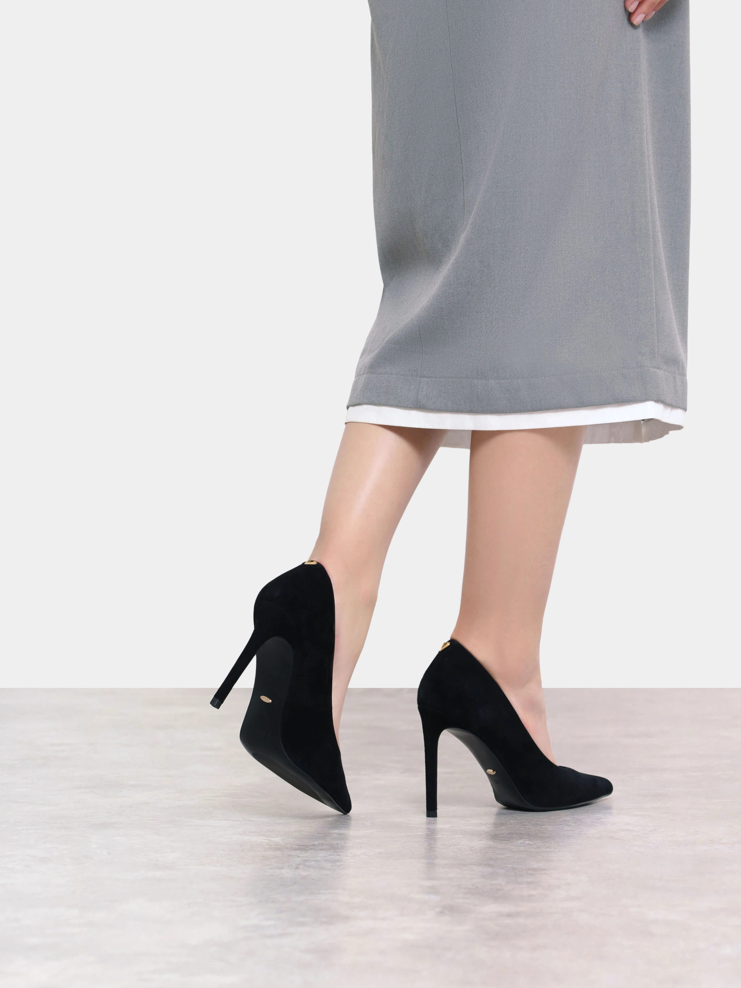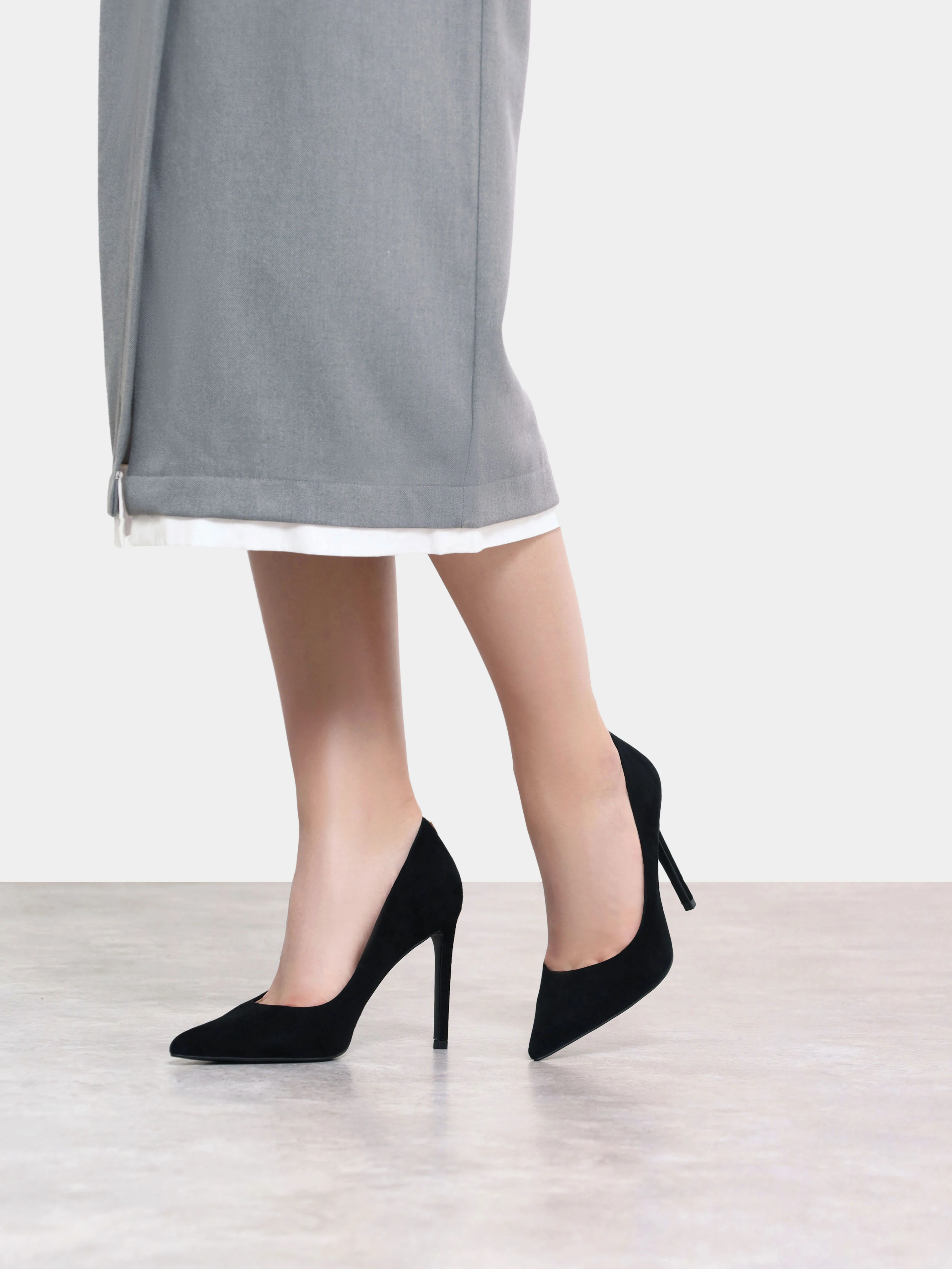 Туфли женские всесезонные, цвет черный, натуральный велюр