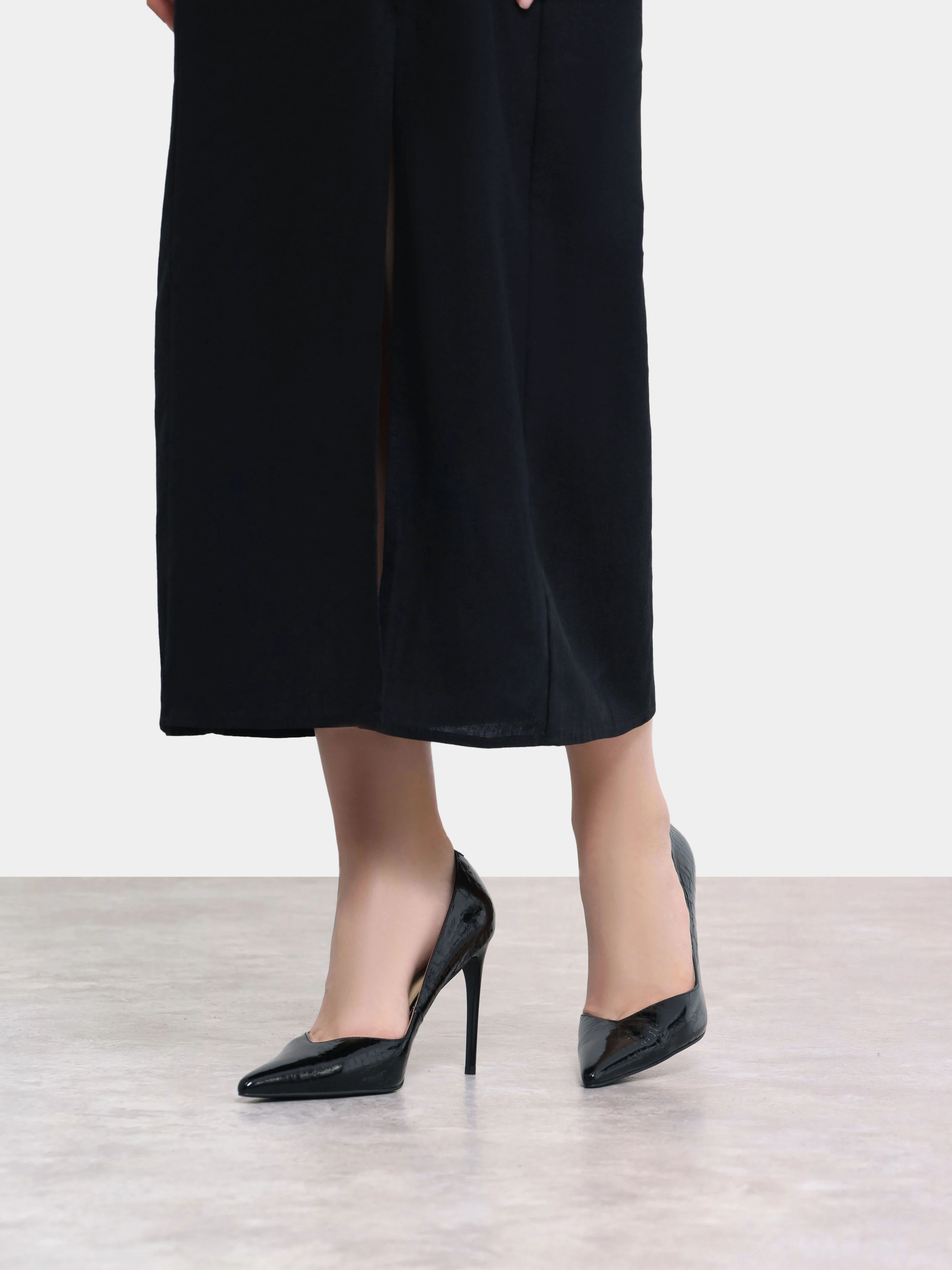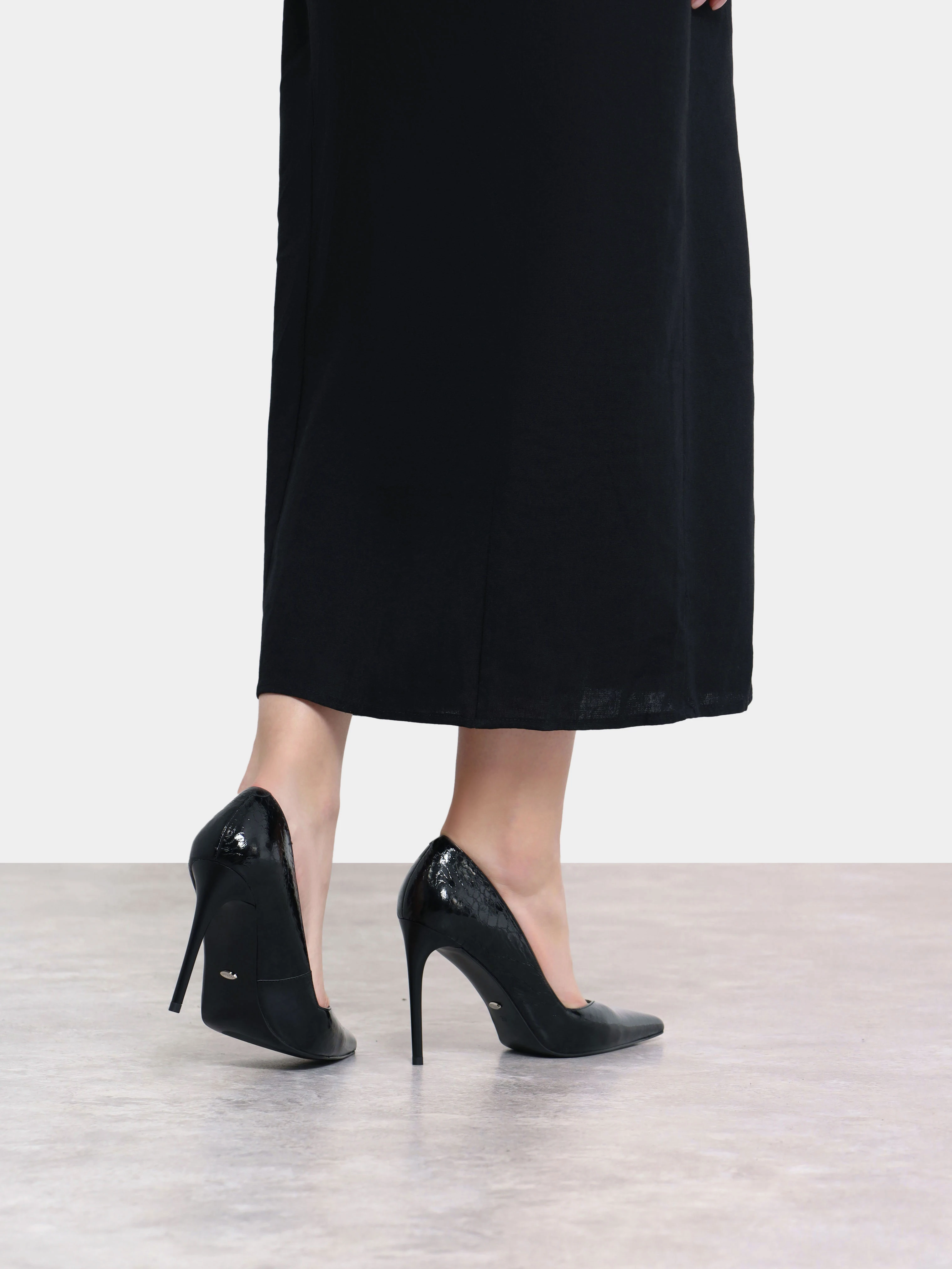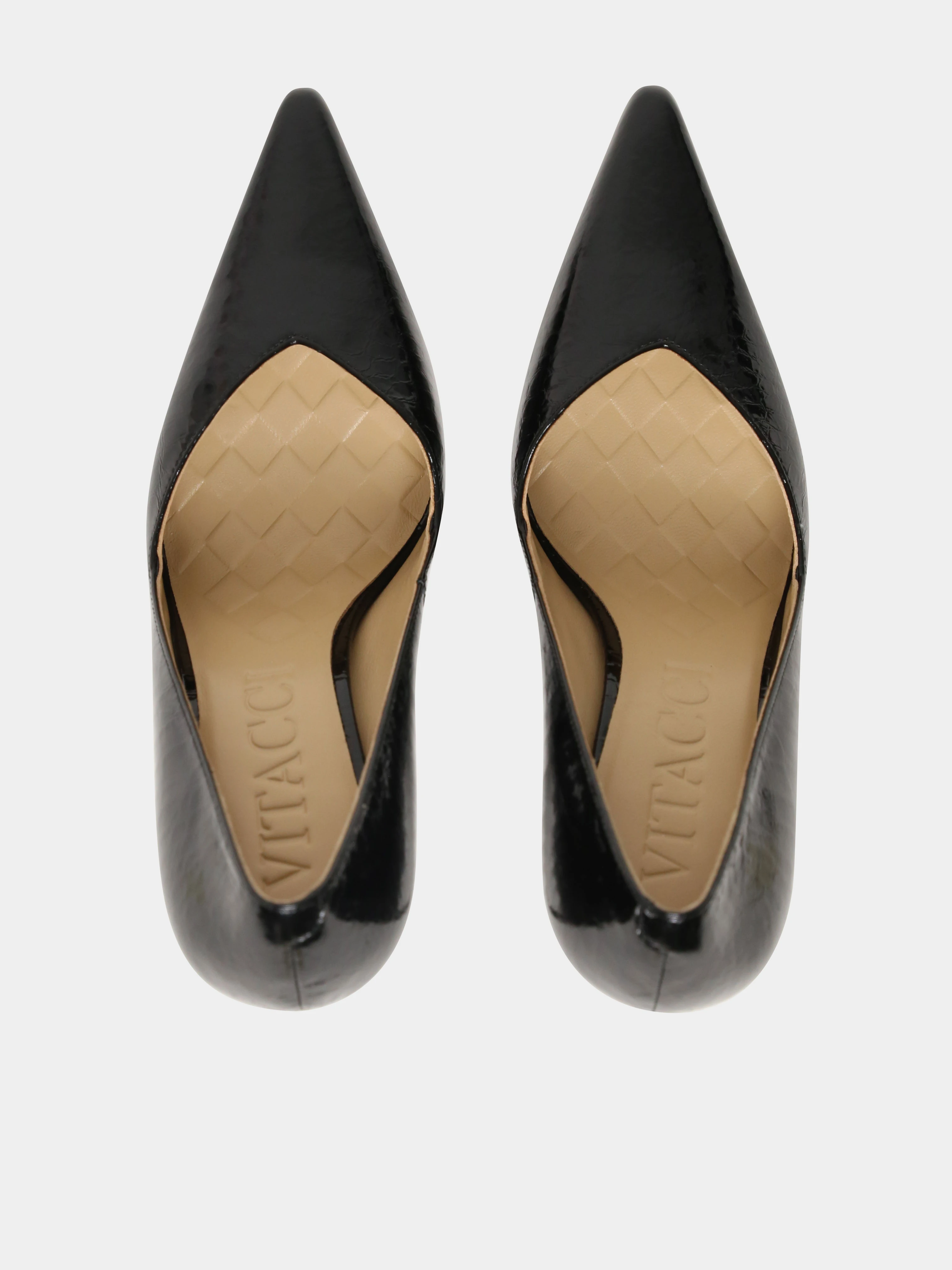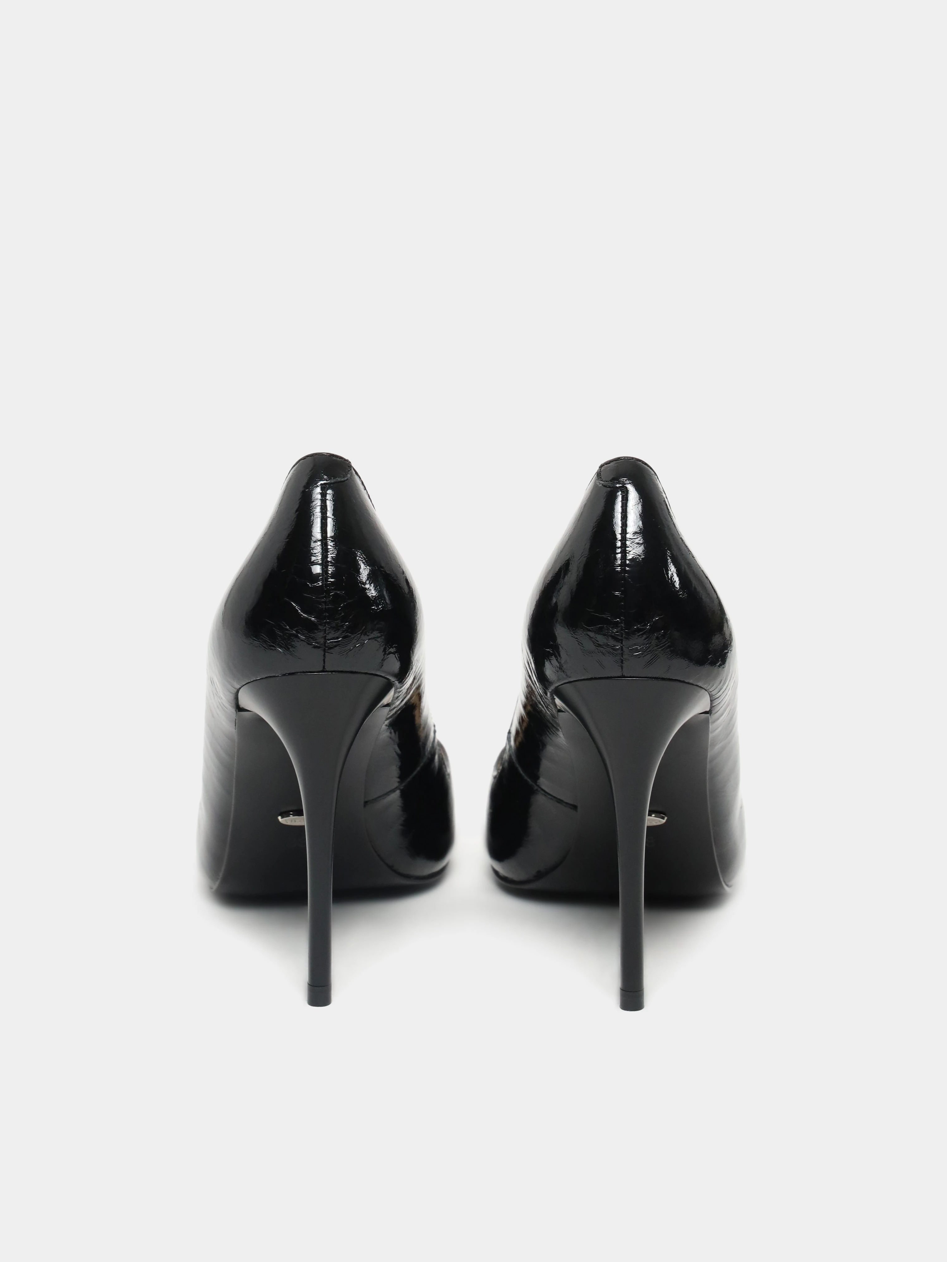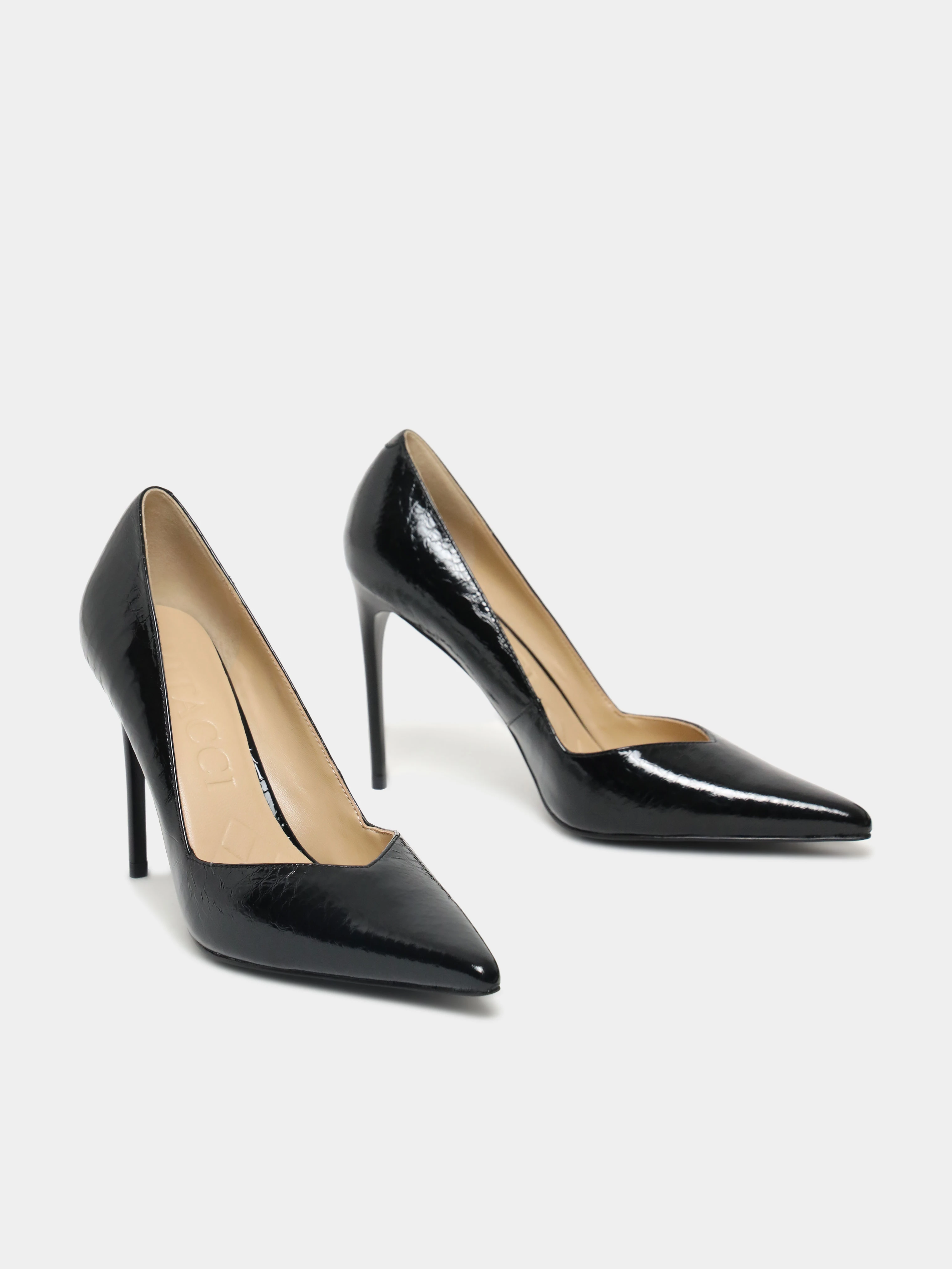 Туфли женские всесезонные, цвет черный, натуральная лаковая кожа