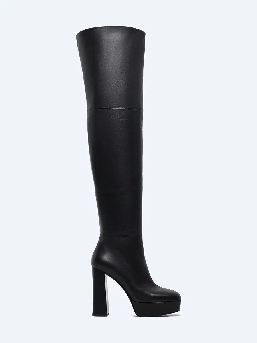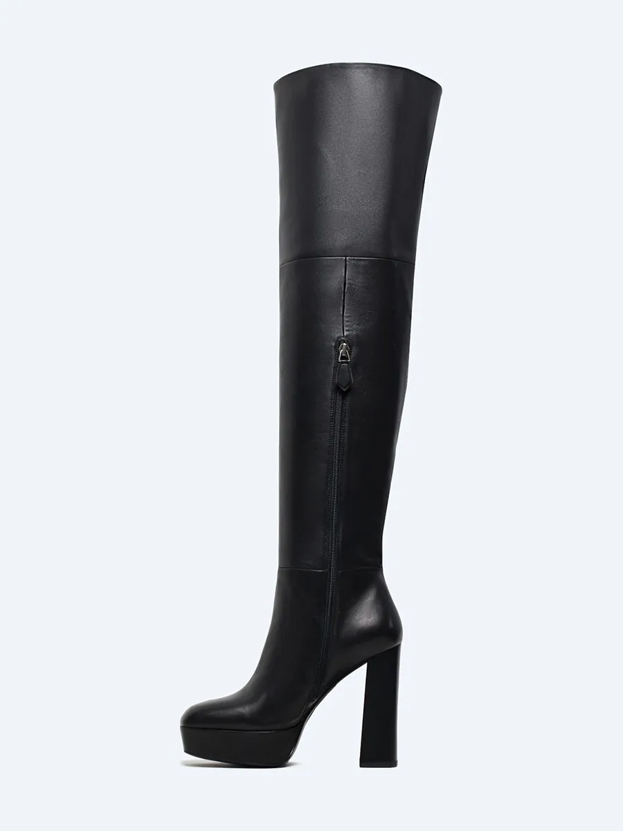 Ботфорты женские демисезонные, цвет черный, натуральная кожа
