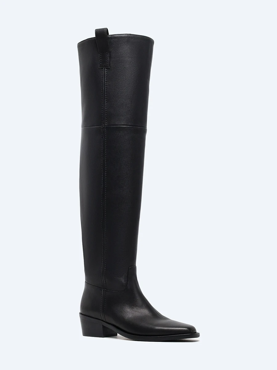 Ботфорты женские демисезонные, цвет черный, натуральная кожа