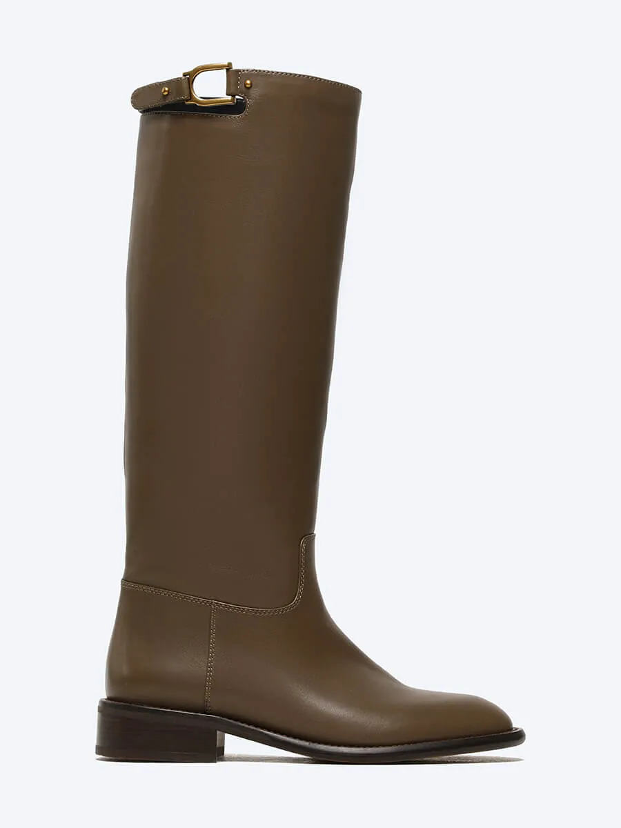 Сапоги женские демисезонные, цвет хаки, натуральная кожа