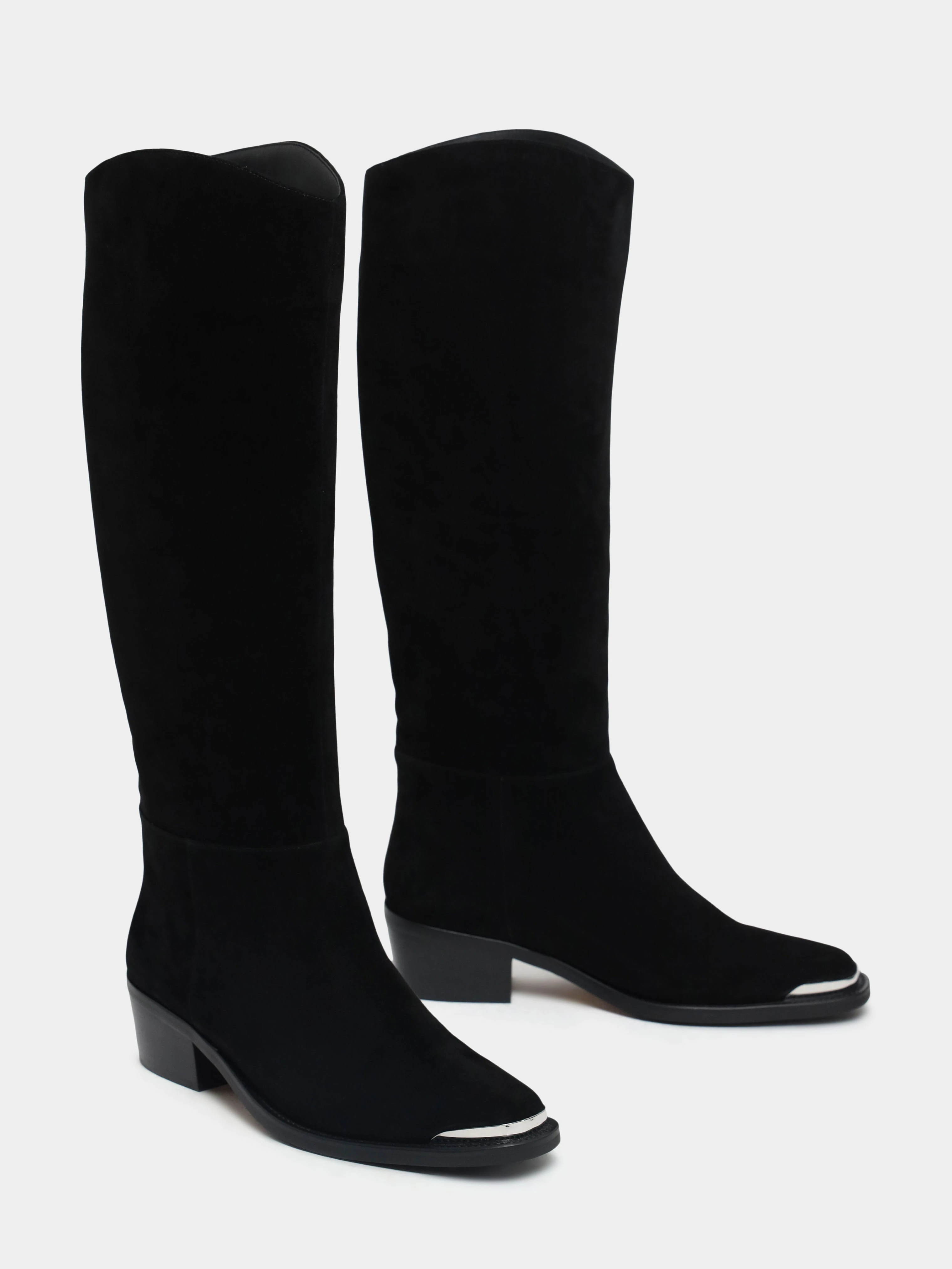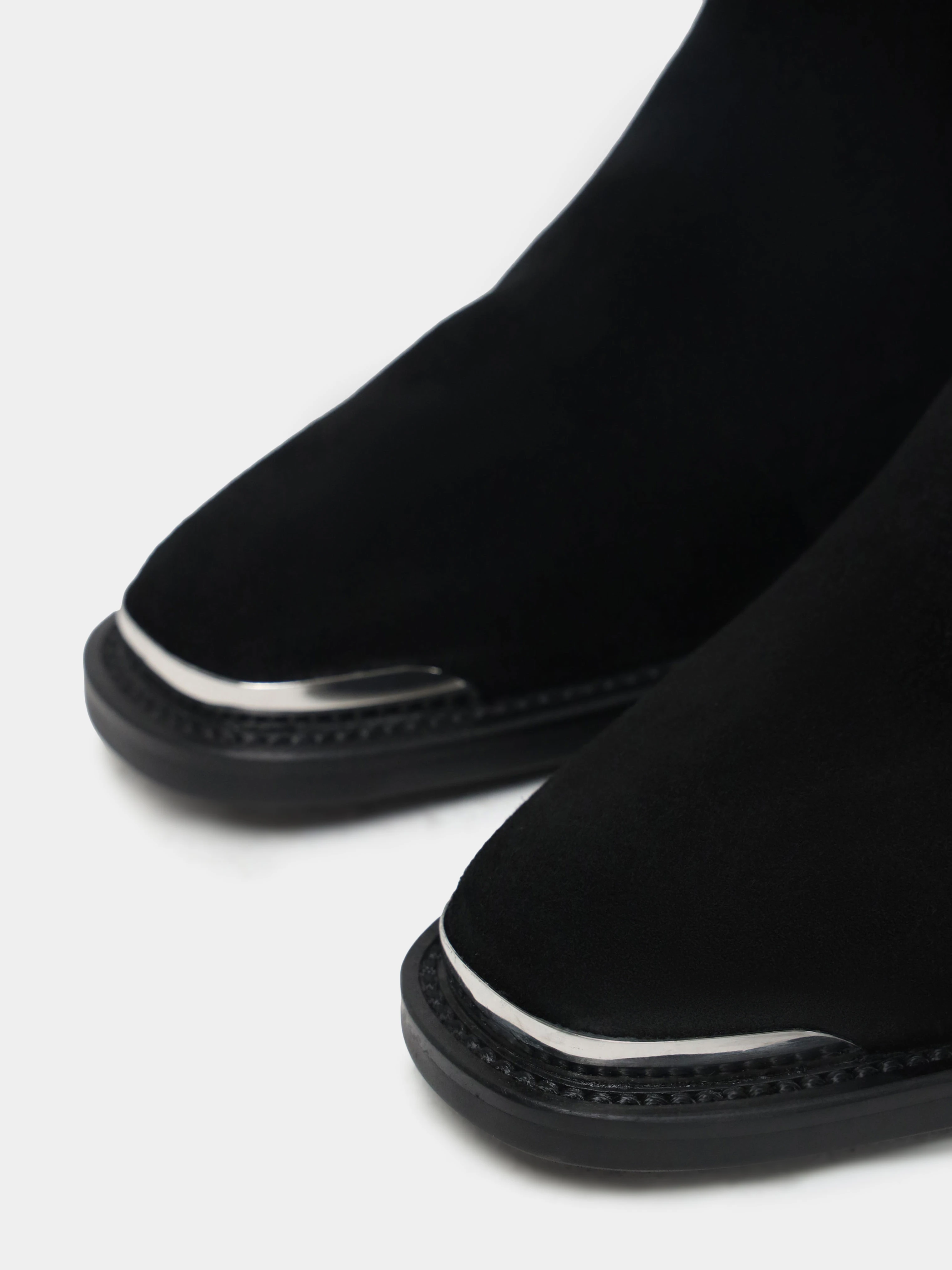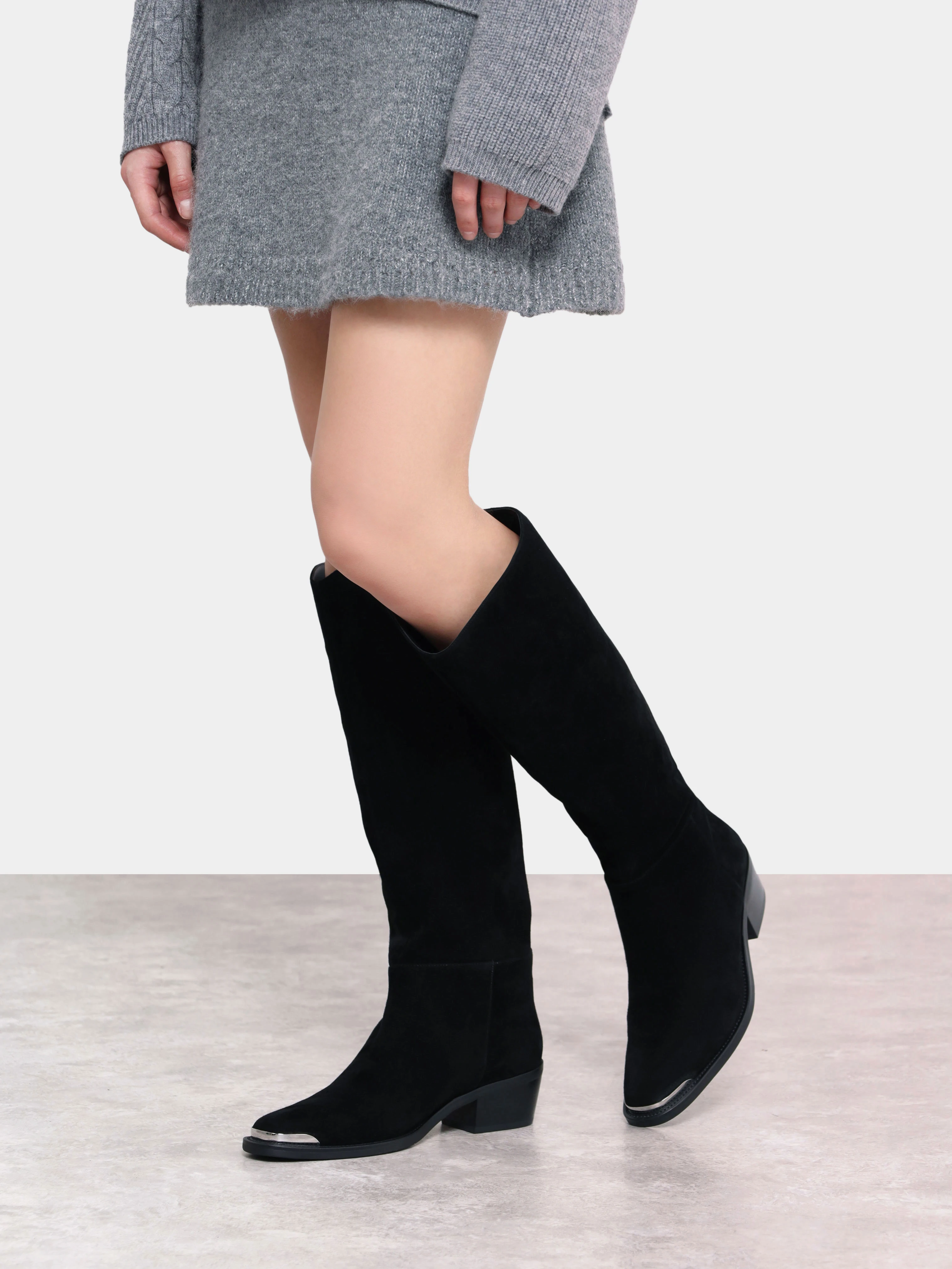 Сапоги женские демисезонные, цвет черный, натуральный велюр