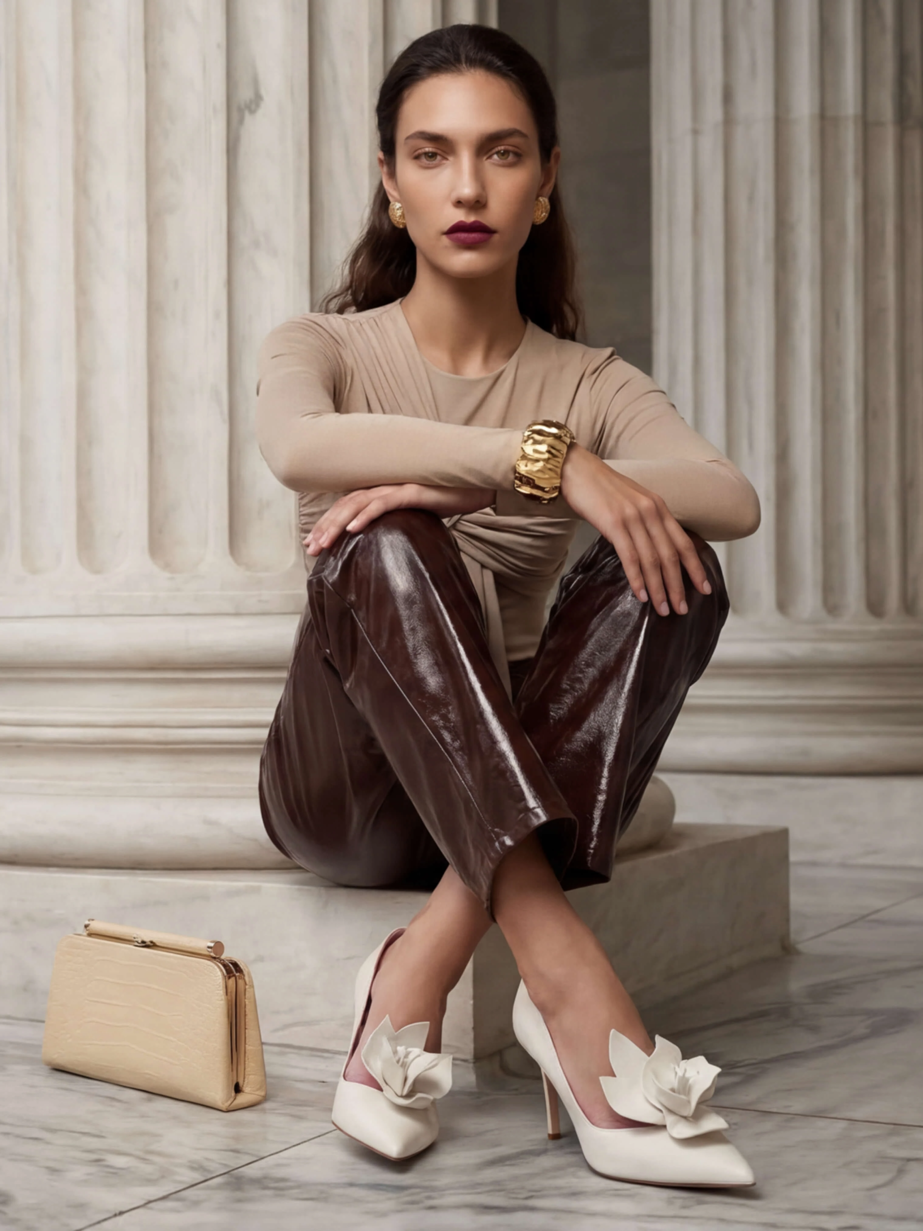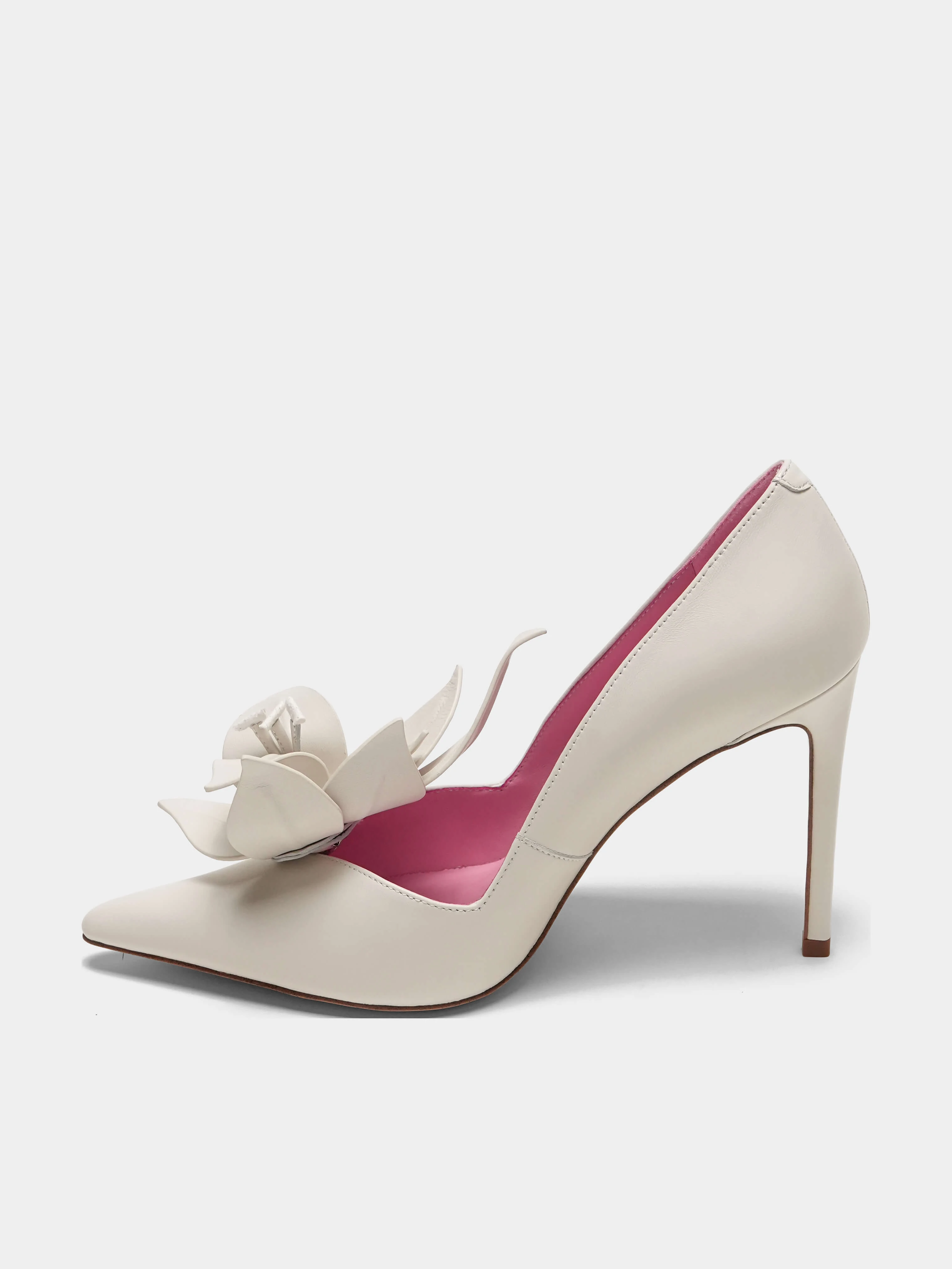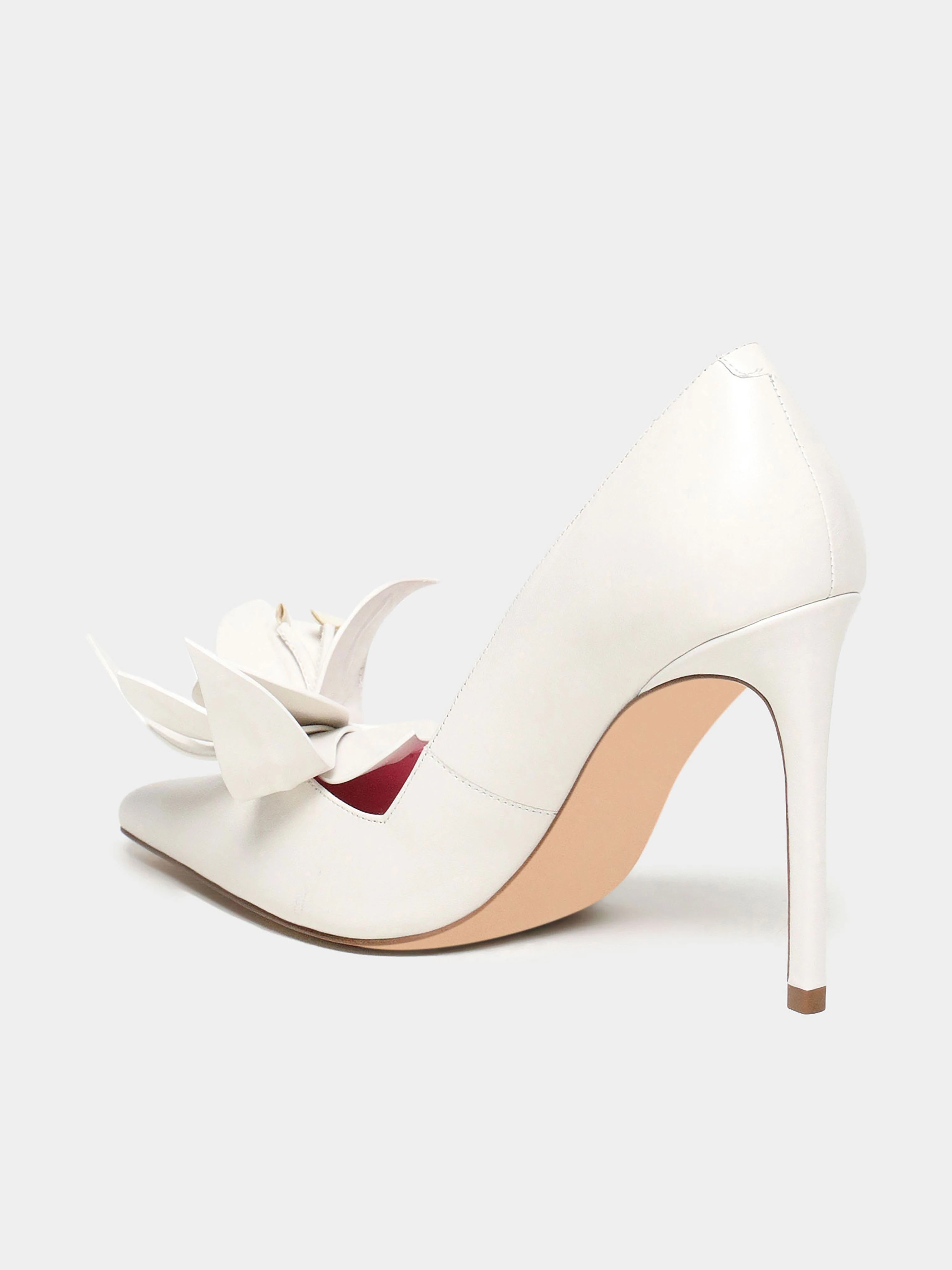 Женские туфли-лодочки из натуральной кожи. Выполнены с острым носком и каблуком-шпилькой. В комплекте прилагаются две броши на клипсах, которыми можно декорировать обувь по желанию.