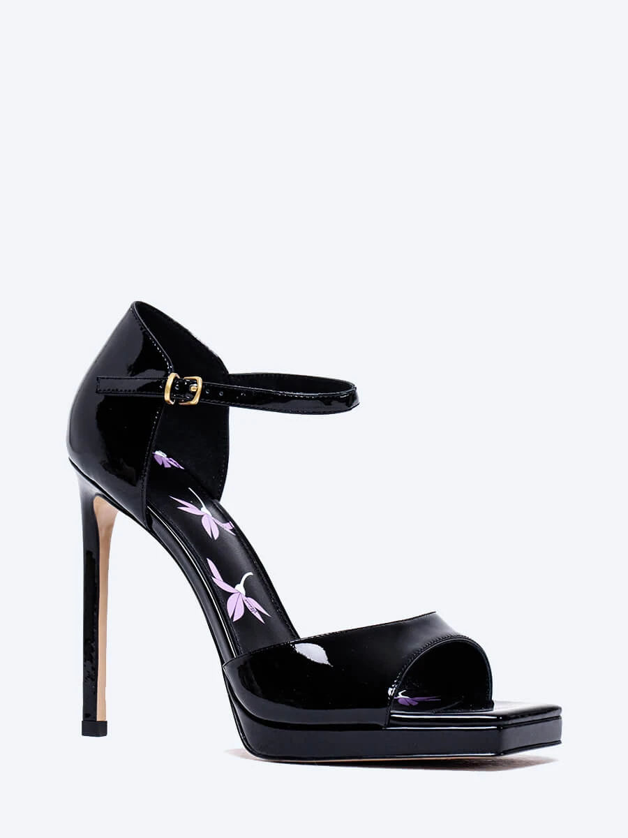 Босоножки женские летние, цвет черный, натуральная лаковая кожа