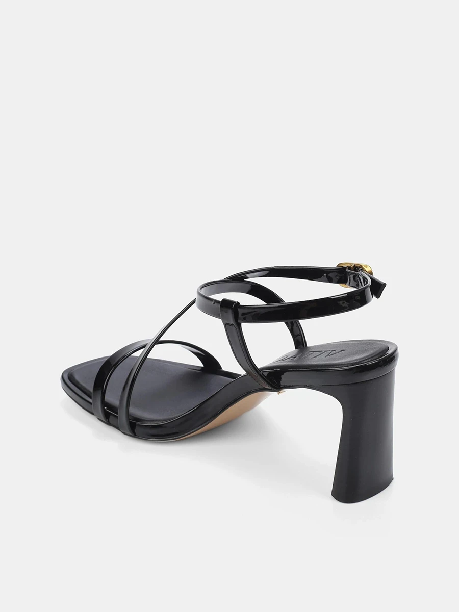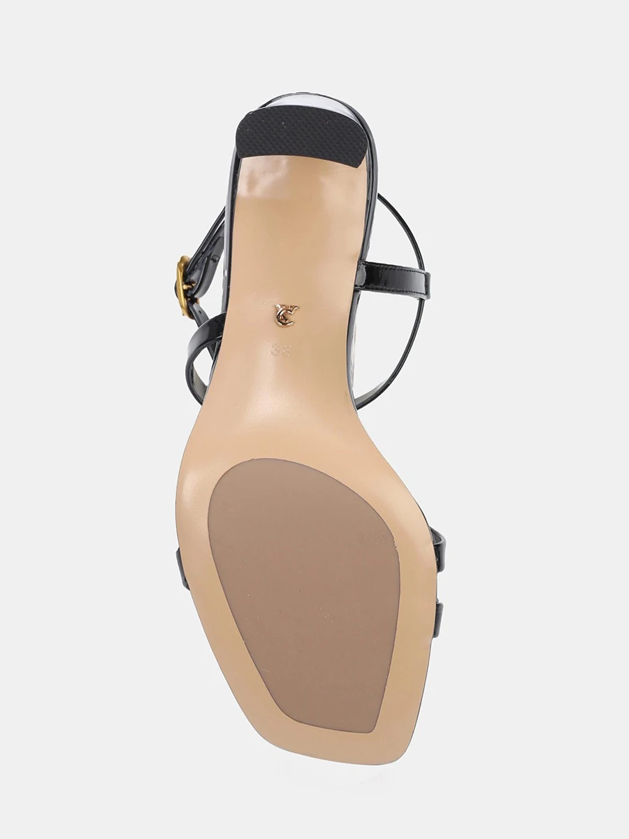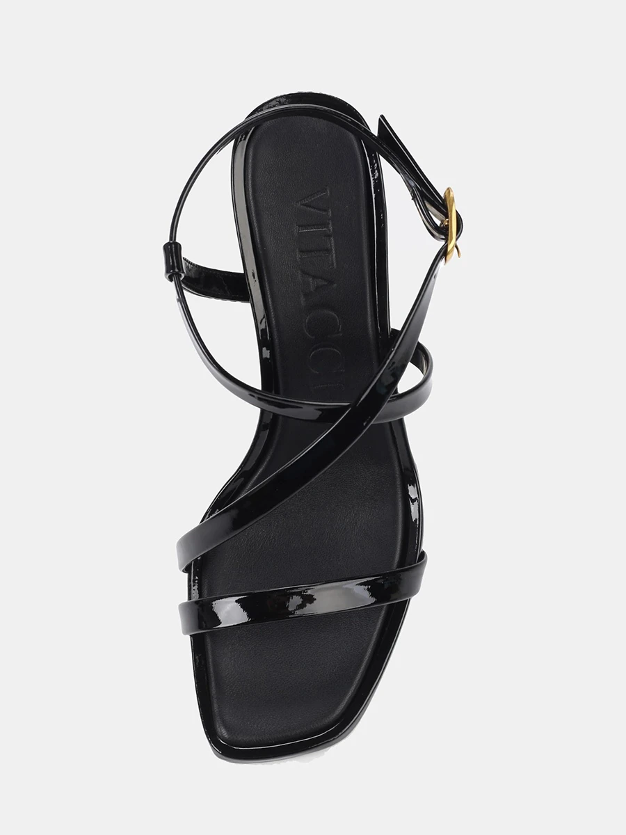 Босоножки женские летние, цвет черный, натуральная лаковая кожа