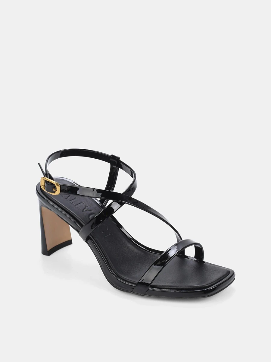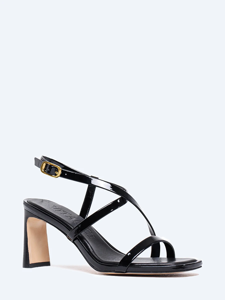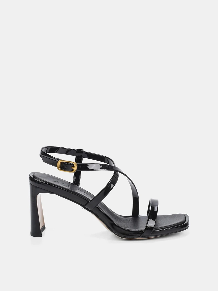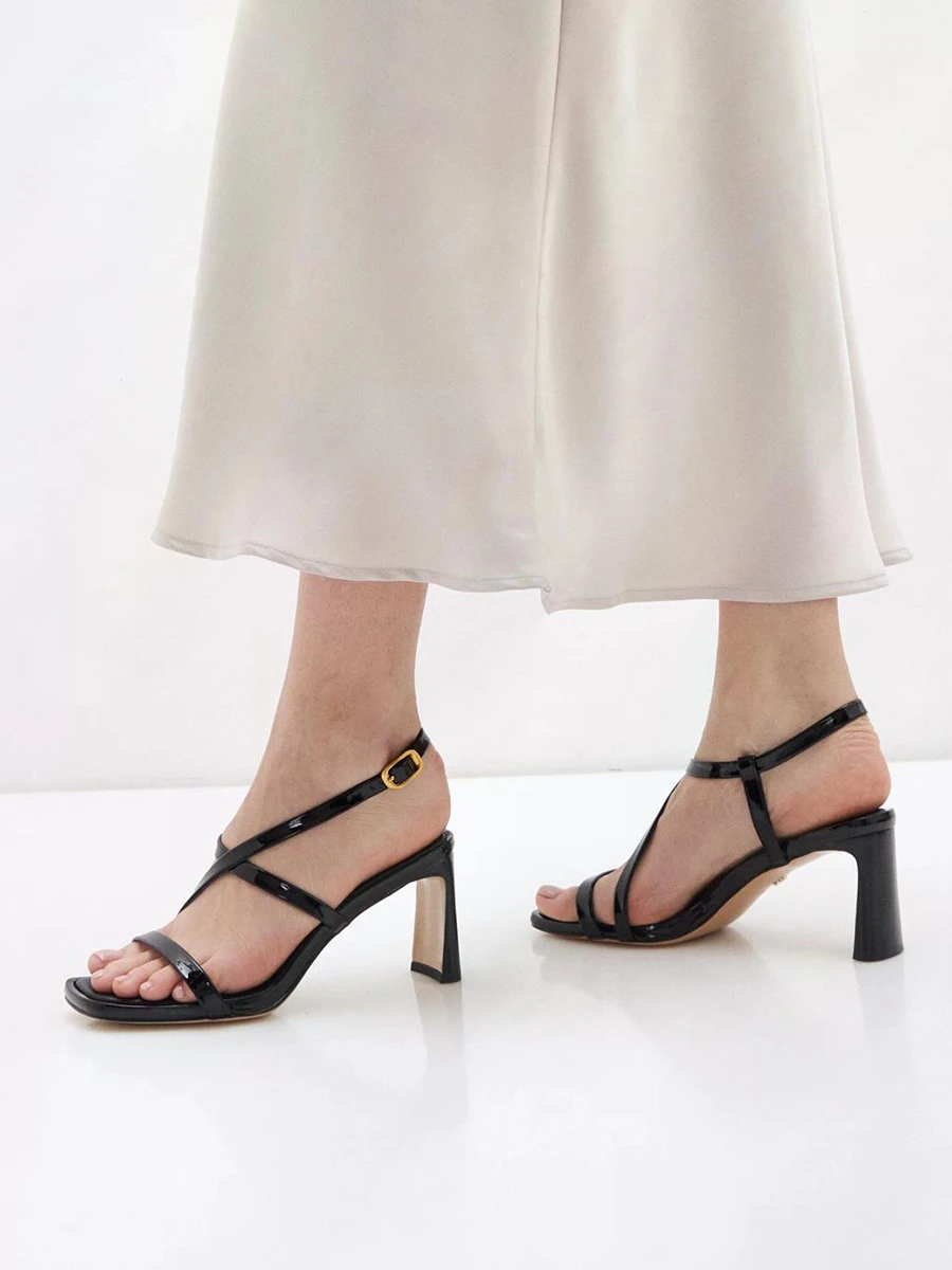 Босоножки женские летние, цвет черный, натуральная лаковая кожа