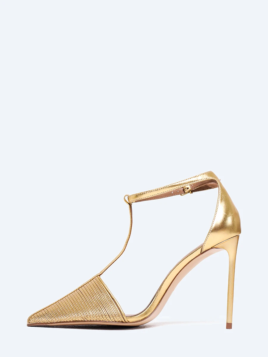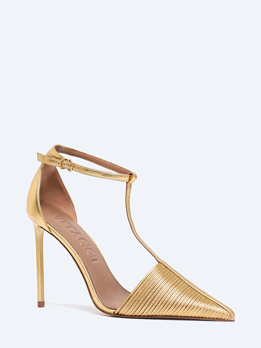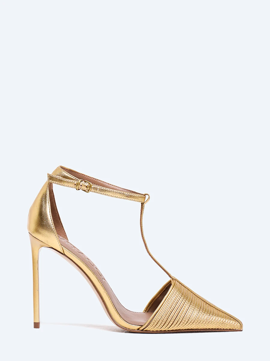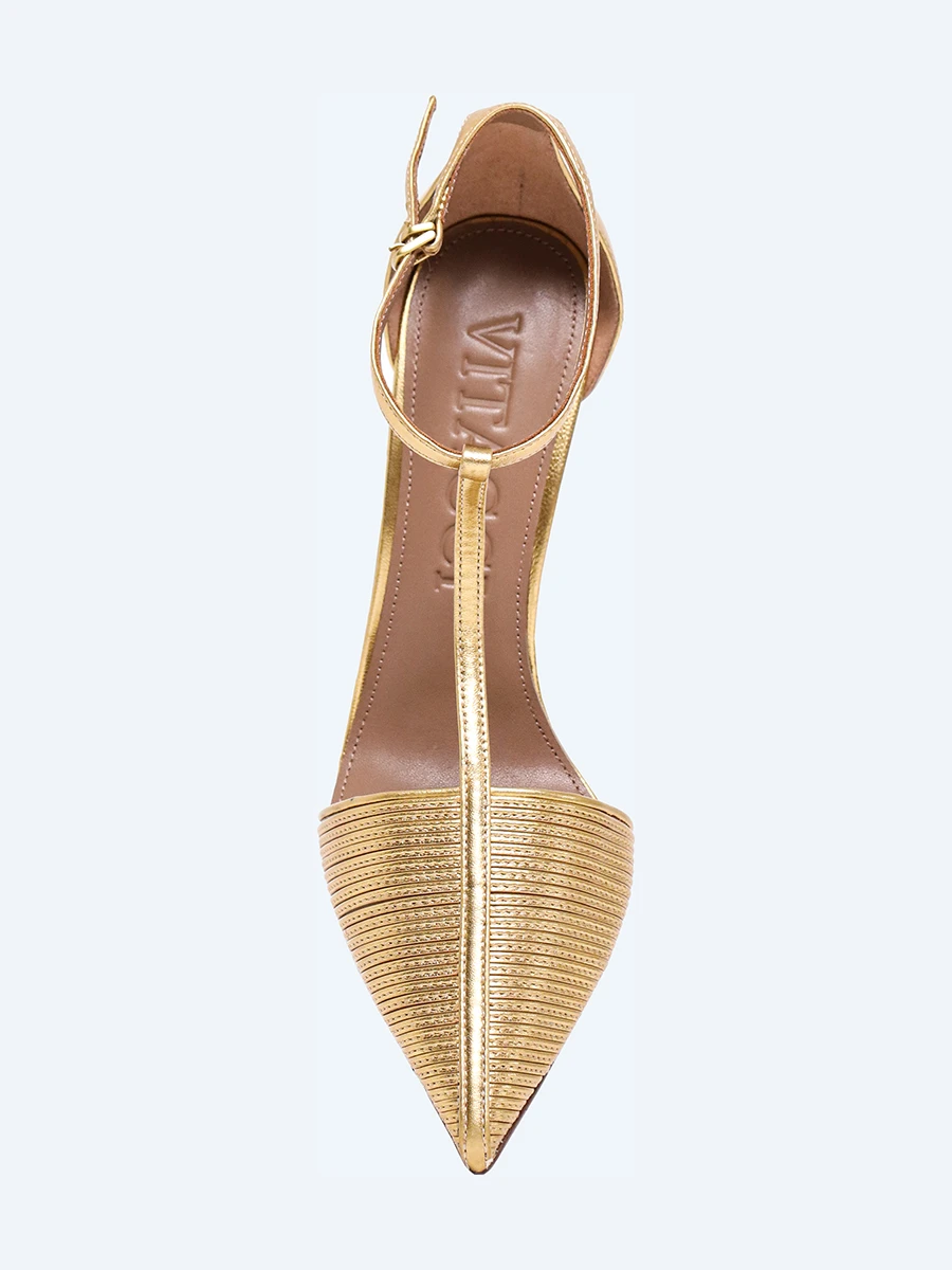 Туфли женские летние, цвет золотой, натуральная кожа