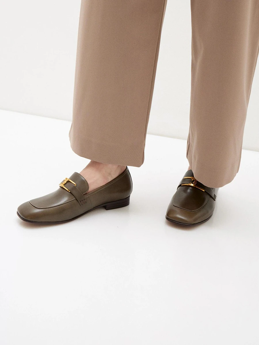 Лоферы женские всесезонные, цвет хаки, натуральная кожа