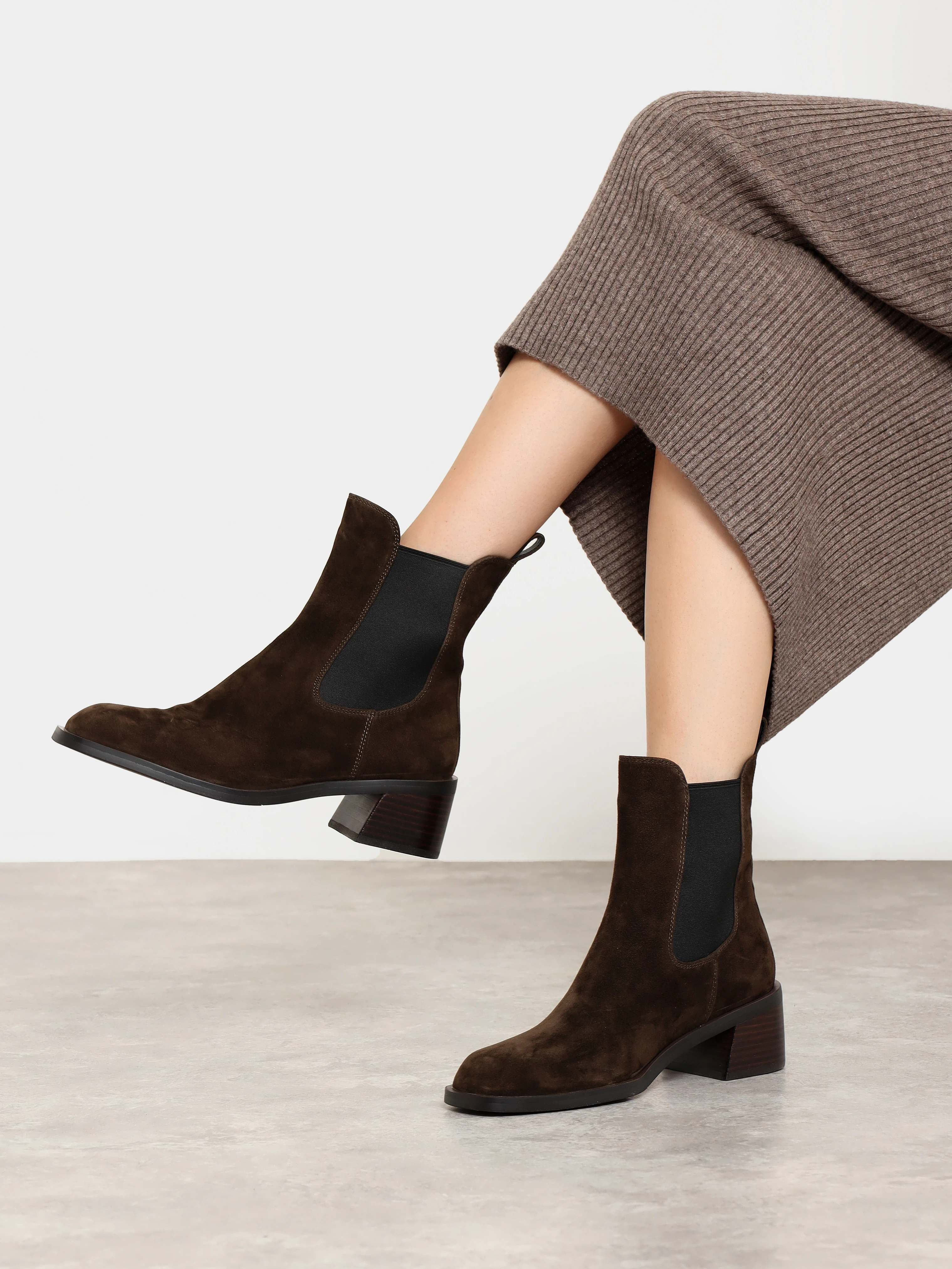 Полусапоги женские демисезонные, цвет коричневый, натуральный велюр