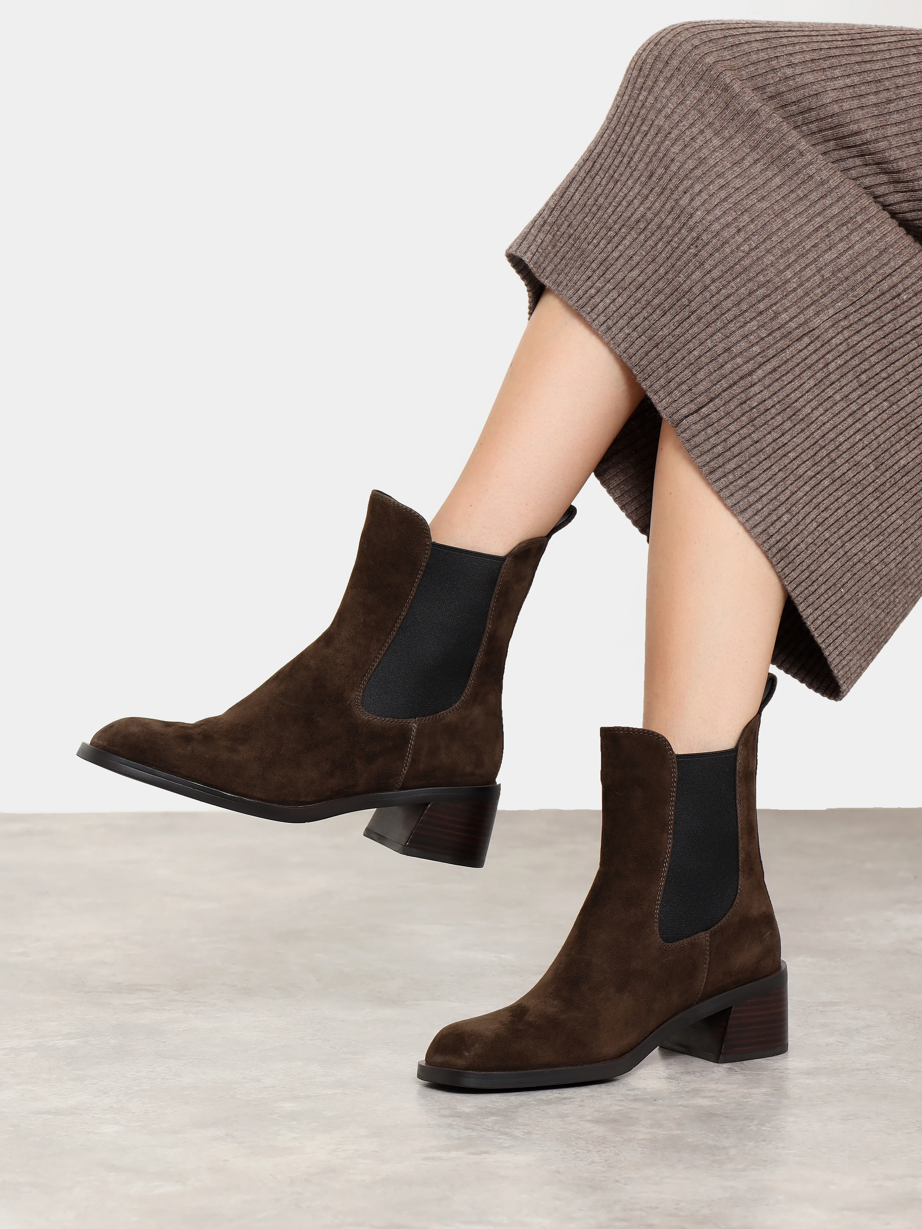 Полусапоги женские демисезонные, цвет коричневый, натуральный велюр