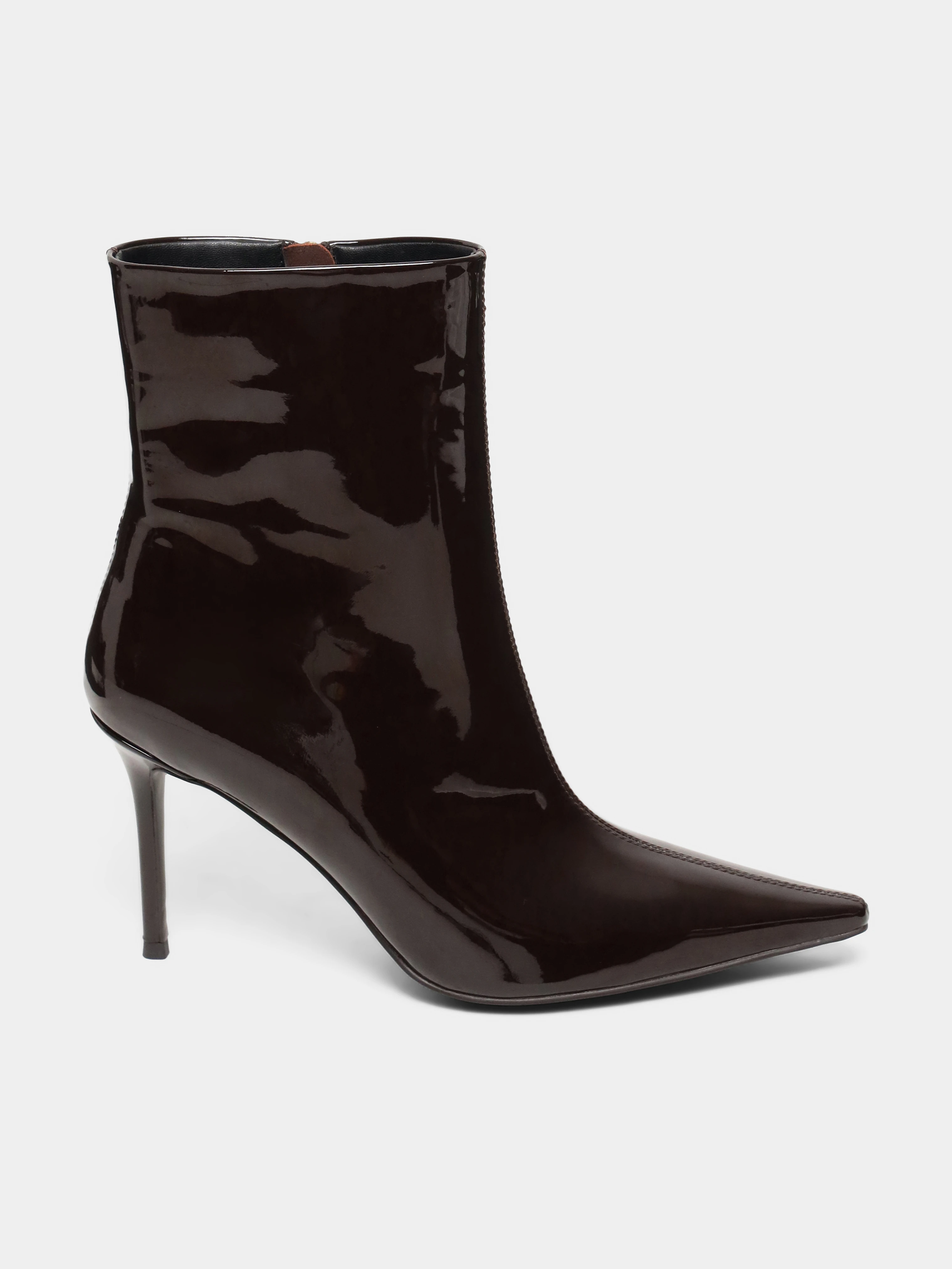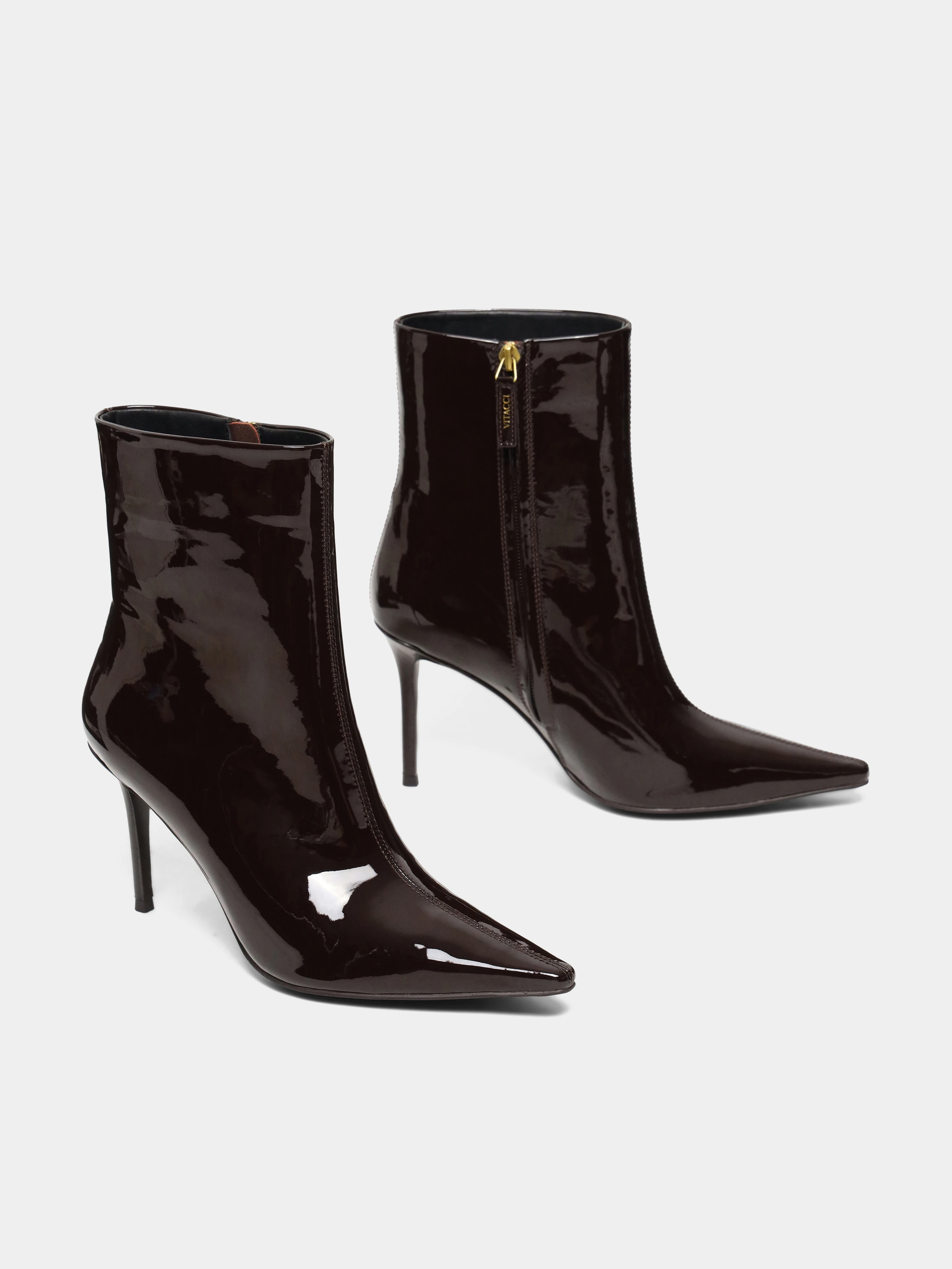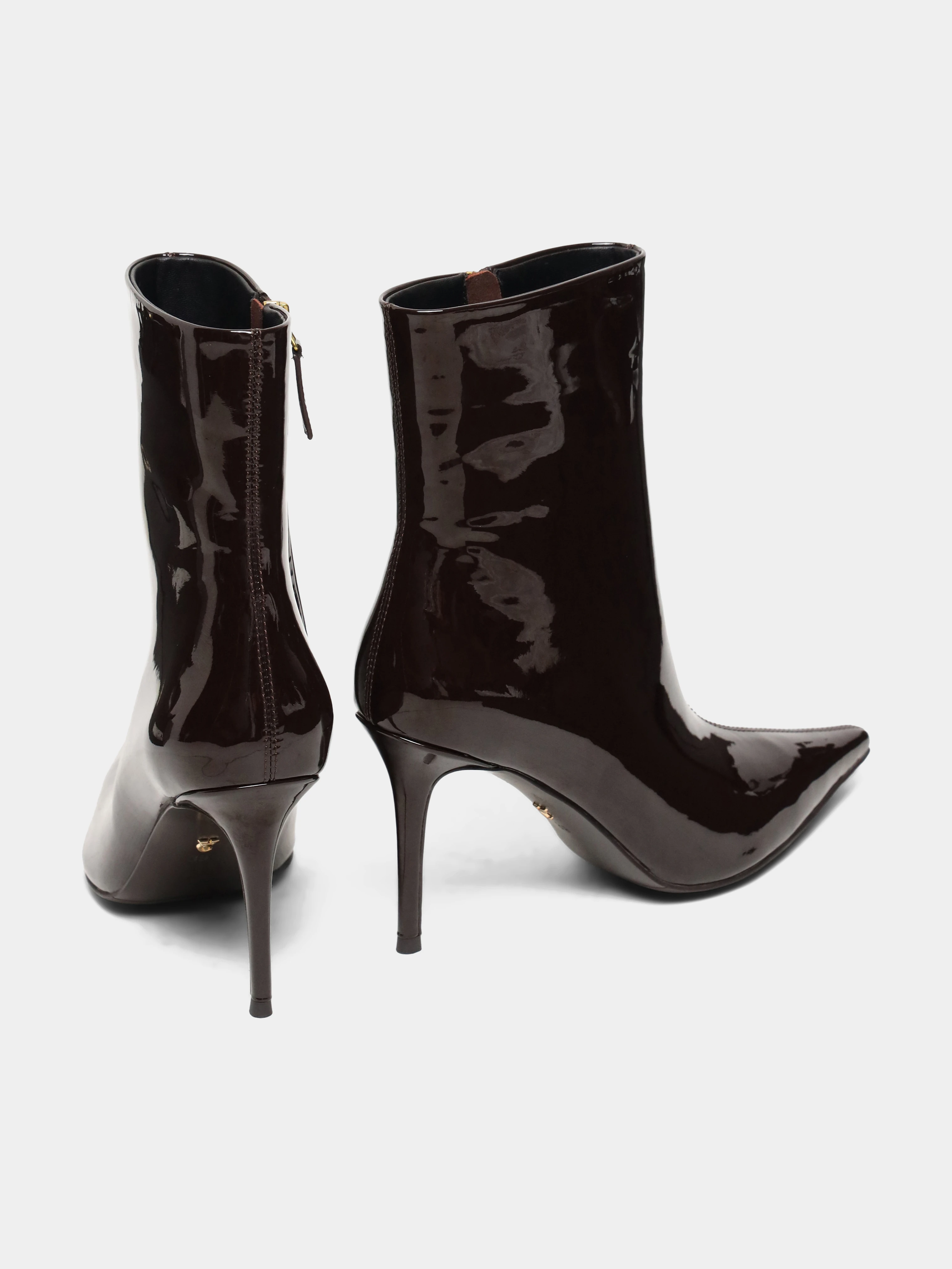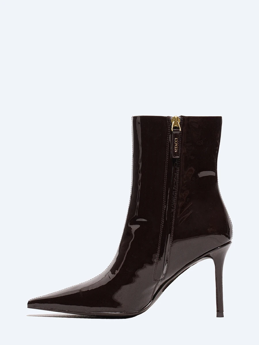 Полусапоги женские всесезонные, цвет коричневый, натуральная лаковая кожа