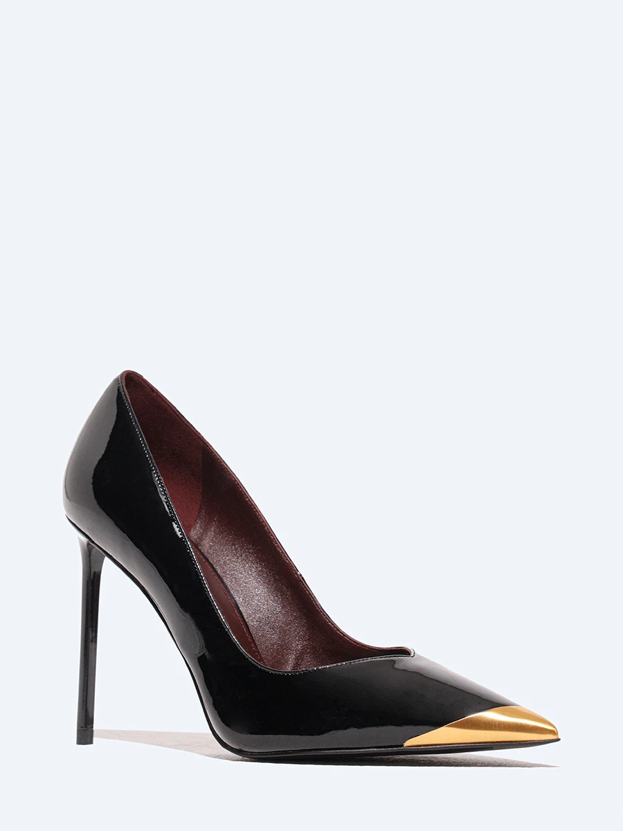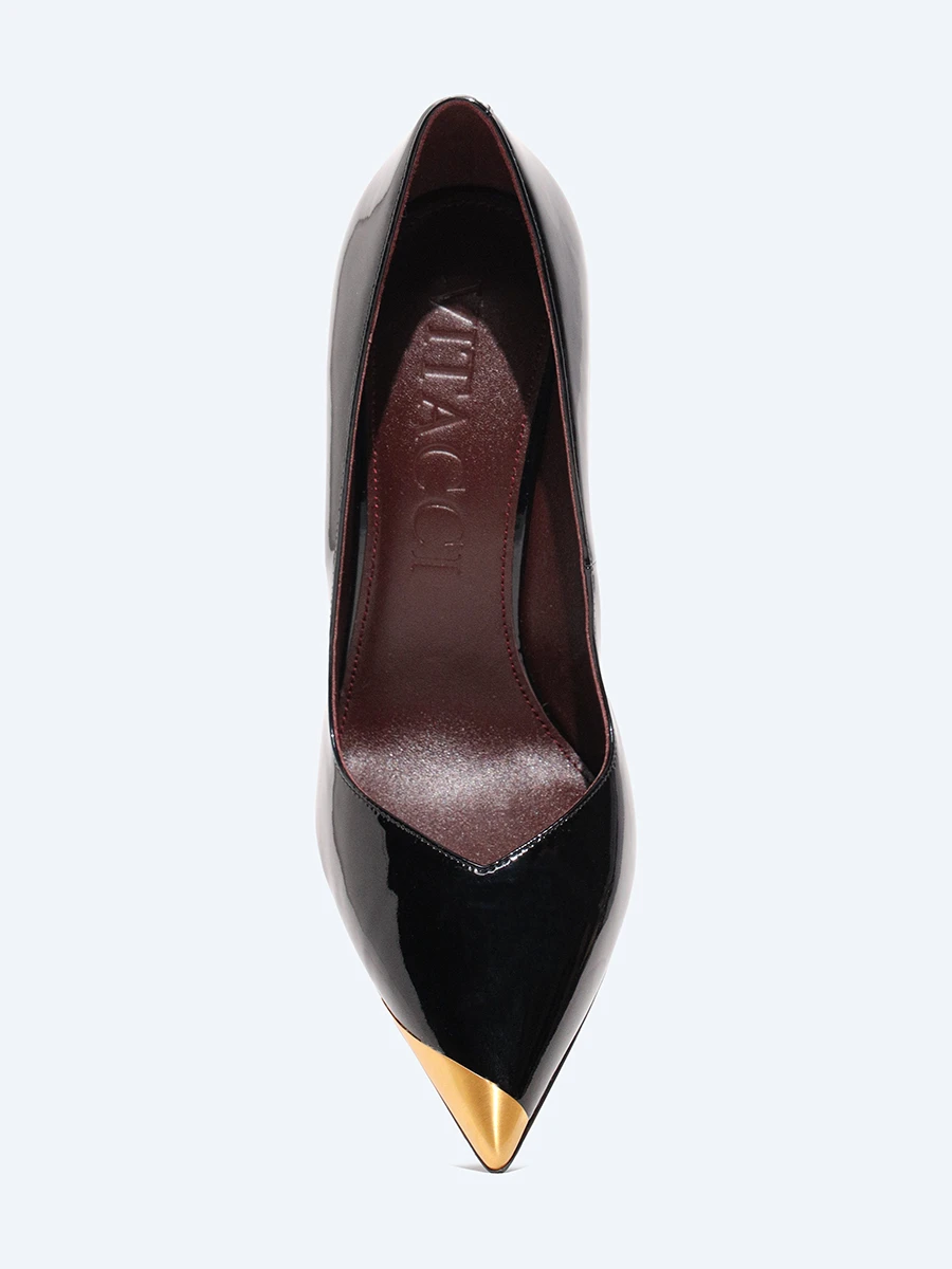 Туфли женские всесезонные, цвет черный, натуральная лаковая кожа