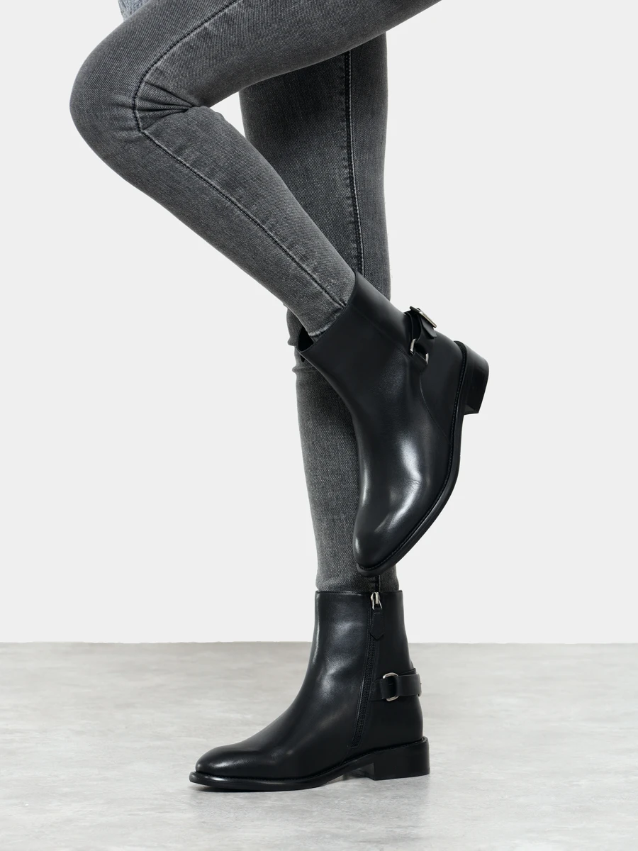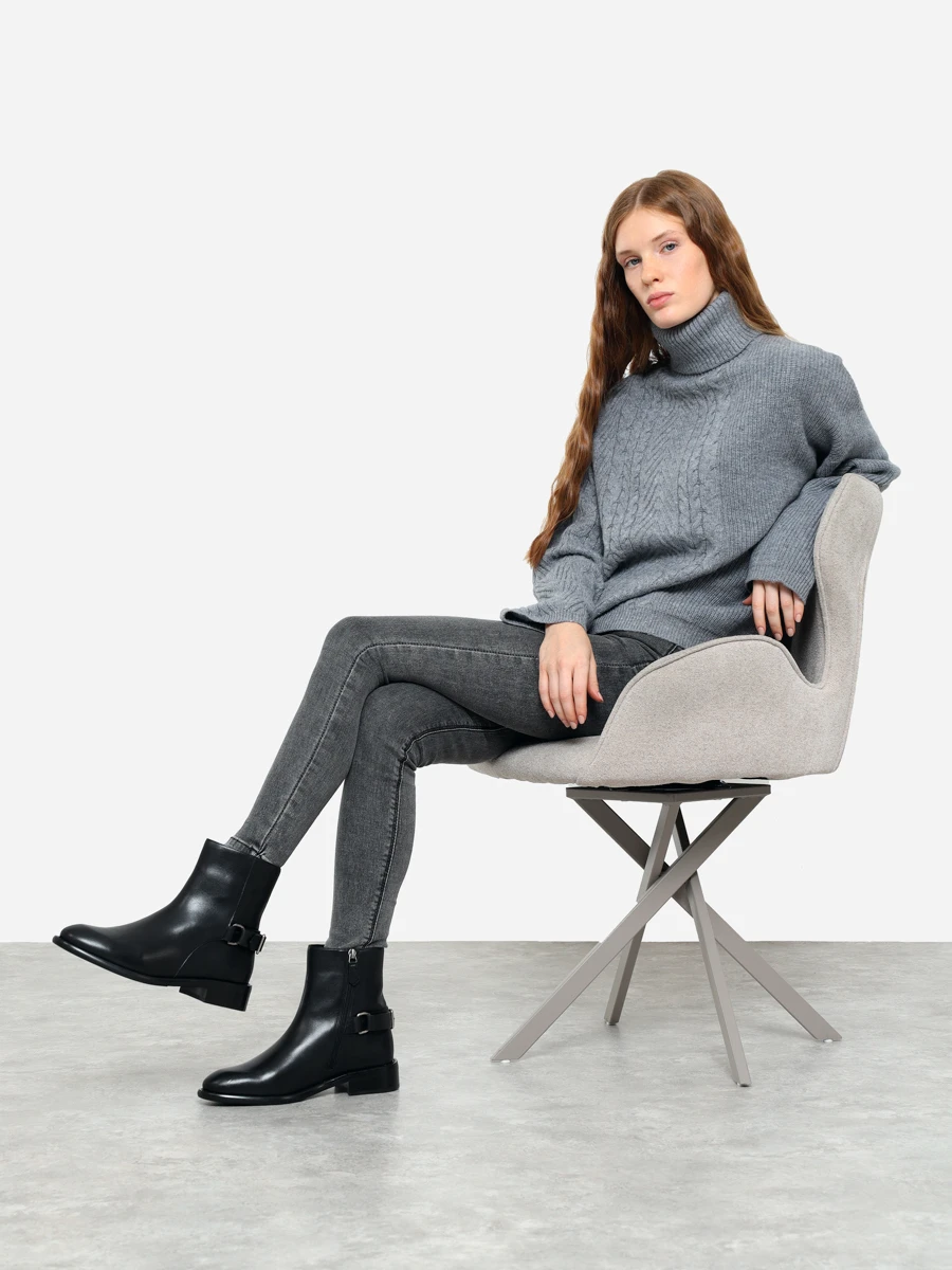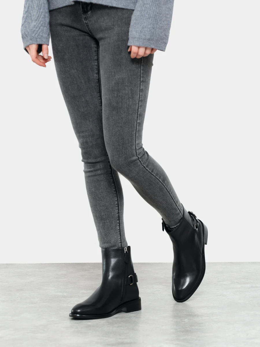 Полусапоги женские демисезонные, цвет черный, натуральная кожа