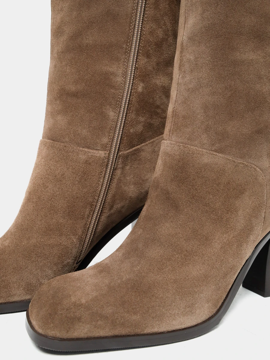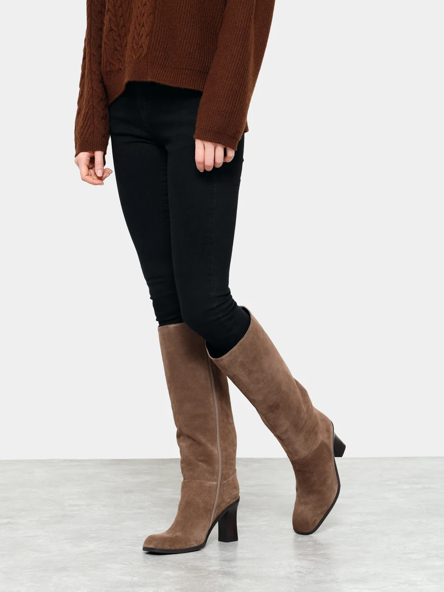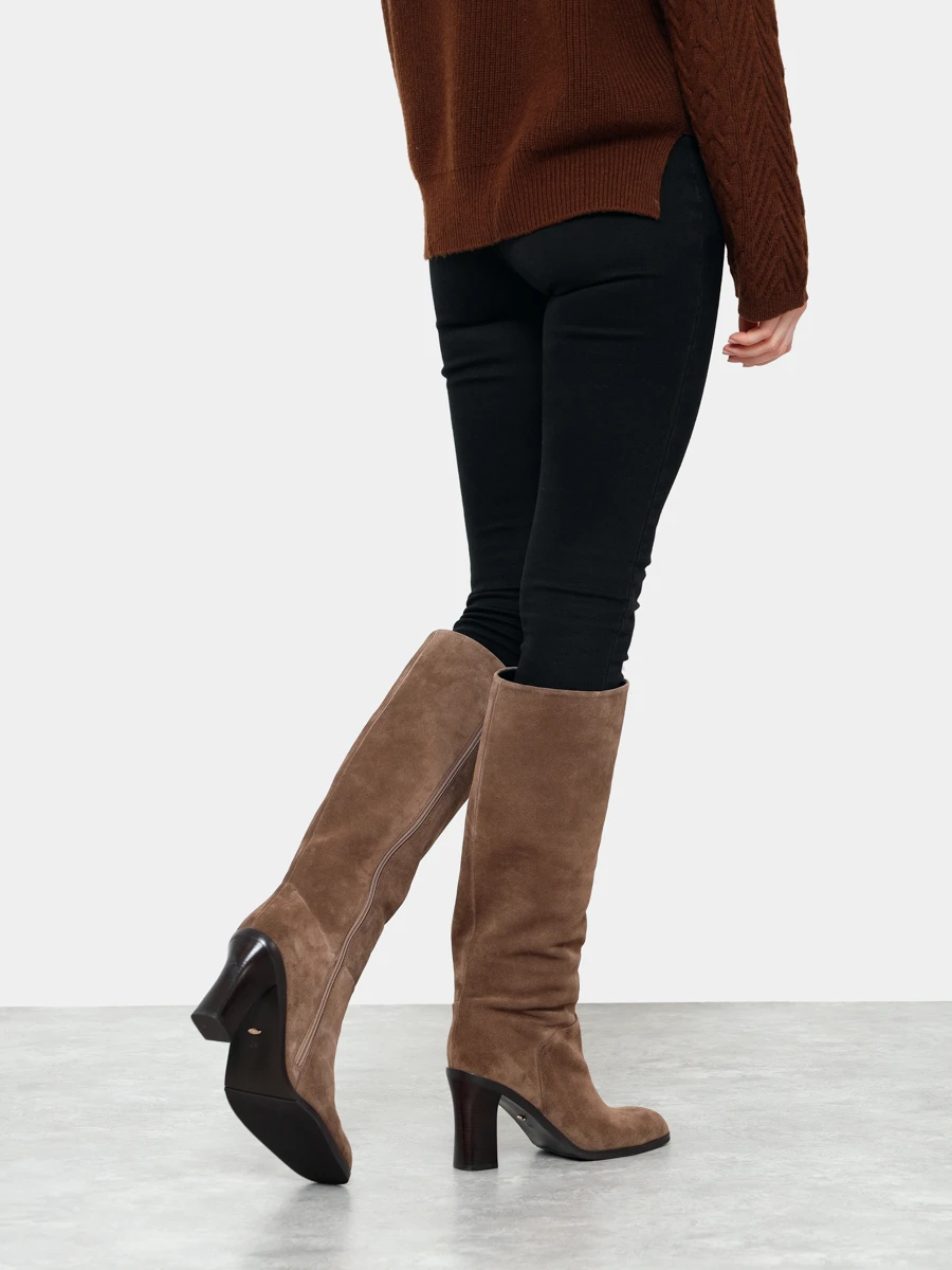 Сапоги женские демисезонные, цвет бежевый, натуральный спилок