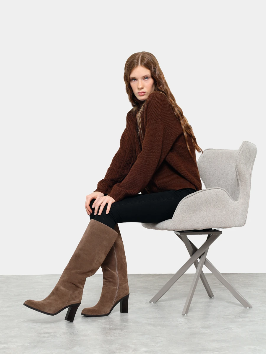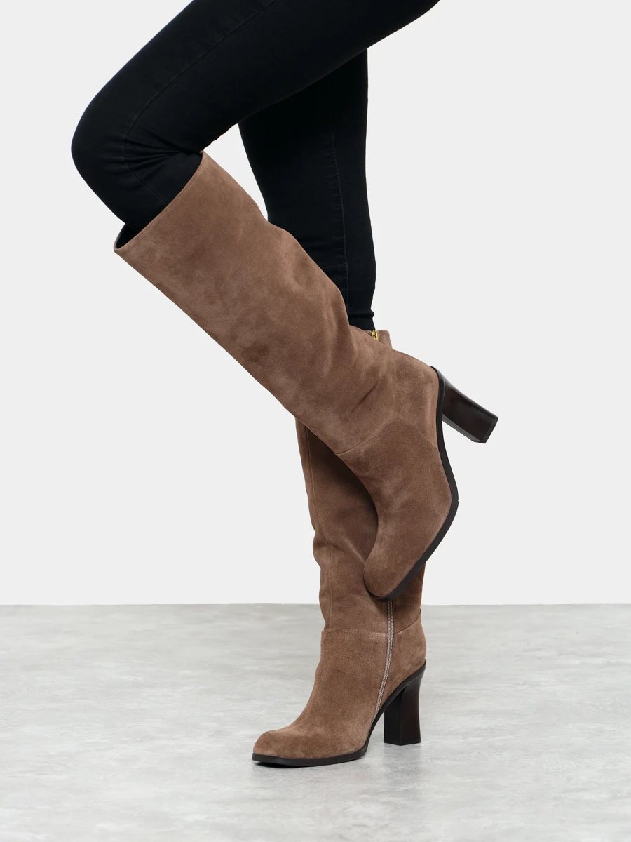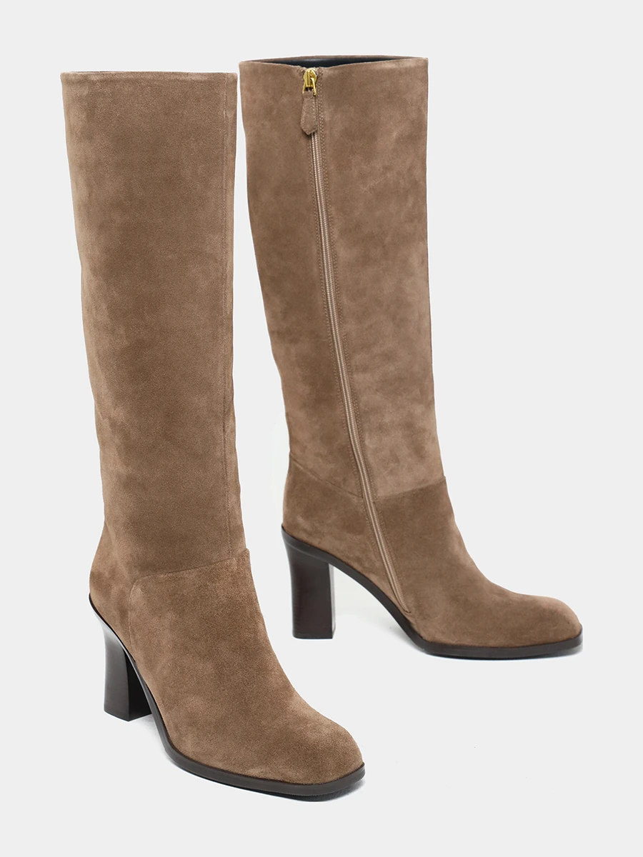 Сапоги женские демисезонные, цвет бежевый, натуральный спилок