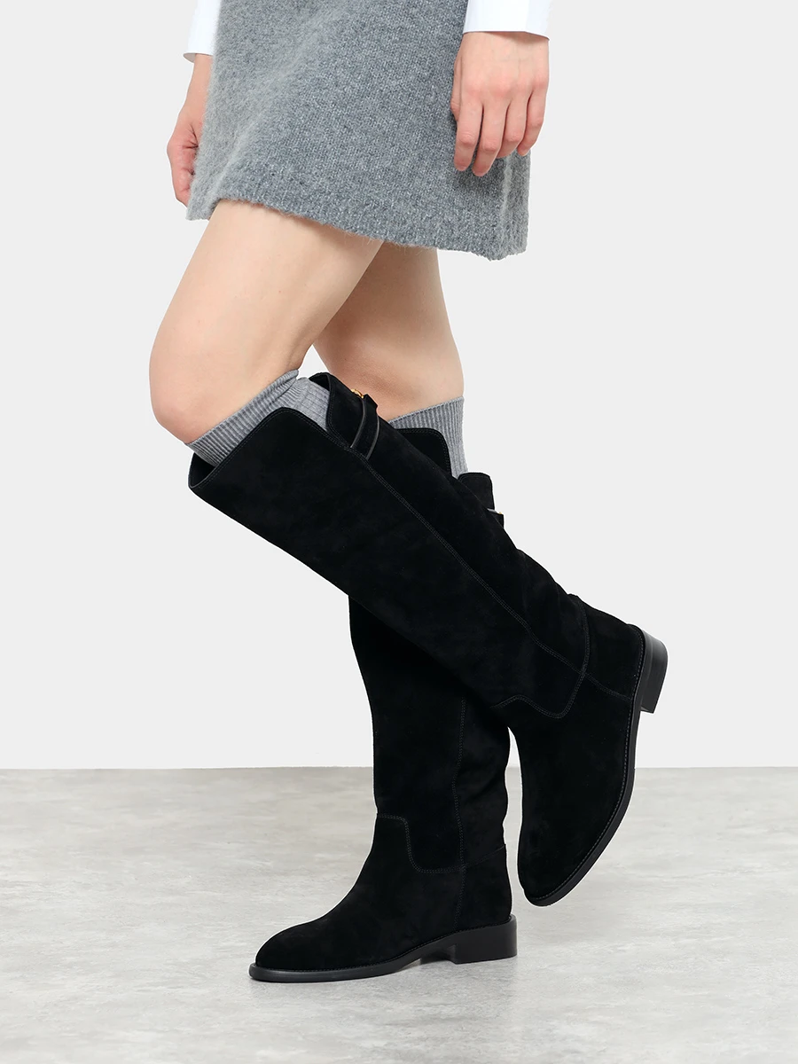 Сапоги женские демисезонные, цвет черный, натуральный спилок