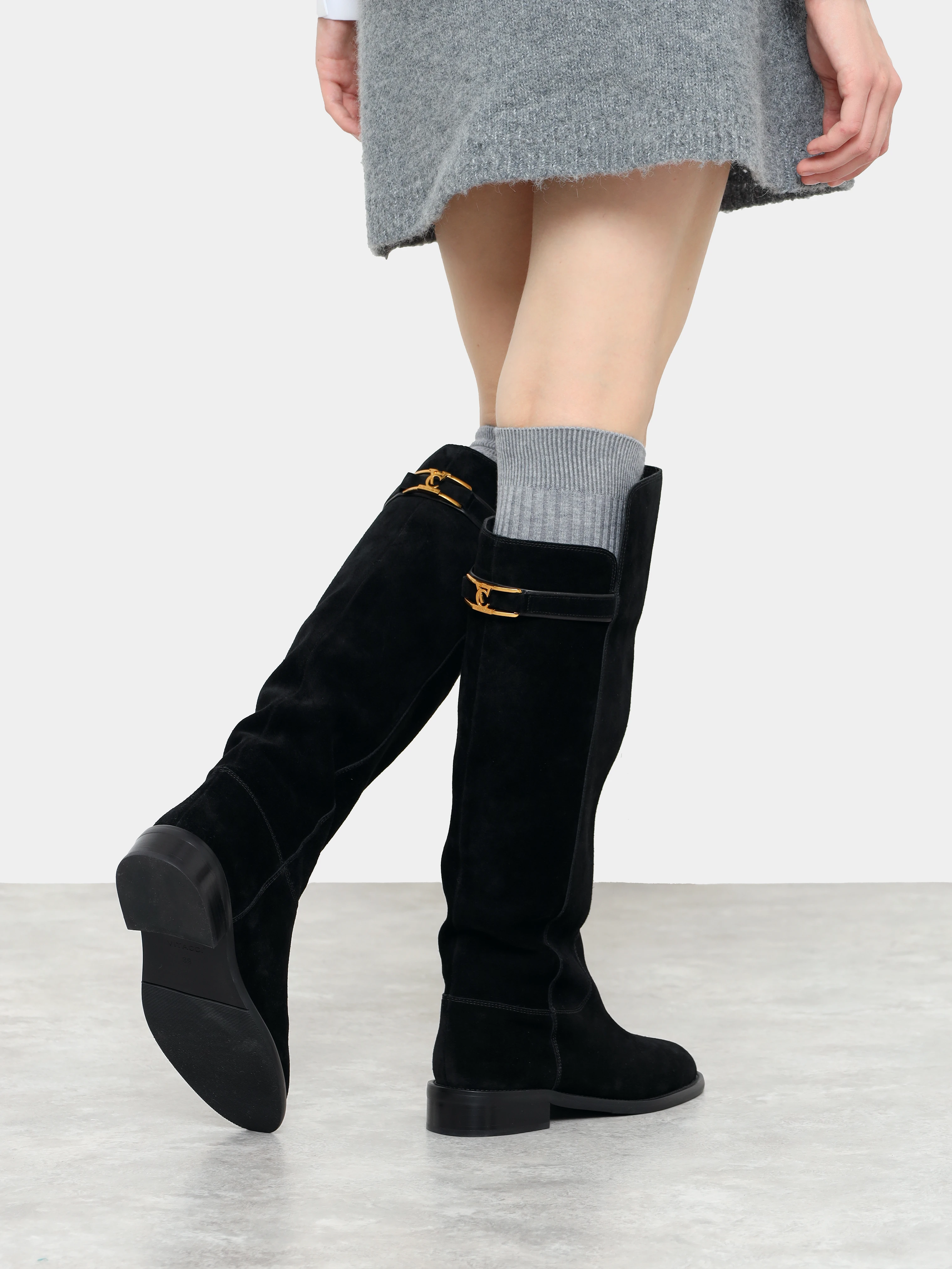 Сапоги женские зимние, цвет черный, натуральный спилок