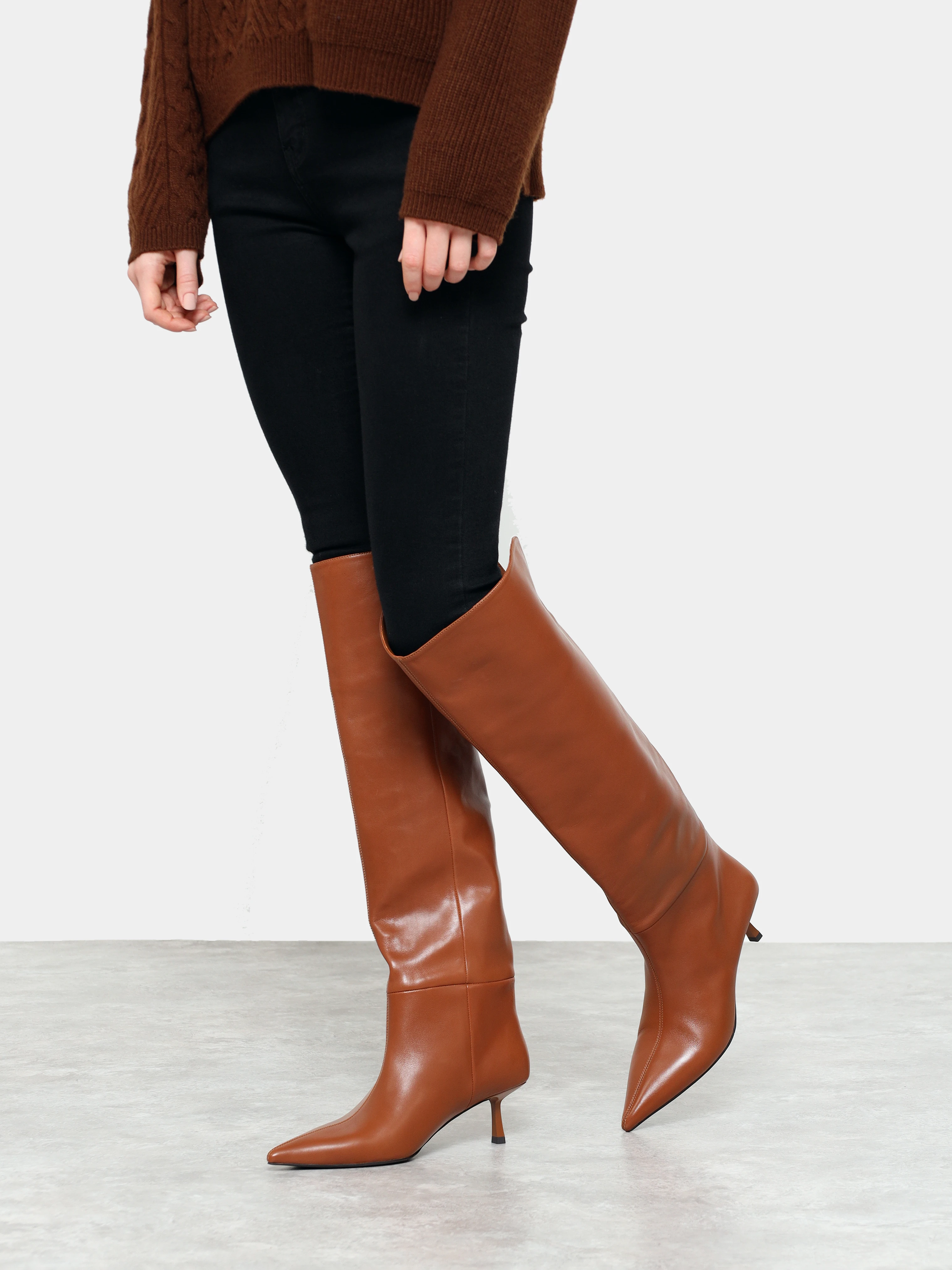 Сапоги женские демисезонные, цвет рыжий, натуральная кожа