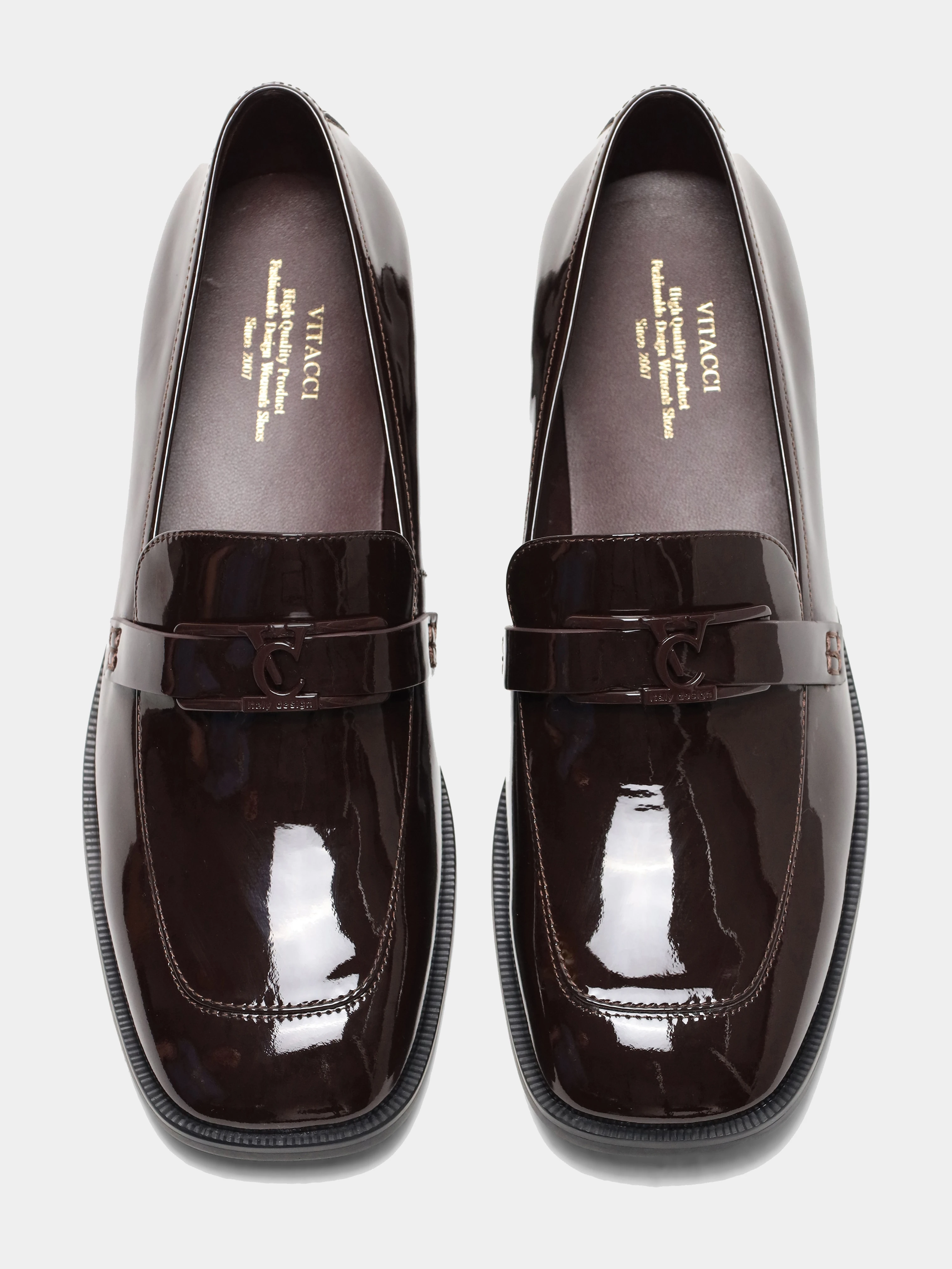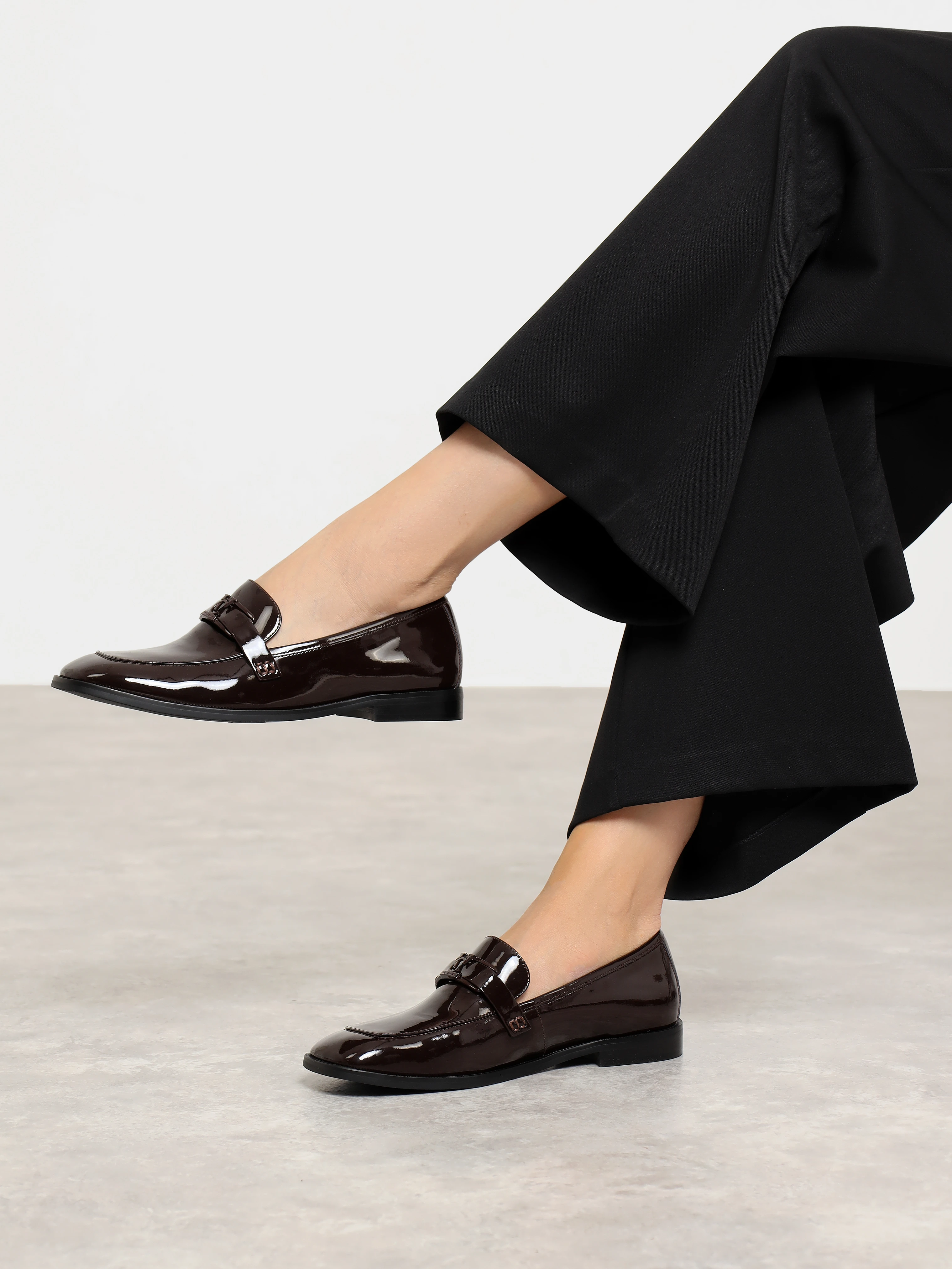 Лоферы женские всесезонные, цвет коричневый, натуральная лаковая кожа
