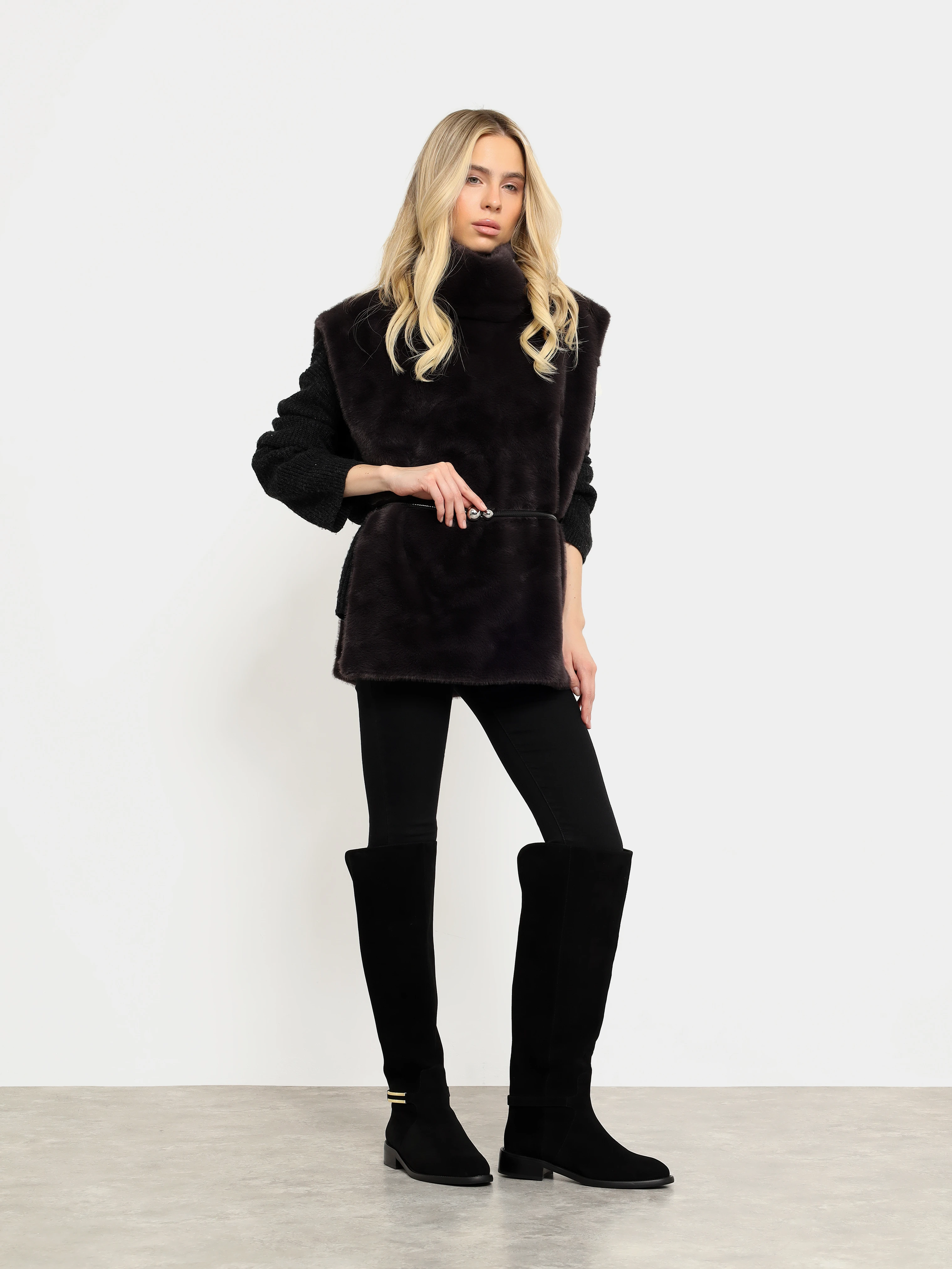 Сапоги женские зимние, цвет черный, натуральный велюр