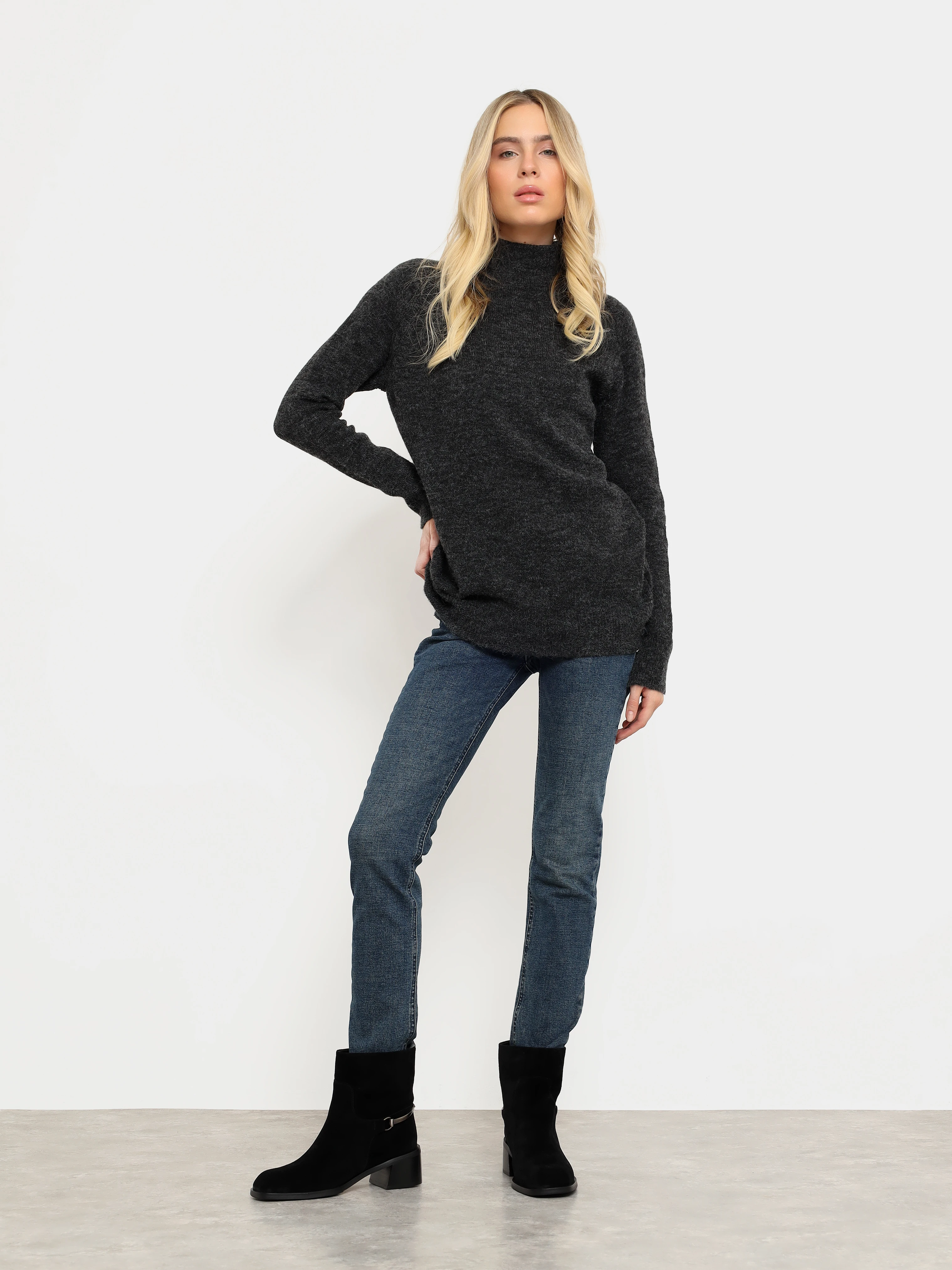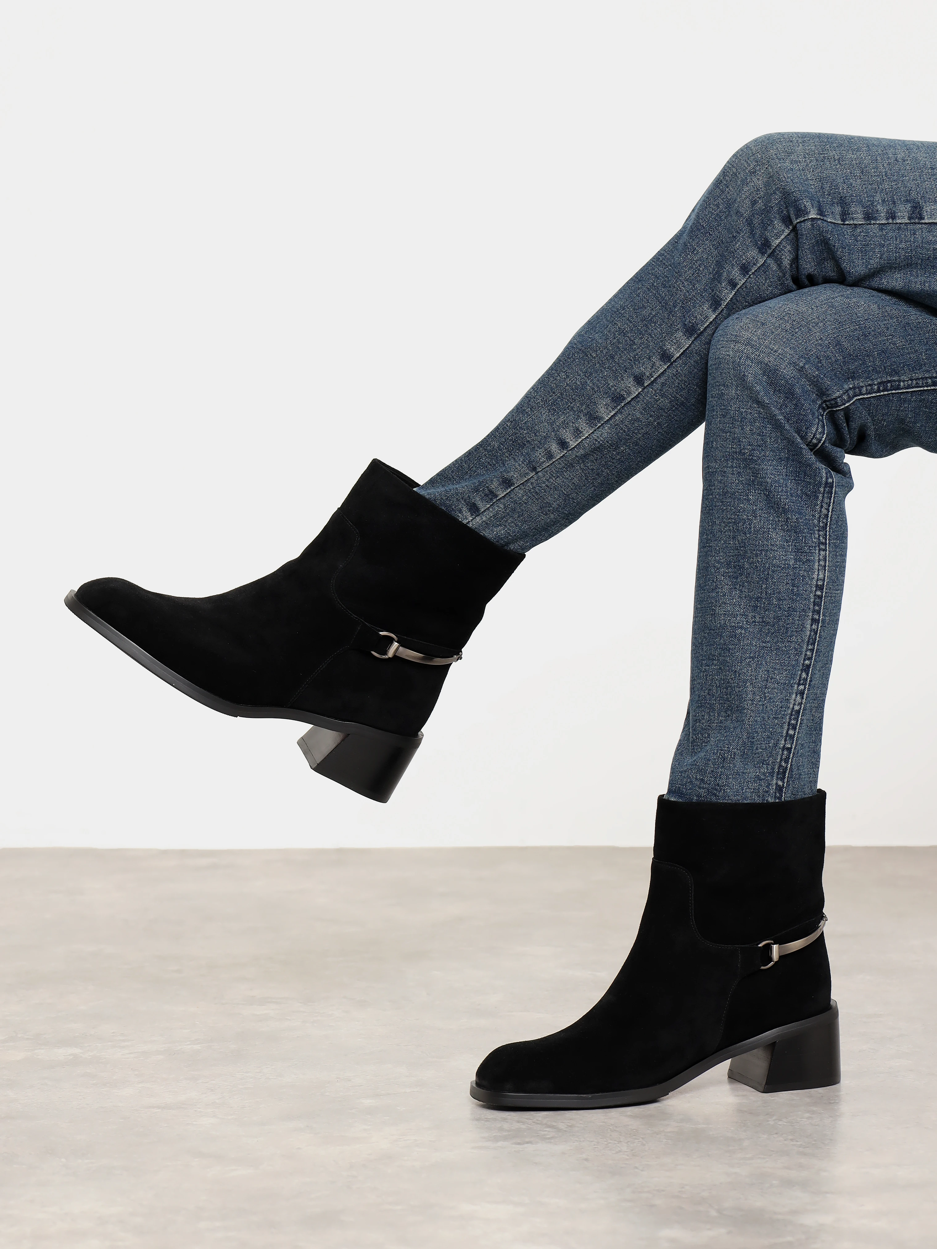 Полусапоги женские зимние, цвет черный, натуральный спилок