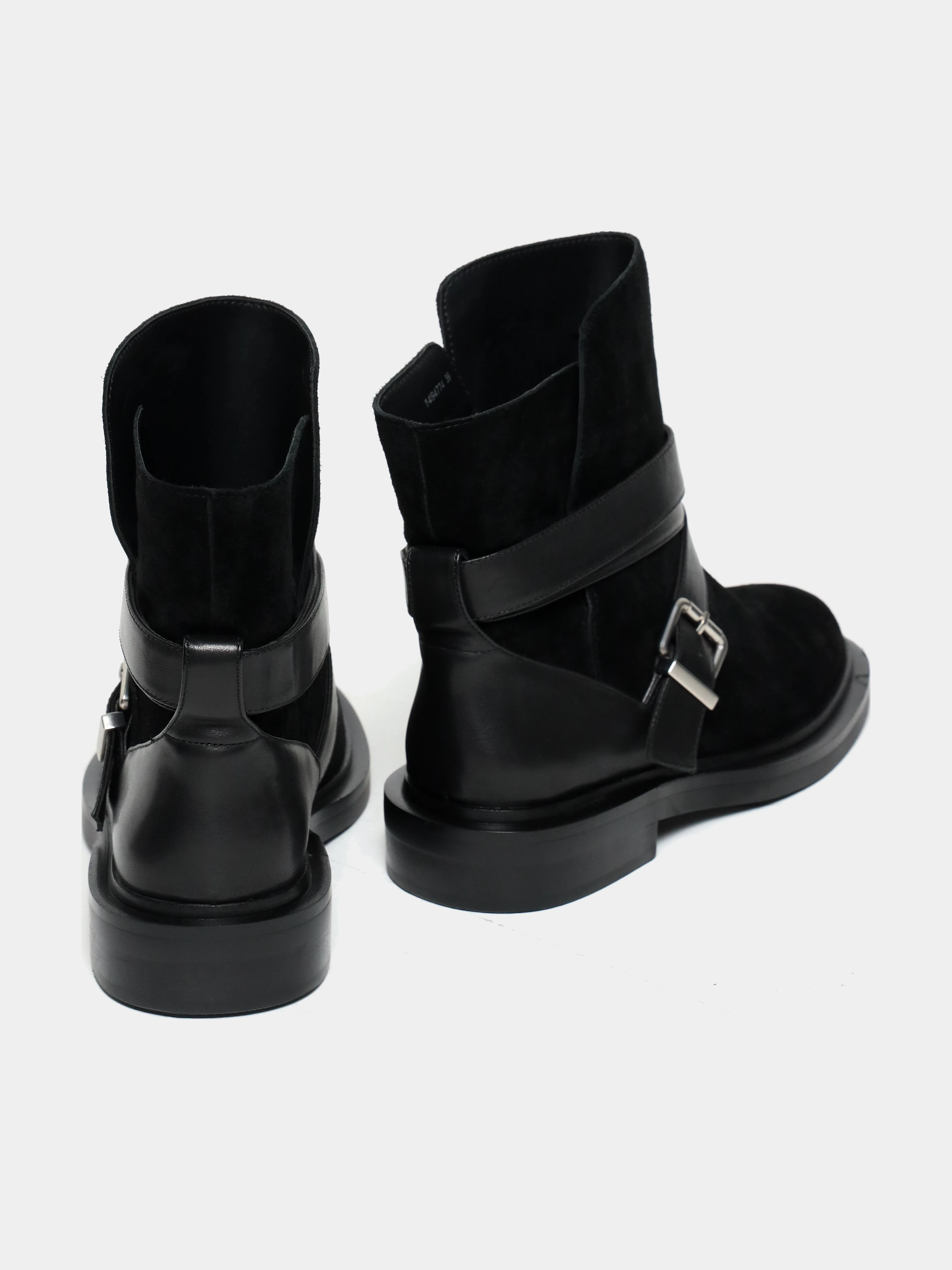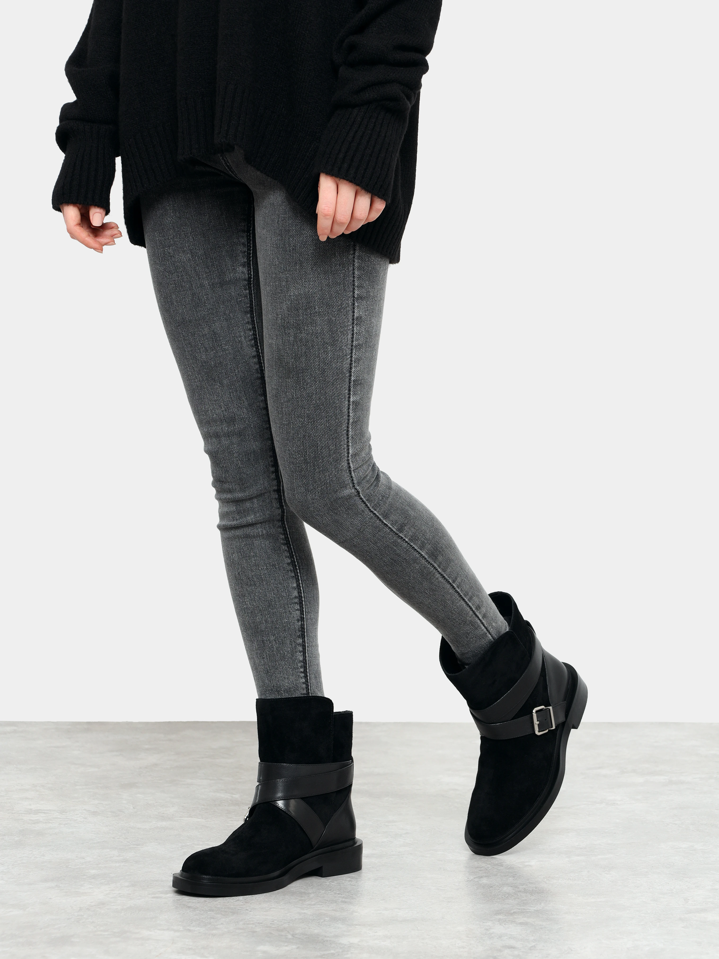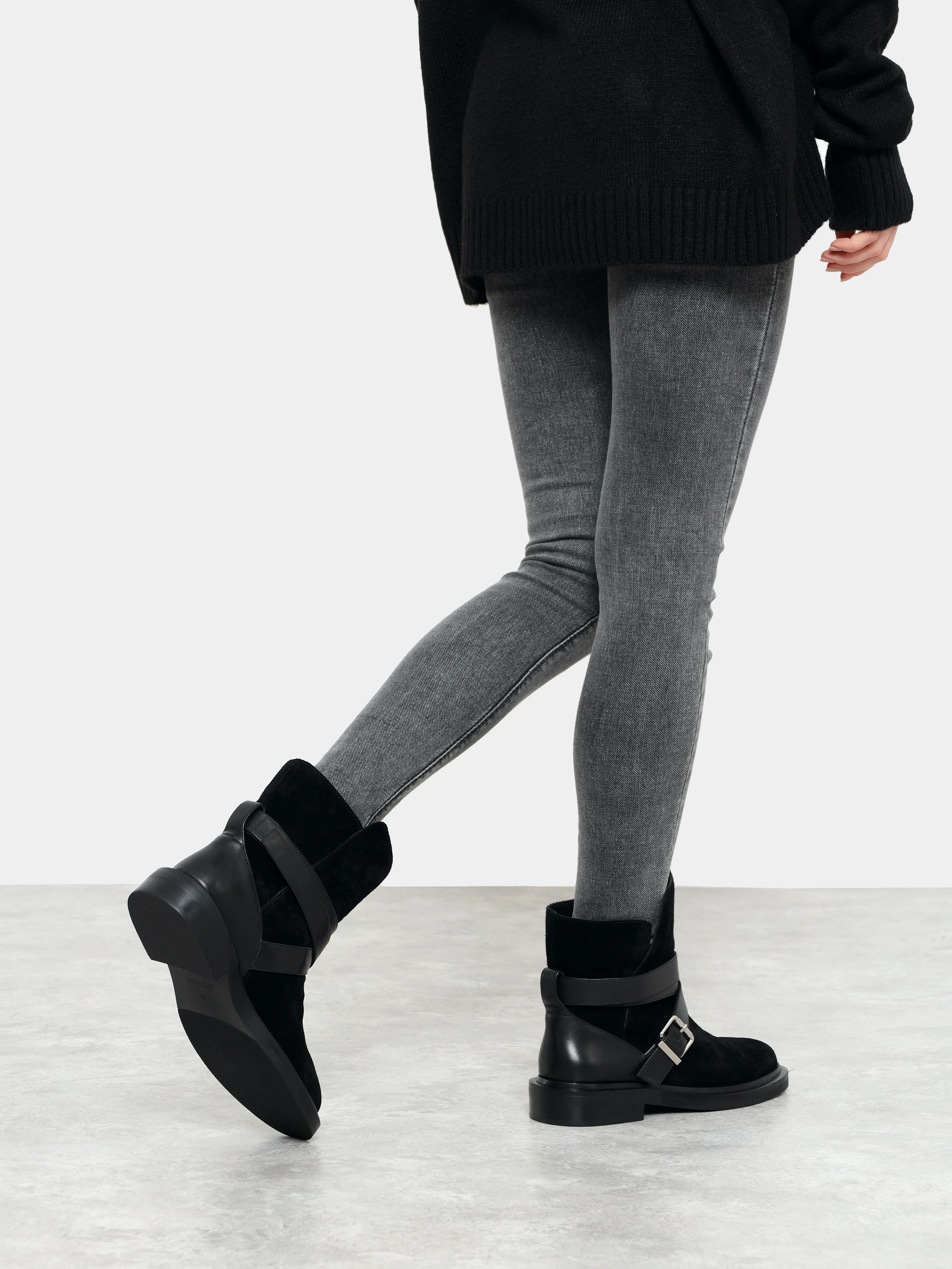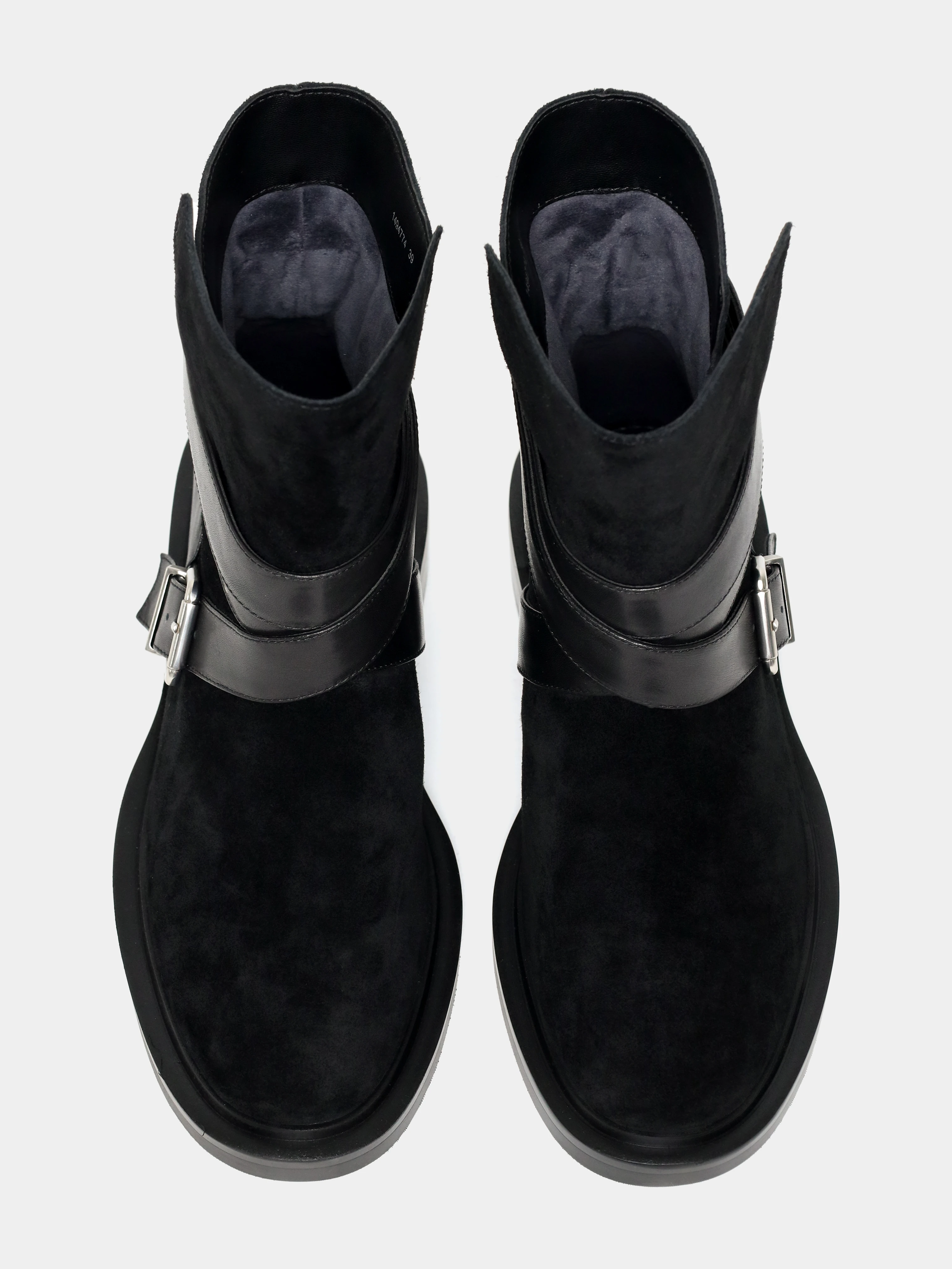 Полусапоги женские демисезонные, цвет черный, натуральный спилок/натуральная кожа
