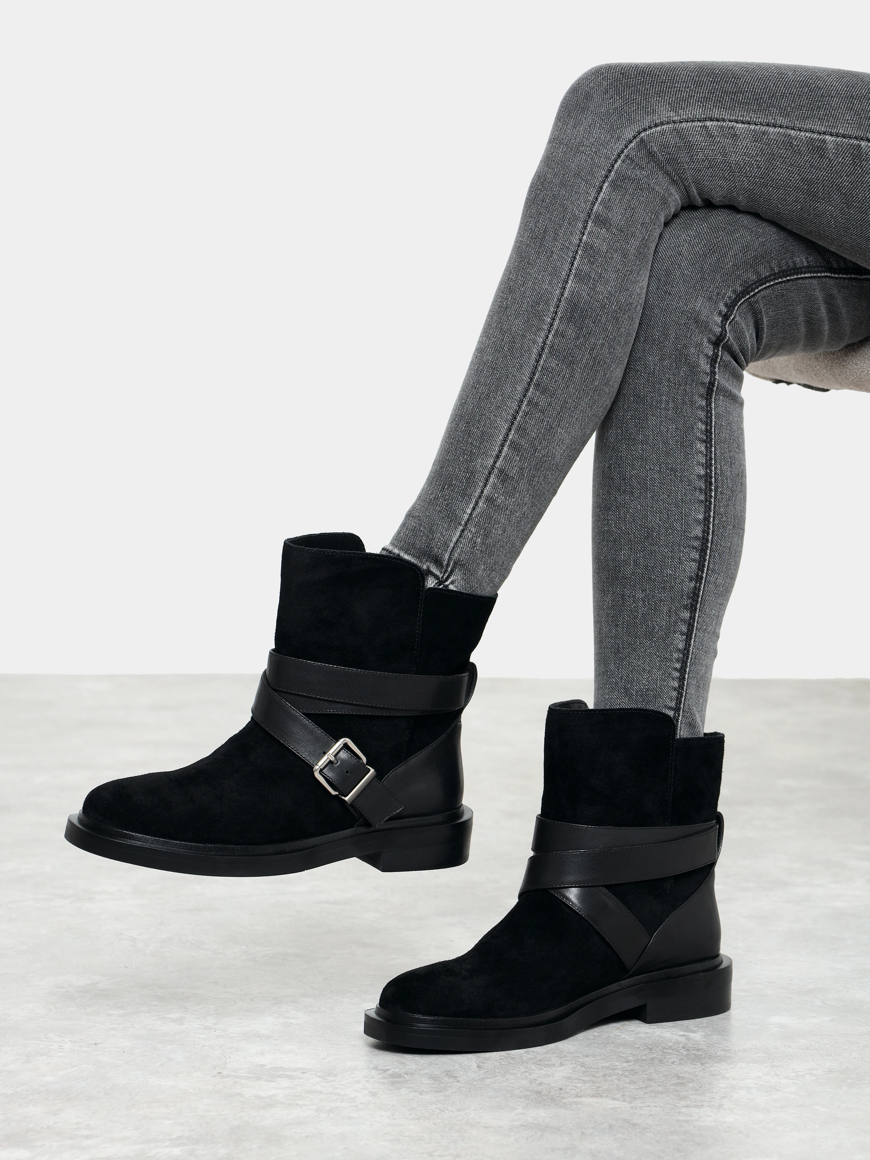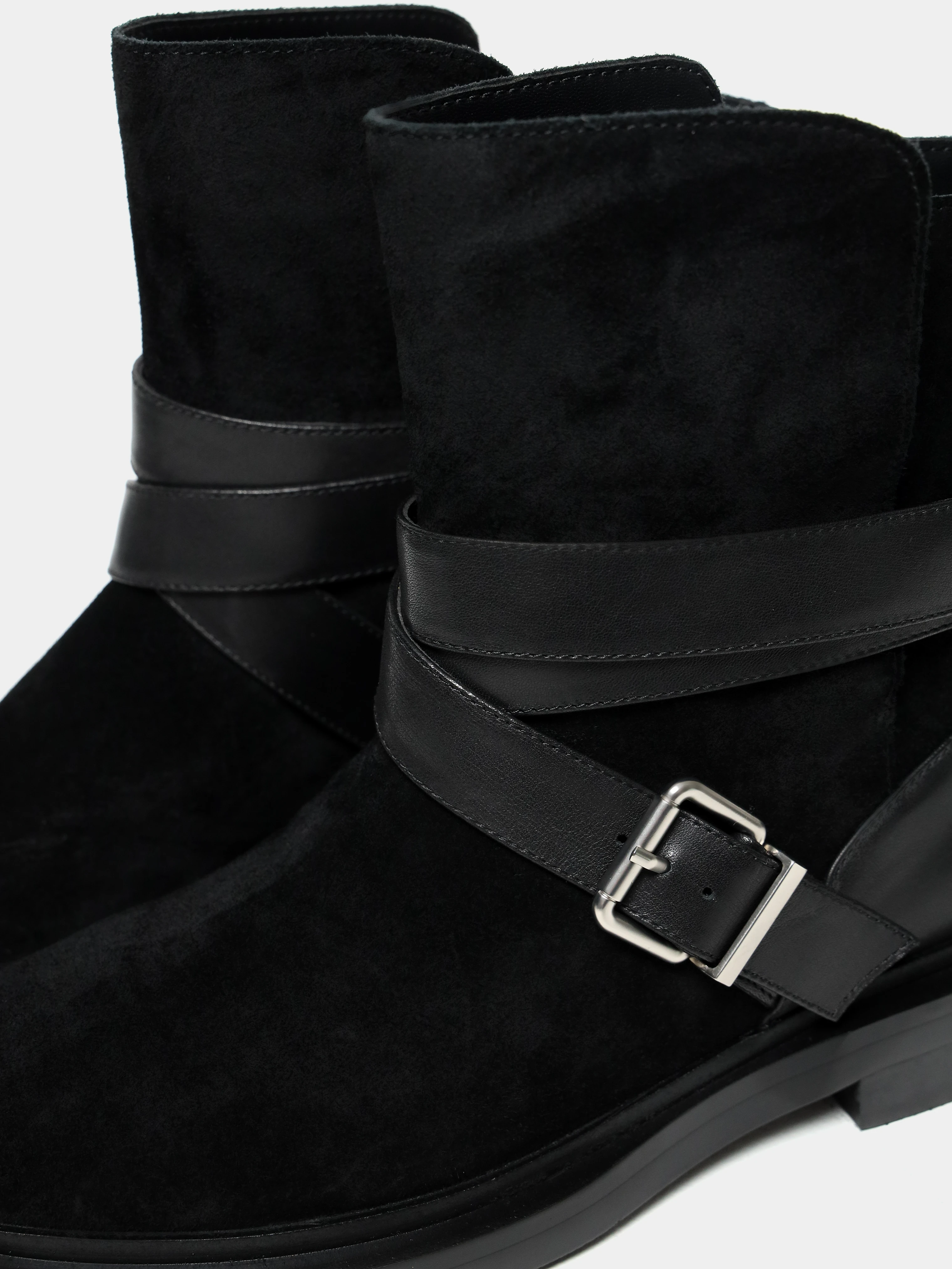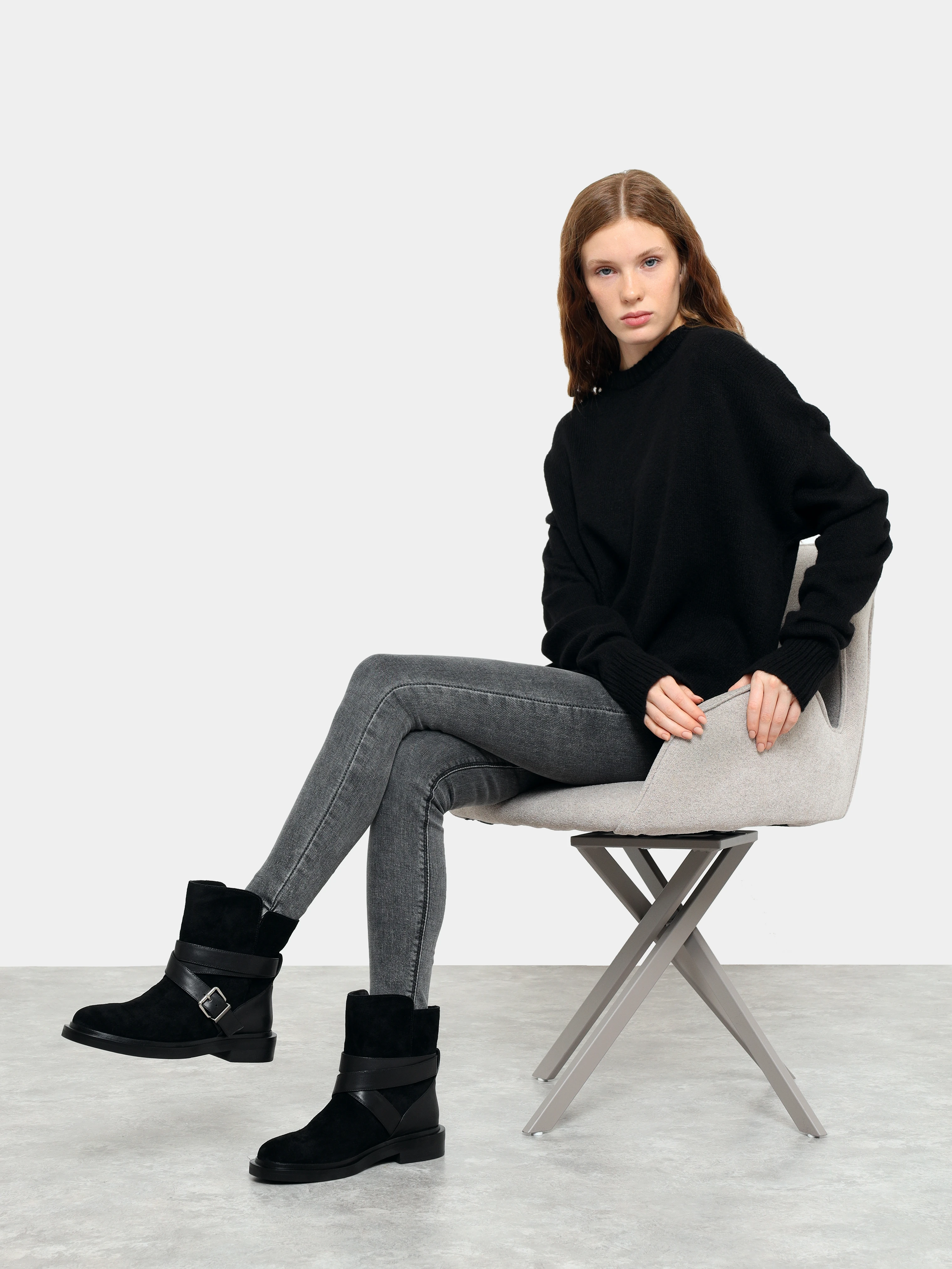 Полусапоги женские демисезонные, цвет черный, натуральный спилок/натуральная кожа