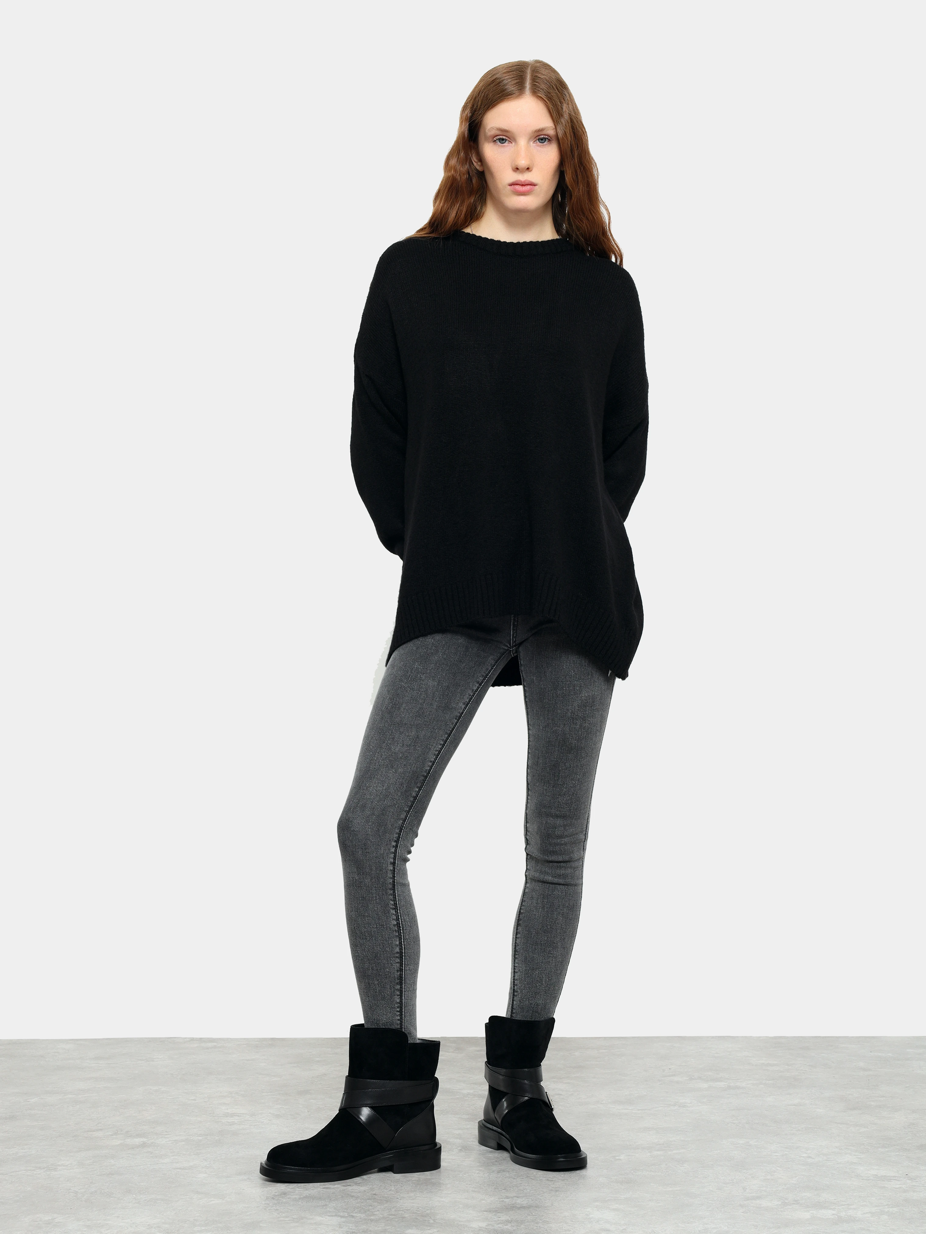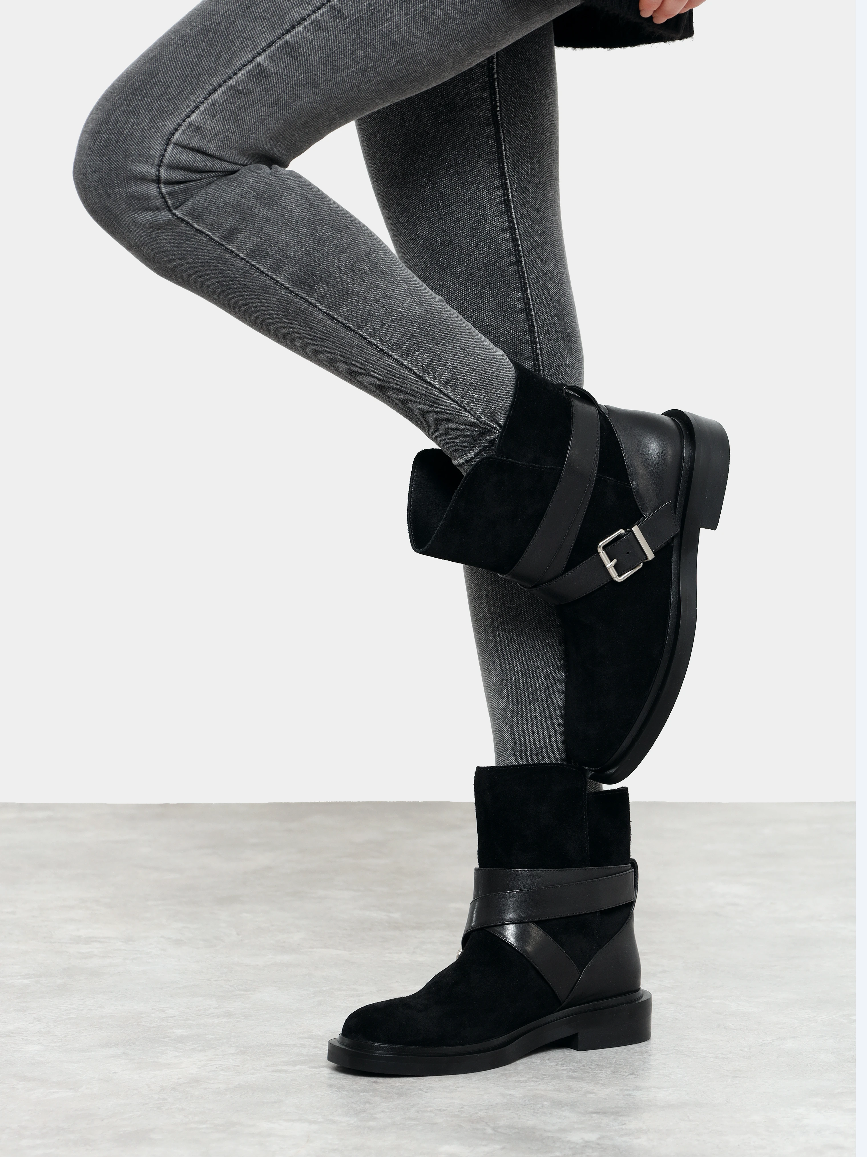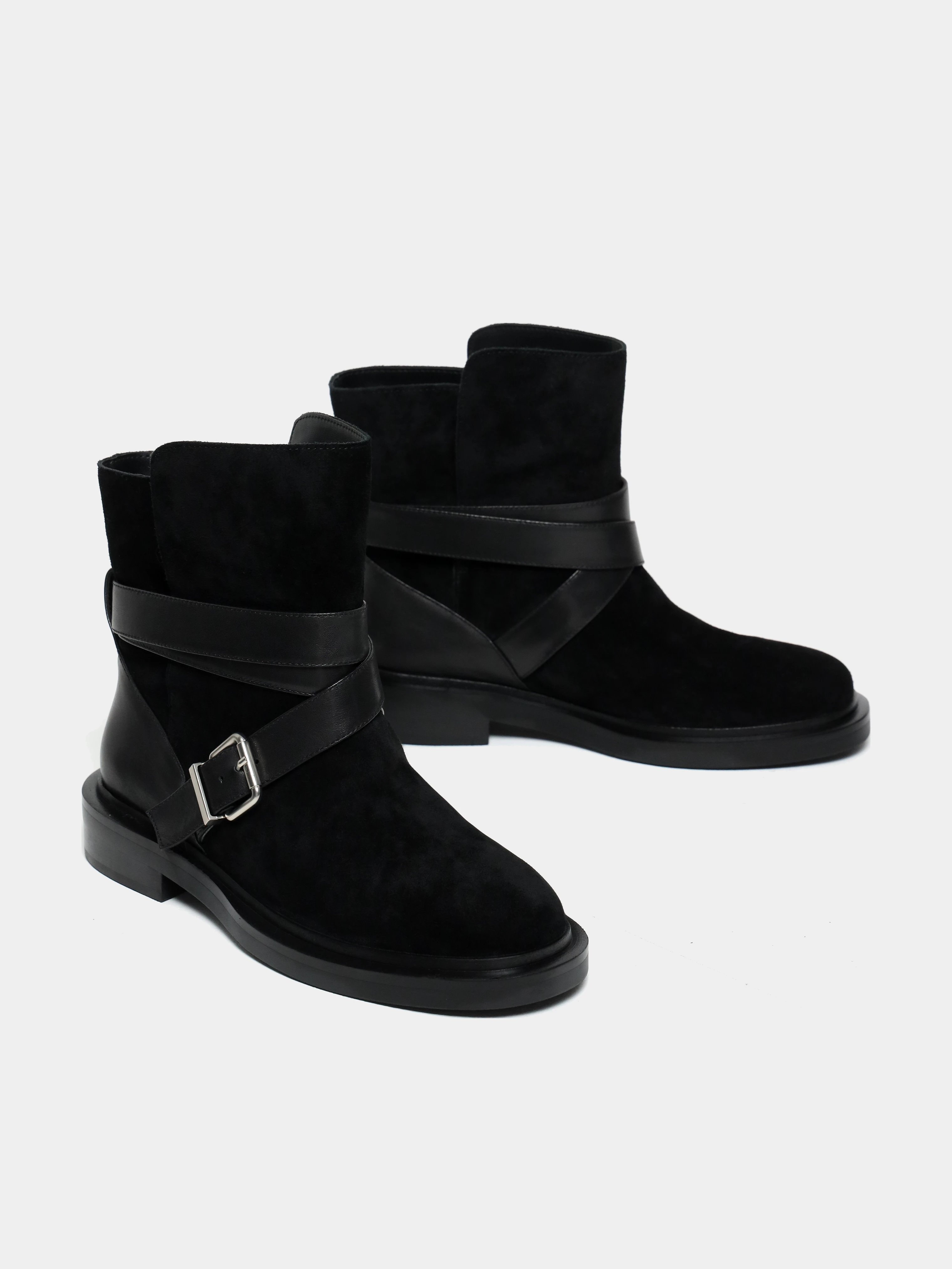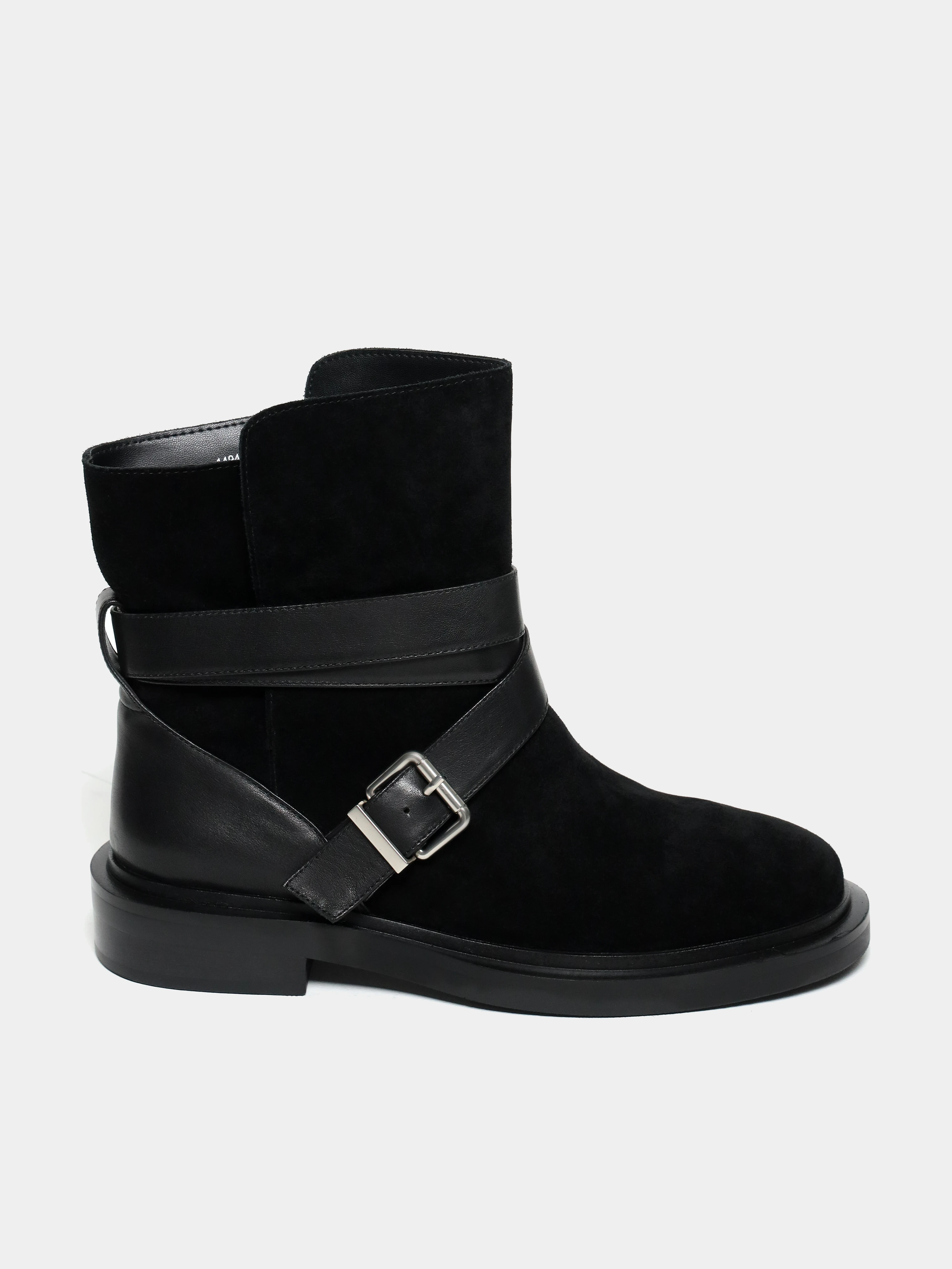 Полусапоги женские демисезонные, цвет черный, натуральный спилок/натуральная кожа
