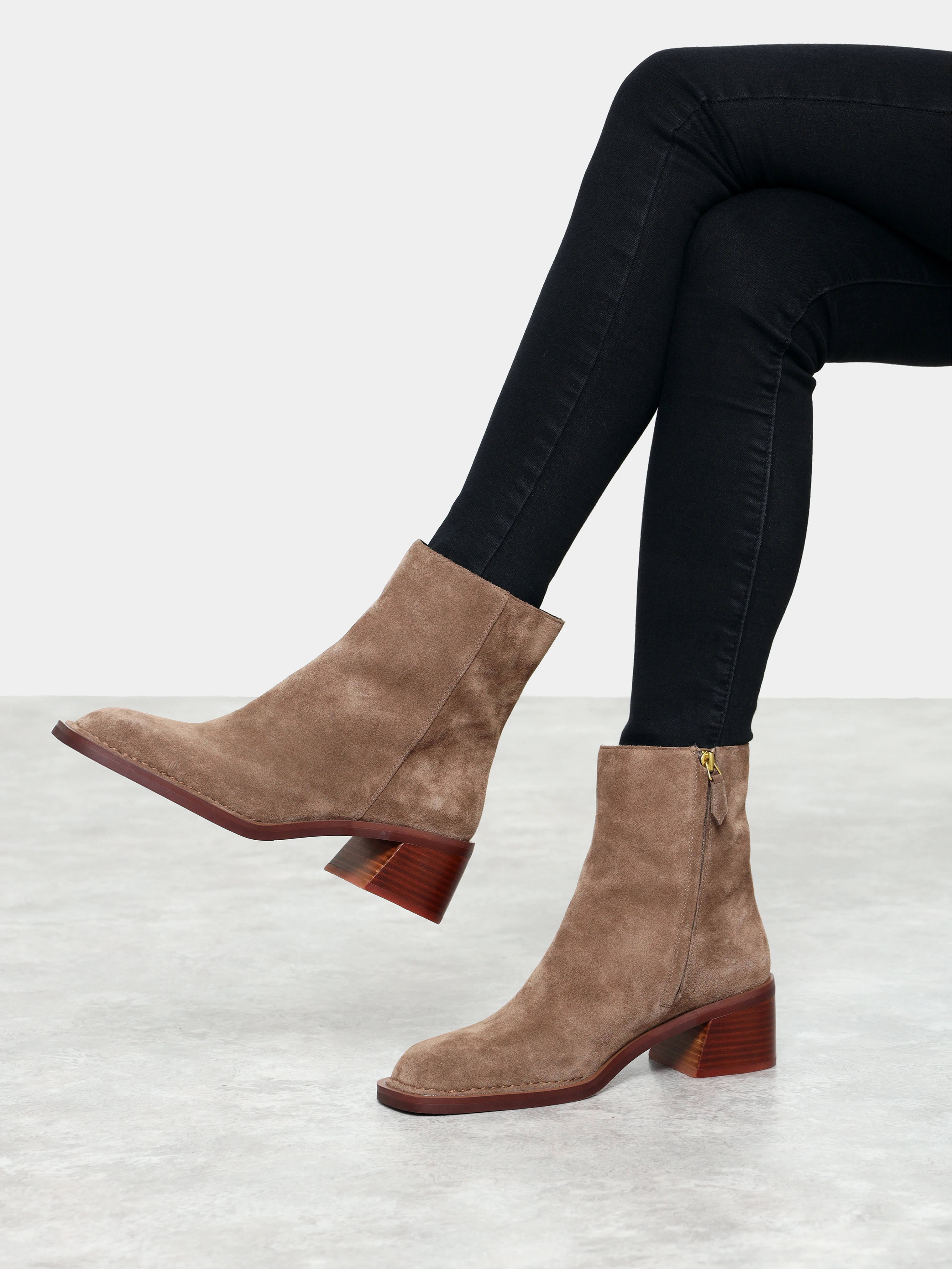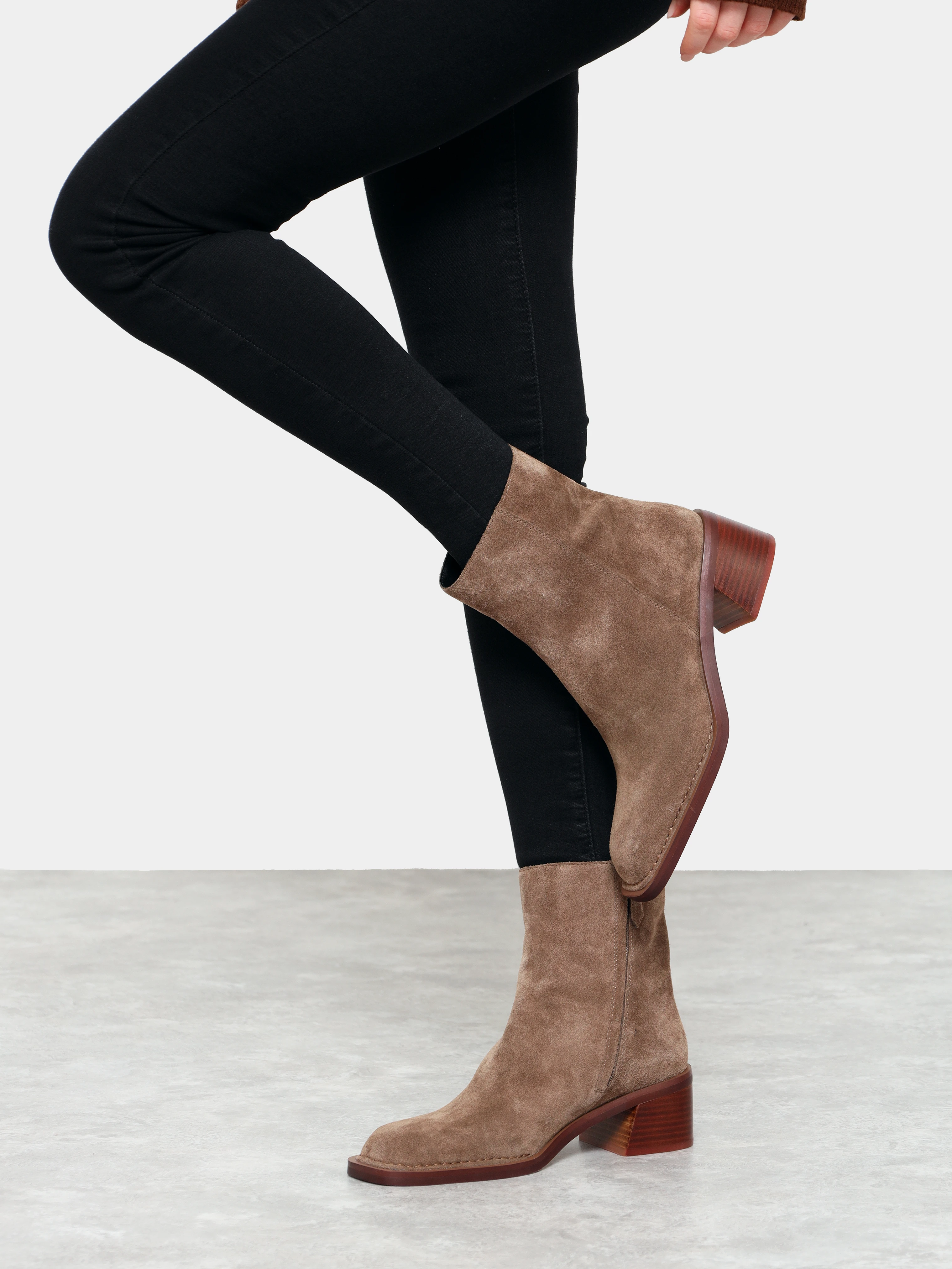 Полусапоги женские демисезонные, цвет бежевый, натуральный спилок